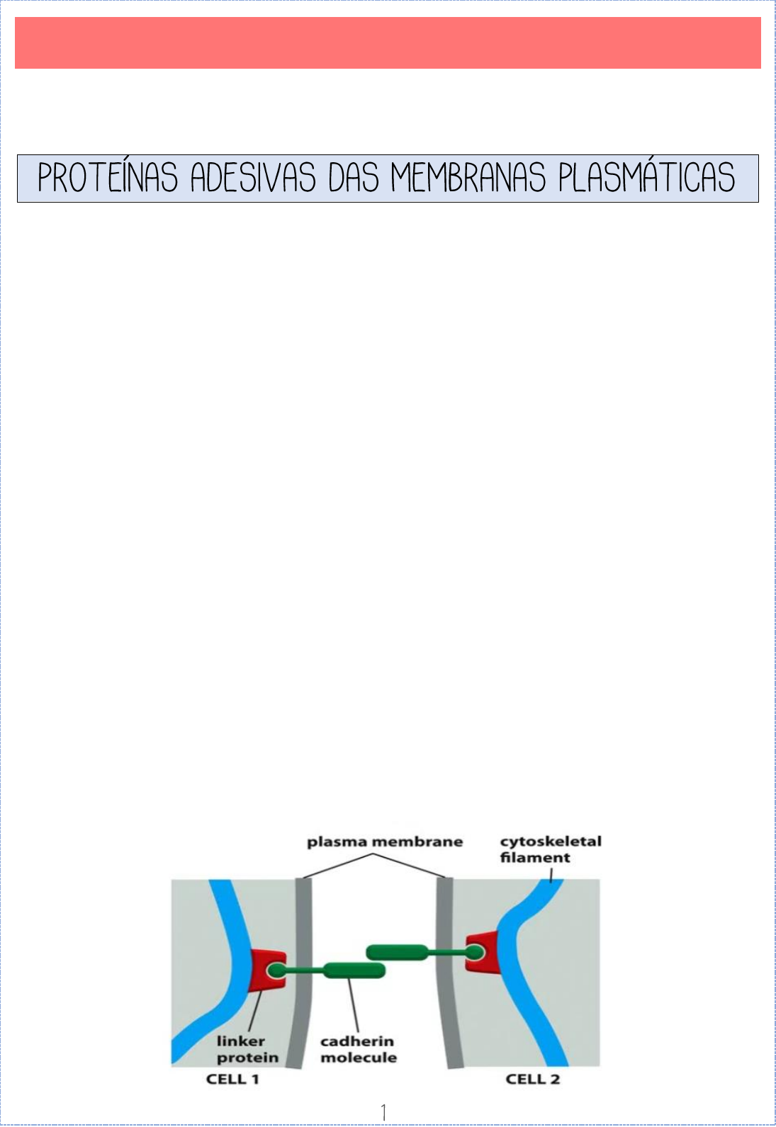 Lara Faioli – TXXVIII UIT CITOLOGIA E HISTOLOGIA LARA FAIOLI – TXXVIII UIT 2021 AULA 1 Uma das funções da membrana plasmática é aderir a célula a outras células ou ao seu substrato, o que é fundamental para a formação de tecidos, locomoção, migração celular, sinalização celular, comunicação celular etc. Proteínas de função adesiva Proteína transmembrana que tem a função de se fixar em alguma outra glicoproteína. Famílias: • Caderinas • Selectinas • Integrinas • IgCAMs Modelo de Ancoragem célula-célula Para a célula se aderir a outra célula ou a matriz extracelular, ela precisa de pelo menos três componentes: de um componente do seu esqueleto que vai estar ligado a face interna da membrana plasmática através de proteínas periféricas de membrana que, por sua vez, vão se ligar a proteínas transmembranas que vão interagir no espaço extracelular com proteínas transmembrana de células vizinhas ou com proteínas da matriz extracelular. Lara Faioli – TXXVIII UIT 1. Citoesqueleto (filamentos intermediários ou microfilamentos de aquitina) 2. Proteína periférica (fazem a articulação entre o componente do citoesqueleto e a proteína transmembrana, pode ser um conjunto) 3. Proteína transmembrana. CADERINAS • São as principais • Dependentes de cálcio (possuem sítios de ligação com cálcio no domínio extracelular) • Domínio intracitoplasmático que se liga ao composto: alfa- actina/formina/vinculina • Ligação célula-célula • Mais de 40 tipos • E- caderina > epitélio • P- caderina > placenta e mioepiteliais • N-caderina > célula nervosa e muscular estriada • Atuam em dímeros homofílicos (do mesmo tipo-E, P,N). • Diminuição de caderina > aumenta chance de metástase • Pode ocorrer interação trans-homofílica/heterofílica quando tipos celulares diferentes se aderem. Proteína transmembrana que tem no seu domínio extracelular 4 sítios de ligação com cálcio (dependente de cálcio). Os três últimos aa do domínio extracelular são a histidina, valina e alanina (HVA), que fazem a caderina interagir com outra caderina para promover a adesão celular. - Só promove aderência de membrana com membrana. - Uma única não consegue promover a adesão entre células vizinhas. - Caderina precisa dimerizar, se associar aos pares, para que haja uma sequência HVAHVA, tornando possível a interação. As proteínas periféricas que se associam ao domínio intracelular das caderinas são as cateninas, se agrupam (beta, gama e alfa), que se associam a outras 3 proteínas periféricas (alfa-actinina, formina e vinculina). Ou seja, para que a caderina se fixe ao componente do citoesqueleto e promova a aderência celular ela precisa de um conjunto de seis proteínas periféricas para fazer essa associação com o citoesqueleto além disso, precisa que tenha outra caderina ao seu lado possuindo em sua extremidade HVA. Ou seja, ela precisa dimerizar além de se associar ao citoesqueleto pelas seis proteínas periféricas. O conjunto das proteínas (alfa-actinina, formina e vinculina) promove a aderência da caderina com o elemento de sustentação mecânica do citoesqueleto. Lara Faioli – TXXVIII UIT Quando há a mutação de células que se tornam células carcinogênicas diminuem a expressão de caderina na sua membrana, ou seja, diminui a produção e quantidade presente na membrana plasmática, logo, se células tumorais tem menos quantidade de caderina, a aderência entre elas é menor, propiciando a metástase. INTEGRINAS • Proteína transmembrana. • Proteínas que formam o dímero são diferentes > heterodímero. • Cada integrina vai possuir uma cadeia alfa e beta de aa. • Cálcio independente • Promove adesão da célula ao substrato (célula epitelial se ligaria a lâmina basal, célula de tecido conjuntivo a matriz do tec conjuntivo pelas integrinas) • Deslocamento celular • Formação do tampão plaquetário Se liga ao componente do citoesqueleto (no seu domínio intracelular), através do complexo das proteínas periféricas (talina, vinculina e a alfa aquitinina). Domínio extracelular se liga a uma molécula de fibronectina (se a célula for de tecido conjuntivo) ou a proteína chamada de laminina (exclusivamente encontrada nas lâminas basais dos epitélios). Tanto a laminina quanto a fibronectina tem uma sequência de aminoácidos chamados RGD (arginina, glicina e asparidina) e é nessa sequência que as integrinas interagem e se fixam. Alvos paras integrinas: - Fibronectina, caso observe célula de tecido conjuntivo ou laminina no caso de uma célula epitelial. - Laminina e fibronectina são as moléculas alvo das integrinas e são importantes na configuração das matrizes extracelulares - Lamininas na lâmina basal e as fibronectinas nas matrizes de tec conjuntivo Laminina é um trimero (três cadeias de aa> conjunto de 3 proteínas) há a cadeia alfa que é linear, a cadeia beta1 e a beta 2 que se enrolam na alfa. Essa morfologia permite que ela ocupe diferentes planos, profundidades, regiões da lâmina basal. Tem vários sítios de ligação: se liga a proteoglicano da matriz do tecido conjuntivo, ao colágeno, a membrana das células (integrinas), ela tem sítios de ligação tanto para a célula epitelial quanto para os componentes da própria lâmina basal e do tecido conjuntivo. É encontrada na lâmina basal Lara Faioli – TXXVIII UIT Fibronectina é um dímero – formada por duas cadeias de aa (fontes de sulfeto ligam as duas cadeias). Possuem o domínio RGD para ligar nas integrinas das células do tecido conjuntivo. Na parte mais alargada entre as duas cadeias de aa existe ainda sítios de ligação de colágeno. Ela faz a intermediação entre as fibras de sustentação do tecido conjuntivo (fibras colágenas) e as células q se apoiam nessas fibras colágenas. O distanciamento entre as duas cadeias na fibronectina é útil por permitir que ela abrace as fibras colágenas