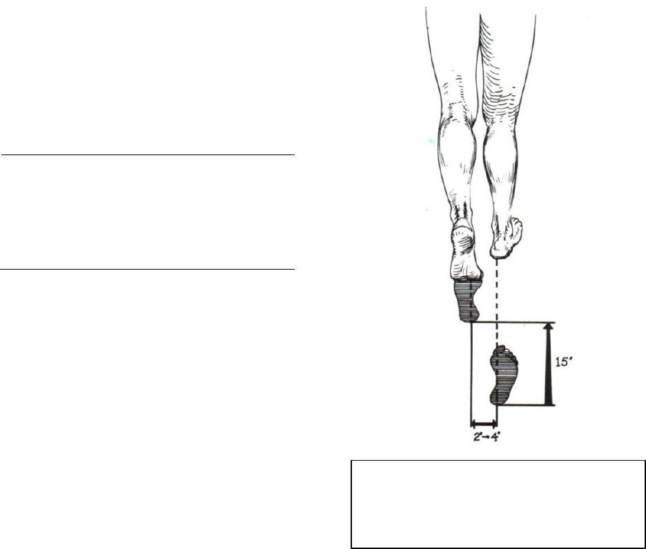 EXAME DA MARCHA O membro inferior desempenha funções vitais como a de deambulação e de sustentação do peso corporal; a sua integridade é essencial para que estas funções cotidianas se processem de maneira normal e eficaz. Como as patologias que acometem o membro inferior, frequentemente se manifestam mais claramente no decurso da marcha, devemos considerar os parâmetros de normalidade e anormalidade da marcha de modo a poder reconhecer e tratar as patologias que porventura existam. O ciclo normal da marcha se faz em duas fases: fase de acomodação de posição, quando o pé entra em contato com o solo; e uma fase de oscilação, quando o movimento é empreendido. A fase de acomodação de posição ocupa cerca de 60% do ciclo normal (sendo que destes 60%, 25% se dão com ambos os pés apoiados ao solo), os 40% restantes compreendem a fase de oscilação. Cada fase, por sua vez, se divide em componentes menores. Fase de Acomodação de Posição Fase de Oscilação 1. Apoio do Calcanhar 1. Aceleração 2. Aplanamento do Pé 2. Oscilação intermediária 3. Acomodação intermediária 3. Desaceleração 4. Impulso A maioria dos problemas se faz aparente durante a fase de acomodação de posição, já que nesta fase de sustentação do peso do corpo solicita grande esforço do membro inferior. O exame da marcha se inicia à entrada do paciente na sala de exame. Observe se há coxeamento ou deformidades óbvias do membro inferior que possam comprometer a marcha e tente averiguar em qual componente de que fase o problema se torna manifesto. Como cada componente possui características próprias, a evidenciação do componente acometido é um excelente início para a determinação da etiologia da doença. Ao examinar a marcha considere também estes parâmetros mensuráveis (de acordo com Inaman). 1. A extensão da base não deve exceder de 5 a 10 centímetros de um calcanhar a outro. Se você observar que o paciente deambula ampliando a base, deverá suspeitar de patologia. Em geral, os pacientes ampliam a base de sustentação quando se sentem tontos ou inseguros, talvez devido a cerebelopatias ou por diminuição da sensibilidade plantar. A amplitude normal da base é de cerca de cinco a dez centímetros. O passo mede aproximadamente quarenta centímetros. EXAME DA MARCHA 2. O centro de gravidade do corpo situa-se cerca de 5 centímetros à frente da segunda vértebra sacra. Na deambulação normal, o centro da gravidade não varia além de 5 centímetros em direção vertical. O controle da oscilação vertical mantém o padrão uniforme da marcha enquanto o corpo avança. O aumento da movimentação vertical pode ser indicativo de patologia. 3. O joelho deverá permanecer fletido durante todos os componentes da fase de acomodação de posição, exceto durante o componente de apoio do calcanhar, com isso impede o excessivo deslocamento vertical do centro de gravidade. Por exemplos, ao ser dado o impulso para o próximo passo, o tornozelo contando com 20º de flexão tende a elevar o centro de gravidade, neste instante o joelho flete cerca de 40º para contrabalançar. Os pacientes cujos joelhos estejam fixos em extensão poderão ser incapazes de contrabalançar o excesso de movimentação do tornozelo, perdendo a uniformidade da marcha. 4. A pelve e o tronco desviam-se lateralmente cerca de 2 centímetros do lado que sustentará o peso do corpo durante aquele passo, de modo a centralizar o peso do quadril. Na presença de hipotonia do músculo glúteo médio, este desvio lateral do tronco estará consideravelmente acentuado. 5. O comprimento de um passo é de aproximadamente 40 centímetros. Em presença de dor, na idade avançada, fadiga ou nas patologias intrínsecas do membro inferior, o comprimento do passo poderá diminuir. 6. A média dos adultos deambula em um ritmo de aproximadamente 90-120 passos por minuto, sendo que o dispêndio de energia é de cerca de 100 calorias por 1,5km. As alterações na uniformidade de coordenação da marcha reduzem a eficácia e aumentam o consumo de energia. Na velhice, fadiga ou em estados dolorosos o número de passos por minuto diminui. 7. Durante a fase de oscilação, a pelve roda 40ºà frente, enquanto que a articulação do quadril da extremidade oposta (que se mantém em posição de acomodação) atua como o fulcro da Durante a marcha, o centro de gravidade oscila verticalmente de cerca cinco centímetros. A pelve e o tronco se inclinam aproximadamente dois centímetros durante a marcha. EXAME DA MARCHA rotação. Normalmente, os pacientes não perfazem a rotação da articulação do quadril quando a mesma se encontra rígida ou dolorosa. A seguir, determinaremos como um componente da marcha, em particular, pode ser comprometido por patologias de cada uma das articulações do membro inferior durante a deambulação. FASE DE ACOMODAÇÃO DE POSIÇÃO A maioria dos problemas que ocorrem na fase de acomodação de posição resultam em dor levando o paciente a andar em marcha antálgica. Ele se apoiará na extremidade comprometida o menor tempo possível, podendo inclusive evitar completamente o componente que lhe causa dor. A fase de acomodação de posição comumente é dificultada por problemas de calçados, que poderão causar dor. A dor pode ser decorrente de encravamento das unas no sapato, forros ásperos ou forra de prumo ou de objetos no interior dos sapatos ou mesmo devido ao tamanho do calçado. Proceda ao exame da fase de acomodação por componentes, observado os problemas característicos de cada articulação. Apoio de Calcanhar PÉ. As dores no pé podem ser resultantes de esporão calcâneo, uma excrescência óssea que se salienta ao tubérculo medial na superfície plantar do osso calcâneo. Em geral, esta patologia causa dor muito aguda quando o paciente apoia o calcanhar firmemente. Com o Na fase de oscilação a pelve roda 40º para frente. A articulação coxofemoral oposta atua como um fulcro para est