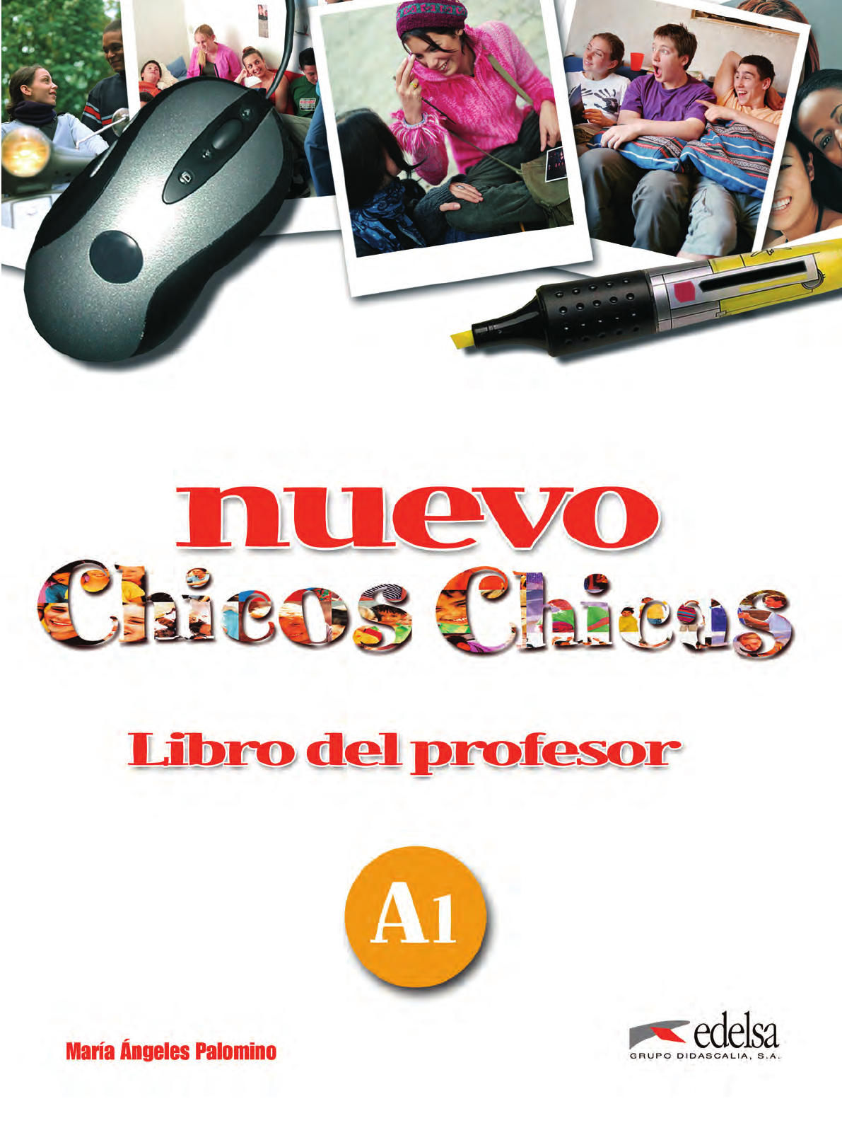 2 • dos4 Nuevo Chicos Chicas es un curso de español para jóvenes que parte de las aportaciones de dos docu- mentos oficiales: - del Marco común de referencia, que ofrece unas pautas metodológicas y describe los niveles de domi- nio de todas las lenguas, - y de los Niveles de referencia para el español, que fijan los contenidos lingüísticos y socioculturales de cada uno de esos niveles. Así, Nuevo Chicos Chicas propone una metodología innovadora y actual porque aplica un enfoque por competencias y porque realiza una enseñanza que va dirigida a la acción. Al mismo tiempo, Nuevo Chicos Chicas se ajusta tanto a los descriptores de niveles oficiales, como a los planes de estudio de la Enseñanza Secundaria. Y, por último, es un novedoso material didáctico que se adapta a las necesidades de aula, ya que tiene en cuenta las sugerencias aportadas por los usuarios de la edición anterior de Chicos Chicas. Estructura: Tras una lección inicial de primer contacto con la lengua y la cultura, Nuevo Chicos Chicas está constituido por seis módulos, cada uno de ellos articulado en las siguientes secciones: - Página de entrada con los contenidos que se van a estudiar y las competencias que se van a desarrollar. - Dos lecciones desarrolladas cada una en dos páginas en las que se presentan los contenidos en una muestra de lengua, se sistematizan en actividades de gramática y funciones, y se practican en activida- des diversas. - Una página de actividades lúdicas, A divertirse, para un refuerzo de los contenidos aprendidos. - Una página de puesta en práctica y uso, Acción. - Una doble página en la que se aborda el conocimiento de la cultura, se desarrolla la pluriculturalidad y se trabajan especialmente la comprensión lectora y la expresión escrita, Magacín cultural. - Una doble página de recapitulación, Prepara tu examen. - Y una página de autoevaluación, Evalúa tus conocimientos. Al final del libro, Nuevo Chicos Chicas ofrece un apéndice de las conjugaciones de los verbos trabajados en los módulos, una recapitulación de los cuadros de gramática y una sistematización de las funciones. Asi- mismo, presenta un Portfolio o autoevaluación siguiendo las recomendaciones del Consejo de Europa. Como complemento para sus clases, dispone del libro de ejercicios con actividades de refuerzo y profundi- zación. Nuevo Chicos Chicas Libro del profesor Con el presente libro queremos ofrecerle a usted, profesor o profesora de español para adolescentes, una herramienta útil para sus clases. Para ello le proporcionamos en un volumen único los siguientes compo- nentes: - El libro del alumno integro (de la página 4 a la 96) con las claves de todas las actividades, para que usted pueda disponer en clase de toda la información necesaria. - Un dossier didáctico (de la página 97 a la 136) con pautas e ideas para llevar al aula el libro del alumno, con especial atención al tratamiento de las comprensiones y al desarrollo de las habilidades de expre- sión y producción; con una selección de ejercicios complementarios que usted podrá fotocopiar para sus alumnos y hacer así más diversas sus clases; y con dos modelos de exámenes parciales con los que poder evaluar el rendimiento de sus alumnos. - El cuaderno de ejercicios integro (para que sea más sencillo su uso en el aula, hemos mantenido la nu- meración de las páginas de forma independiente) con las claves de los ejercicios y actividades. Asimismo, en www.edelsa.es/nuevochicoschicas.htm podrá consultar un dossier metodológico y activida- des complementarias. 3 • tres 4 4 • cuatro4 C o m p et en ci a fo n ét ic a C o m p et en ci a lé x ic a C o m p et en ci a g ra m at ic al C o n o ci m ie n to so ci o cu lt u ra l C o m p et en ci as li n gü ís ti ca s C o m p et en ci a p ra g m át ic a Módulo 1: Presenta a tus amigos. página 11 4Eres capaz de… 8 Saludar y despedirte. 8 Presentarte. 8 Preguntar y decir el nombre y la nacionalidad. 8 Utilizar tú o usted. 4Aprendes… 8 Los interrogativos: cómo, dónde. 8 El presente de indicativo: llamarse, ser. 8 Los pronombres sujeto. 4Conoces… 8 Los países. 8 Las nacionalidades. 4Pronuncias y escribes… 8 La frase interrogativa y exclamativa. 4Descubres… 8 El mapa cultural de España. Módulo 2: Celebra un cumpleaños español. página 23 4Eres capaz de… 8 Hablar de los regalos y los objetos de tu clase. 8 Preguntar y decir la edad. 8 Preguntar y decir el día del cumpleaños. 8 Decir una fecha. 4Aprendes… 8 Los interrogativos: cuántos, qué, cuándo. 8 Los artículos definidos. 8 Los artículos indefinidos. 8 El género de los nombres. 8 El singular y el plural de los nombres. 8 El presente de indicativo del verbo tener. 4Conoces… 8 El material escolar. 8 Los números del 1 al 31. 8 Los días de la semana, los meses y las estaciones. 4Pronuncias y escribes… 8 La sílaba acentuada de las palabras. 4Descubres… 8 El ritmo escolar en España, las vacaciones y las fiestas. Módulo 3: Haz una encuesta. página 35 4Eres capaz de… 8 Presentar las actividades de clase. 8 Preguntar y decir la hora. 8 Hablar de las asignaturas. 8 Explicar tu horario de clases. 4Aprendes… 8 El presente de indicativo: verbos en -ar, -er, -ir. 8 El presente de indicativo: verbo hacer. 8 Los interrogativos: qué, cuanto + verbo, cuántos / cuántas + nombre en plural, cuál es / cuáles son. 8 La frecuencia: los lunes, los martes... 4Conoces… 8 Las actividades de clase. 8 Las asignaturas. 4Pronuncias y escribes… 8 Las palabras con el acento en la penúltima sílaba. 4Descubres… 8 El sistema educativo español. 8 Los horarios escolares. LECCIÓN 0: Primer contacto con España, amigos españoles, el alfabeto, la pronunciación. Apéndice gramatical: cuadros de conjugaciones, gramática, comunicación. página 83 Transcripciones. página 88 Portfolio. página 94 5 • cinco 4 Módulo 4: Describe tu vida cotidiana. página 47 4Eres capaz de… 8 Presentar las actividades cotidia