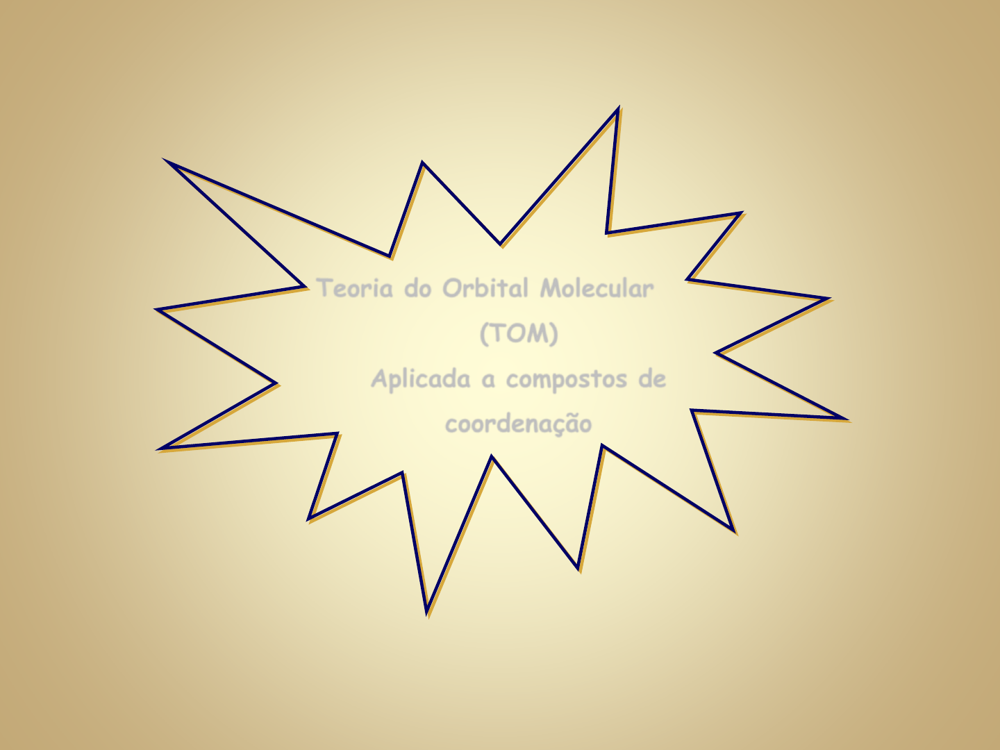 Teoria do Orbital Molecular (TOM) Aplicada a compostos de coordenação Prof.D. Sc. Jorge Diniz Teoria do Campo Ligante (TCL) Prof.D. Sc. Jorge Diniz Até então... Prof.D. Sc. Jorge Diniz ➢A TCC apresenta um modelo conceitual simples para o fenômeno de formação de compostos de coordenação que pode ser empregada ainda para interpretar propriedades Espectroscópico Magnética Termoquímica ➢ Essas interpretações são feitas através dos valores encontrados para ΔO. Prof.D. Sc. Jorge Diniz Problemas e Limitações: ✓Trata os ligantes como pontos de carga ou dipolos, não levando em consideração o enlace de seus orbitais com os do centro metálico. ✓Não fornece uma explicação sobre qual a razão da ordem em que os ligantes estão dispostos na série espectroquímica. I- < Br- < S2- < SCN- < Cl- < NO3 -, F- < HO_ < ox2-< OH2 < NCS- < CH3CN < NH 3 < em < pby < phen < NO2 - < PR3 < CN - < CO Prof.D. Sc. Jorge Diniz Teoria do Campo Ligante - TCL ✓A TCL consiste então na aplicação da teoria dos orbitais moleculares (já comum para moléculas mais simples e não metálicas como o O2, por exemplo) à compostos de coordenação. ✓ Alguns dados experimentais não podiam ser interpretados com base apenas na TCC. Então, a partir de 1950, a TCC sofreu modificações: Prof.D. Sc. Jorge Diniz Teoria do Campo Ligante - TCL ✓Foi proposta por J. S. Griffith e L. E. Orgel em 1957 pela combinação das ideias da Teoria do Campo Cristalino e da Teoria dos Orbitais Moleculares aplicados em complexos. Considerou-se também a possibilidade de interações dos orbitais dos ligantes e dos orbitais d do átomo central. Prof.D. Sc. Jorge Diniz As repulsões elétron-elétron caem devido a expansão da nuvem eletrônica, pois orbitais atômicos (menores) dão lugar a formação de orbitais moleculares (maiores). Explicação: O Efeito Nefelauxético = Expansão da Nuvem Eletrônica Principal evidência: O Efeito Nefelauxético ➢ Indica, indiretamente, que existem elétrons sendo compartilhados entre os orbitais metálicos e dos ligantes, pois experimentalmente verifica-se que a repulsão elétron- elétron em um complexo é menor quando comparada ao respectivo íon livre. Prof.D. Sc. Jorge Diniz Evidência experimental: O espectro de RPE do complexo K2[IrCl6] RPE Ressonância Paramagnética Eletrônica O desdobramento hiperfino observado no espectro ao lado resulta do acoplamento dos momentos magnéticos de spin dos ligantes com os momentos magnéticos dos spins eletrônicos do metal. Para que tal acoplamento ocorra, o espaço ocupado por estes elétrons deve ser comum tanto para o ligante quanto para o complexo, por isso um orbital molecular. Expansão da Nuvem Eletrônica Prof.D. Sc. Jorge Diniz Teoria do Campo Ligante (TCL) ❑ descreve as ligações nos complexos em termos de orbitais moleculares construídos pelos orbitais do átomo central ❑ estabelece-se os orbitais moleculares: complexo octaédrico de um metal d (ferro, cobalto ou cobre): considera-se os orbitais 4s, 4p e 3d do íon metálico central. ❑ considera-se os orbitais de cada ligante: Cl- = orbital 3p; NH3 = orbital sp3 do par de e-s (isolado) CLOA-OM Prof.D. Sc. Jorge Diniz Orbitais dos grupos ligantes [Co(NH3)6] 3+ = ligação -s Orbitais de valência dos metais = 3d, 4s, 4p Orbitais de valência dos ligantes = 6 x híbrido sp3 H N H H orbitais híbridos sp3 seis orbitais híbridos sp3 formam um conjunto de Orbitais de Grupo Ligante (OGL) Aproximação dos CLOA 1s 2s 2p orbitais híbridos sp3 .. NH3 Prof.D. Sc. Jorge Diniz Molécula linear: MH2 combinação: orbitais s e pz do metal com os orbitais s do hidrogênio não combinação: orbitais px e py do metal com orbitais s do hidrogênio y x z M 1s 1s HB HA 2s (A) y x z HB HA2pz M (B) HB HA2px y x z M (C) OM para complexos de metais de transição Prof.D. Sc. Jorge Diniz os orbitais dx2- y2 e dz2 do metal se combinam com os orbitais s do hidrogênio = interação (A) é mais efetiva que em (B) os orbitais dxy, dyz e dzx não se combinam com os orbitais s do hidrogênio x z y dx2-y2 (A) z y x (B) dz2 dxy z y x MH4 : quadrado planar OM para complexos de metais de transição Octaédrico: ML6 s A1g z y x x x x y y y z T1u z y x dx2-y2 z y dz2 Eg os orbitais s, px, py e pz do metal se combinam com os orbitais s dos ligantes os orbitais dx2-y2 e dz2 se combinam com os orbitais s dos ligantes os orbitais dxy, dyz e dxz permanecem não ligantes OM para complexos de metais de transição Prof.D. Sc. Jorge Diniz Prof.D. Sc. Jorge Diniz Tipos de simetrias dos orbitais do metal em compostos octaédricos Orbital do metal Indicação de simetria Degenerescência s a1g 1 px, py, pz t1u 3 dxy, dxz, dyz t2g 3 dx 2 -y 2, dz 2 eg 2 Falando da Teoria do Orbital Molecular Teoria dos orbitais moleculares — as ligações resultam da interações entre os orbitais atômicas para formar orbitais moleculares. Segundo a TOM, a combinação de 2 orbitais atômico gera 2 novos orbitais moleculares da mesma forma que a combinação de n orbitais atômico gera n novos orbitais moleculares. Na TLV, a combinação de dois orbitais atômico produzia apenas um novo orbital molecular. Na TOM o número de orbitais moleculares formados será igual ao número de orbitais atômicos combinados Prof.D. Sc. Jorge Diniz Prof.D. Sc. Jorge Diniz REVISANDO Teoria das orbitais moleculares — as ligações covalentes resultam da CLOA de valência dos átomos envolvidos na ligação para formar orbitais moleculares. A – B + + 1SA 1SB Subtração + - (b) s*- + + 1SA 1SB+ Adição + s Prof.D. Sc. Jorge Diniz Interferência construtiva (a) e interferência destrutiva (b) de duas ondas com o mesmo comprimento de onda e amplitude. Prof.D. Sc. Jorge Diniz Orbital molecular (OM): função de onda que é solução da equação de Schrodinger para um sistema de um elétron sujeito a um campo criado por dois núcleos OM estendem-se a toda a molécula Nº orbitais atômicos = Nº de orbitais moleculares CL de 2 OA 