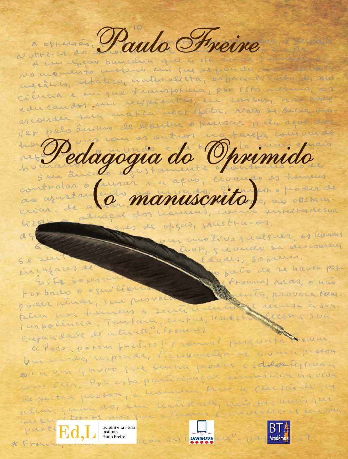 PEDAGOGIA DO OPRIMIDO (O Manuscrito) Jason Ferreira MaFra José eustáquio roMão Moacir Gadotti (Projeto editorial, Organização, Revisão e Textos introdutórios) 2018 PAULO FREIRE Dados Internacionais de Catalogação na Publicacão (CIP) (Câmara Brasileirado Livro, SP, Brasil) Freire, Paulo, 1921 – 1997 Pedagogia do oprimido : (o manuscrito) / Paulo Freire ; Jason Ferreira Mafra ; José Eustáquio Romão ; Moacir Gadotti (projeto editorial, organização, revisão e textos introdutórios). – 1. ed – São Paulo : Editora e Livraria Instituto Paulo Freire: Universidade Nove de Julho (UNINOVE) : Big Time Editora/BT Acadêmica. Bibliografia 1. Educação 2. FREIRE, Paulo, 1921-1997. 3. Pedagogia do oprimido 3. Pedagogia I. MAFRA, Jadson Ferreira. II. ROMÃO, José Eustáquio. III. GADOTTI, Moacir. IV. Título. 13-11703 CDD-370.1 Índices para catálogos sistemático: 1. Freire, Paulo: Pedagogia do oprimido Educação 370.1 ISBN 978-85-61910-95-2 Projeto Editorial Jason Ferreira Mafra, José Eustáquio Romão e Moacir Gadotti Projeto da Capa Departamento de Marketing da UNINOVE Juliana Cezario Coordenadora Editorial Janaina Abreu Pesquisa da Edições de Pedagogia do oprimido: Natatcha Priscilla Romão Diagramação Big Time Serviços Editoriais www.bigtimeeditora.com.br / editorial@bigtimeeditora.com.br http://www.mileuma.com.br 1 1 Mantivemos a nomenclatura dada por Paulo Freire aos capítulos. Mantivemos a numeração manuscrita dada pelo autor, que a reiniciou em cada capítulo. Para facilitar a localização das diversas partes desta edição pelo leitor, renumeramos as páginas do manuscrito na parte inferior de cada página à a direita. suMário1 Apresentação – Jason Ferreira Mafra, José Eustáquio Romão e Moacir Gadotti ....................... 4 Prefácio à segunda edição dos manuscritos de Pedagogia do oprimido – José Eustáquio Romão e Moacir Gadotti .............................................................. 6 Anexo – Nota sobre as edições da Pedagogia do oprimido ................................................... 25 Entrevista com Jacques Chonchol em 20 de agosto de 2013 – José Eustáquio Romão ....................... 28 Aos esfarrapados do mundo .............................................. 34 Queridos amigos Jacques e Maria Edy .............................. 36 Primeiras palavras ............................................................... 38 I Capítulo ............................................................................ 52 II Capítulo ......................................................................... 136 Capítulo III ....................................................................... 182 IV Capítulo ....................................................................... 292 4 apresentação O livro Pedagogia do oprimido chegou à 50.ª edição em Português. Curiosamente, ele não foi publicado, pela primeira vez, nesse idioma, mas, em inglês. É praticamente impossível acompanhar o número de edições nos demais países e nas diversas línguas em que já foi traduzido. Certamente, é uma das obras brasileiras mais traduzidas e editadas no exterior. Há muito vínhamos acalentando o sonho de realizar e publicar, em fac-símile, os originais dessa obra, sabendo que os manuscritos estavam em poder de Jacques Chonchol e de Maria Edy, em Santiago do Chile. Ele, vice-presidente do Instituto de Desarrollo Agropecuario (INDAP) do ministério da Agricultura do Governo Eduardo Frei Montalva (1964-1970) e Ministro da Agricultura do Governo de Salvador Allende (1964-1970). Ela, brasileira, Maria de Oliveira Ferreira Chonchol, conhecida intimamente como “Maria Edy”, esposa de Jacques Chonchol Chait. Na ocasião da oferta e entrega da obra, praticamente “diagramada a mão”, Chonchol era o “chefe” de Paulo Freire que, ao aportar em Santiago, fora trabalhar no INDAP e, posteriormente, nos últimos dois anos de sua permanência naquele país andino, no Instituto Chileno de Reforma Agrária (ICIRA), órgão misto das Nações Unidas e do governo chileno. Depois de cinco anos no Chile, o casal Freire sairia daquele país, deixando para trás uma amizade profunda com o casal Chonchol, passando quase onze meses na Universidade de Harvard, nos Estados Unidos e, depois, estabelecendo-se em Genebra, para trabalhar no Conselho Mundial de Igrejas. Regressou ao Brasil dez anos mais tarde, ao completar 16 anos de exílio. Em 1968, Paulo Freire estava receoso de que seu livro fosse confiscado – corriam boatos de que forças da inteligência chilena estaria atrás da obra “subversiva e perigosa”. No final da vida, o Patrono da Educação Brasileira manifestou desejo de rever os manuscritos, tendo mesmo a intenção de escrever a Jacques Chonchol para obter uma cópia. Faleceu logo depois, sem realizar esse sonho. Muito tempo depois, em 2001, quando o ex-ministro chileno participava do Fórum Social Mundial, em Porto Alegre, Lutgardes Freire, José Eustaquio Romão e Moacir Gadotti encontraram-no, por acaso, iniciando as primeiras conversações no sentido de terem acesso aos manuscritos da obra seminal de Paulo Freire. Combinou-se, então, com o ex-ministro que um emissário iria a Santiago do Chile, em data oportuna, para tirar uma cópia dos originais da Pedagogia do oprimido. Ainda em 2001, o Professor Adriano Salmar Nogueira e Taveira foi recebido em Santiago por Jacques Chonchol e Maria Edy, na própria residência do casal, de lá trazendo, finalmente, a tão esperada fotocópia autêntica dos já quase mitológicos manuscritos. A partir daí, o Instituto Paulo Freire fez algumas copias, das quais se extraiu a matriz que deu origem a esta publicação. Nos originais, não foram encontrados, nem o titulo do livro, nem títulos de seus quatro capítulos, coincidindo com o que aconteceu com as edições brasileiras até a 17ª. edição (1987), 5 revista pelo próprio Freire. Nelas, só apareciam, no início de cada u