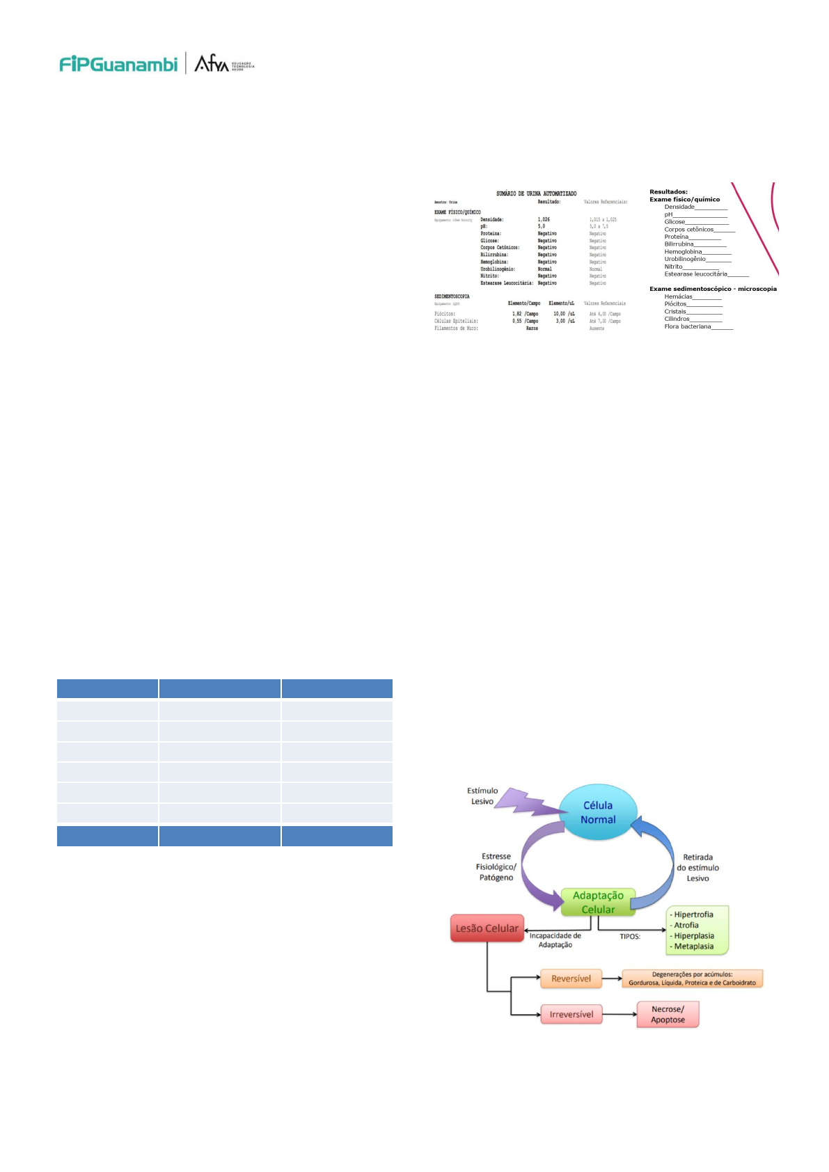 Cecília Gabrielle Lima Matos - 3º PERÍODO Laboratório de Farmacologia 1- Paciente, sexo masculino, 70 anos, comparece na unidade de saúde e refere pressão elevada. Sem outras queixas. AP: Tabagista ativo (55 maços/ano). Medicamentos em uso: nenhum. História familiar: nega. Exame físico: peso 75kg, altura 1,70m, IMC: 26, PA: 160/90mmHg (2 aferições), FC: 70 bpm. Quais exames laboratoriais devem ser solicitados? Ureia, creatinina sérica e ácido úrico -> avaliar função renal. Perfil lipídico (triglicérides, HDL, LDL, colesterol total) -> obesidade é fator de risco para HAS, pois placas de gordura podem enrijecer as artérias e aumentar a pressão. Glicemia -> diabetes é fator de risco para HAS. Se sobrepeso ou obeso, incluir hemoglobina glicada ou teste oral de tolerância à glicose. Urina tipo I ou Urinálise (EAS) -> avaliar se há glicosúria, proteinúria, parâmetros físicos, químicos e sedimentoscopia. ECG de repouso ->não é obrigatório nesse caso por não haver sintomas como palpitações, FC alterada ou histórico familiar de HAS. Mensuração de sódio e potássio séricos -> são eletrólitos secretados no rim que ajudam avaliar a função renal. Qual a relação da ureia e creatinina em um paciente com HAS descontrolada? Avaliação da função renal do paciente, afinal, se estão altos podem ser indicativos de um desequilíbrio. 2- Homem, 58 anos, relata história familiar para doença arterial coronariana. Tabagista, uso social de álcool. Apresentou os seguintes exames após jejum de 12 horas. Esse paciente é diabético? Existe alguma relação entre diabetes e HAS? Sim. Existe relação por ser fator de risco. Calcule o resultado do LDL-c. A fórmula de Friedewald serve para mensurar o colesterol LDL: LDL = (CT - HDL) - (TG/5) Nesse caso... LDL= (290-35) - (350/5) = 185mg/dL (elevado) Quais as principais fatores de risco adicionais, para Hipertensão Arterial, que esse paciente apresenta? Tabagismo, Elitismo, diabetes, obesidade e histórico familiar. Qual o provável aspecto do soro desse paciente? Mais concentrado, amarelado. Podemos afirmar que o paciente apresenta dislipidemia analisando isoladamente o resultado do IMC? Explique. Não. O IMC não mede se o paciente tem mais tecido adiposo ou muscular. Então não dá para concluir apenas com esse dado. 3- Resultados: Exame físico/químico Densidade - alterada pH - alterado (ex: proteína acidifica a urina) Glicose - alterado Corpos Cetônicos - se for diabético estará alterado Proteína - alterado Bilirrubina - normal Hemoglobina - normal Urobilinogênio - normal Nitrito - normal Estearase leucocitária - normal Exame sedimentoscópico Hemácias - normal Piócitos (leucócitos) - normal Cristais - alterado (avaliam função renal) Cilindros - alterado (avaliam função renal) Flora bacteriana - normal (fica alterado em casos de contaminação da amostra) Laboratório de Patologia MECANISMOS DE ADAPTAÇÃO CELULAR Toda célula normal, ao receber um estímulo lesivo (seja por um estresse fisiológico ou um patógeno) deve passar pelo processo de adaptação celular. Quando ela possui uma incapacidade de adaptação, ela sofre uma lesão celular que pode ser reversível ou irreversível, levando à necrose/apoptose. Marcador Resultado VR Glicose 155 mg/dL 60-90 Colesterol Total 290mg/dL <200 HDL-c 35mg/dL >40 LDL-c ? <130 Triglicerídeos 350mg/dL <150 IMC 43,2Kg/m2 <30 PA 160/100mmHg 110/70 Cecília Gabrielle Lima Matos - 3º PERÍODO Quando ela consegue de adaptar a esse novo estímulo, ela pode partir para 4 mecanismos: hipertrofia, atrofia, hiperplasia ou metaplasia. RELEMBRANDO.... Crescimento celular: Diferenciação celular: Aspectos do comportamento das células normais Células lábeis -> são aquelas que se renovam com facilidade e rapidez. São exemplos as células das superfícies de revestimento. Células estáveis -> são aquelas que possuem renovação lenta e proliferação rápida. A capacidade de replicação dos núcleos dessas células permanece em descanso na maior parte do tempo, mas isso muda rapidamente quando se recebe um estímulo adequado. São exemplos os hematócitos, as células dos túbulos renais e os fibroblastos. Células permanentes -> são aquelas que possuem lesão irreversível. Seus núcleos não possuem mais a capacidade de reiniciar o processo replicativo e uma vez perdida essa capacidade, essas células não são mais substituídas. São exemplos os neurônios e os cardiomiócitos. Regulação do crescimento As células devem estar em homeostase de modo que não pode haver uma desregulação em seu crescimento nem em sua morte, ou seja, deve haver um equilíbrio entre as células que se originam e as que sofrem apoptose. Afinal, caso haja um crescimento exacerbado, pode dar origem a uma neoplasia. E caso haja uma relevante quantidade de células morrendo, pode gerar um dano no órgão em questão. ALTERAÇÃO DO VOLUME CELULAR Hipertrofia Se refere a um aumento do tamanho e volume das células, resultando em um aumento no tamanho do órgão. Pode ser de dois tipos: Fisiológica -> Ex: hipertrofia do útero gravídico. Patológica -> Ex: Neoplasias. Temos como causas da hipertrofia o aumento da demanda funcional e estímulos hormonais. Hipoatrofia ou Atrofia Redução do tamanho das células devido a perda de substância celular. Pode ser de dois tipos: Fisiológica -> Ex: diminuição no tamanho do órgão por desuso. Comum nos rins (casos de hipoatrofia renal por estenose arterial). Vale lembrar que esse órgão não necessariamente perde a função. Patológica -> Ex: Neoplasias. Temos como causas da atrofia a diminuição do suprimento sanguíneo, diminuição da carga, perda da inervação ou desnutrição. ALTERAÇÃO DO CRESCIMENTO CELULAR Hiperplasia Se refere a um aumento do número de células de um órgão ou tecido, resultando em um aumento no tamanho do órgão (volume). Pode ser de dois tipos: Cecília Gabrielle Lima Matos - 3º PERÍODO Fisi