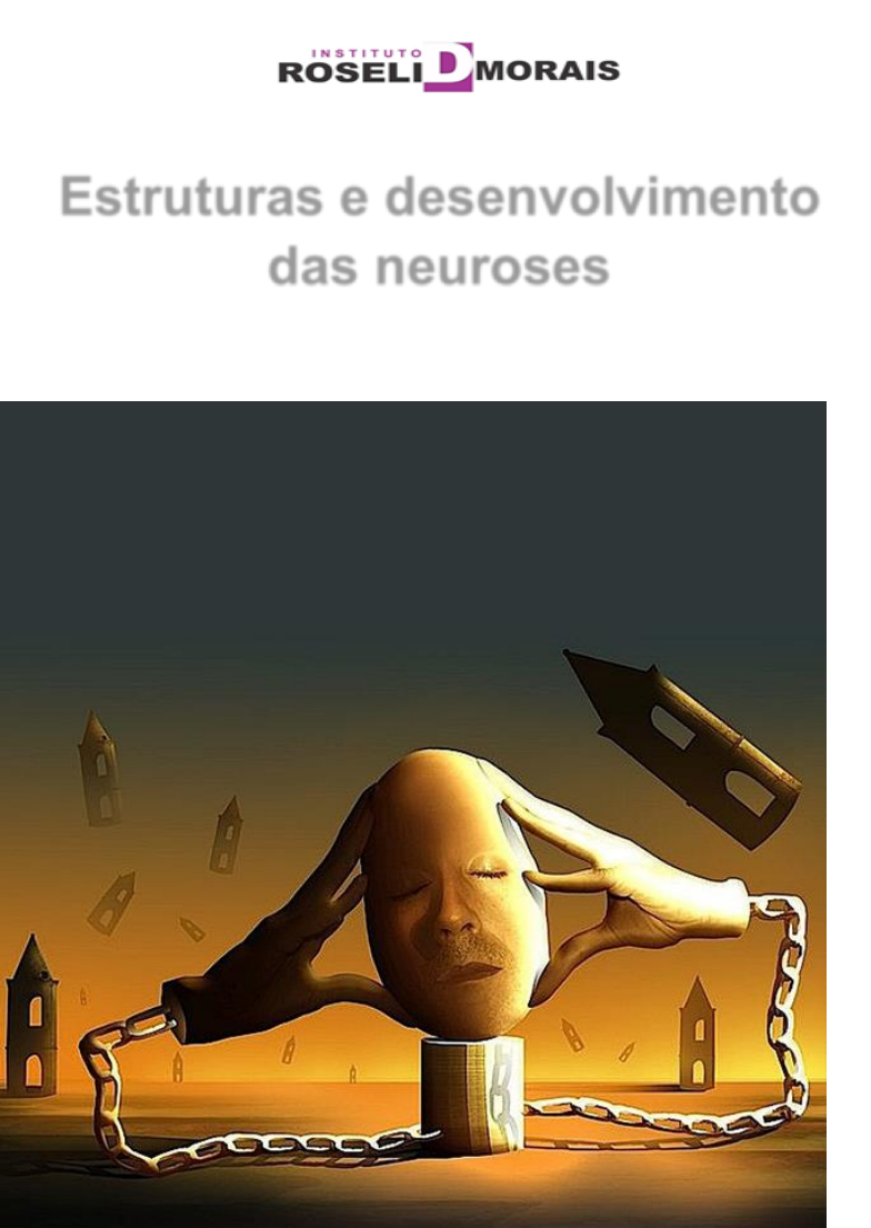 IRDM - Rua Emygdio Pierozzi, 195 - Jardim Marajoara - Nova Odessa/SP, CEP: 13460-000 É expressamente proibida a reprodução deste material por qualquer pessoa para fins de treinamento ou de qualquer outra forma de que não seja dentro do próprio Instituto Roseli D Morais. 1 Estruturas e desenvolvimento das neuroses Professora: Roseli D Morais IRDM - Rua Emygdio Pierozzi, 195 - Jardim Marajoara - Nova Odessa/SP, CEP: 13460-000 É expressamente proibida a reprodução deste material por qualquer pessoa para fins de treinamento ou de qualquer outra forma de que não seja dentro do próprio Instituto Roseli D Morais. 2 Introdução O termo Neurose foi criado pelo médico escocês Willian Cullen em 1769 para indicar desordens de sentidos e movimento’ causadas por ‘efeitos gerais do sistema nervoso. Na psicologia moderna, é sinônimo de psiconeuroses ou distúrbio neurótico e se refere a qualquer desordem mental que, embora cause tensão, não interfere com o pensamento racional ou com a capacidade funcional da pessoa. Essa é uma diferença importante em relação à psicose, desordem mais severa. A palavra deriva de duas palavras gregas: neuron (nervos) e osiõ (condição doente ou anormal). A neurose na teoria psicanalítica, é uma estratégia ineficaz para lidar com o sucesso e com algo, o que Sigmund Freud propôs ser causado por emoções de uma experiência passada, causando um forte sentimento que dificulta a reação ou interferindo na experiência presente. Por exemplo alguém que foi atacado por um cachorro quando criança pode ter fobia ou um medo intenso de cachorros. Porém, ele reconheceu que algumas fobias são simbólicas e expressam o medo reprimido. Na teoria da psicologia analítica, de Carl Jung, a neurose resulta do conflito entre duas partes psíquicas, das quais uma deve ser inconsciente. Todos nós temos alguns sintomas neuróticos, frequentemente manifestados nos mecanismos de defesa do ego que ajudam a lidar com a ansiedade. Mecanismos de defesa que resultam em dificuldades para viver são chamadas ‘neuroses’ e são tratados pela psicanálise, psicoterapia ou outras técnicas psiquiátricas. Apesar de sua longa história, o termo ‘neurose’ não é mais de uso comum. Os atuais sistemas de classificação abandonaram a categoria ‘neurose’. O DSM IV eliminou a categoria por completo. Desordens primeiramente chamadas de neuroses agora são descritas sob títulos de ansiedade e desordens depressivas. IRDM - Rua Emygdio Pierozzi, 195 - Jardim Marajoara - Nova Odessa/SP, CEP: 13460-000 É expressamente proibida a reprodução deste material por qualquer pessoa para fins de treinamento ou de qualquer outra forma de que não seja dentro do próprio Instituto Roseli D Morais. 3 Apesar de sua longa história, o termo ‘neurose’ continua controverso, e já se discutiu que é necessário um termo mais apropriado para substituí-lo. Apresentação A prática de Freud foi dedicada muito amplamente ao tratamento de neuróticos, e foi nesta área que ele fez suas contribuições clínicas mais duradouras. Depois de uma série de tentativas na década de 1890, de 1900 a 1914, ele virtualmente resolveu o problema da neurose, que tornou- se então parte integral de toda a teoria psicológica e psiquiátrica. Ainda não é bem reconhecido o grau em que Freud resolveu os problemas técnicos da neurose. Em primeiro lugar, ele estabeleceu que a neurose era um problema psicológico digno de estudo e não uma forma de degeneração hereditária ou fingimento, como se acredita até então. Em segundo lugar, ele reformulou os sintomas disparatados que seus predecessores e colegas tinham descrito, dividindo-os em duas grandes entidades clínicas– neurose obsessiva (o próprio termo provém de Freud) e a histeria. A histeria foi ainda subdividida em histeria de conversão e histeria de ansiedade. Ambas as designações foram de Freud. Em terceiro lugar, em termos da teoria da libido, ele determinou o que poderia ser considerado como curso normal de desenvolvimento e mostrou como a neurose podia ser tornada inteligível por referência a este desenvolvimento normal. Em quarto lugar, ele demonstrou que a neurose e a normalidade diferem apenas em grau, não em qualidade, e desta forma desenvolveu ou neurótico (e mais ainda o psicótico) um lugar na sociedade. Em quinto lugar, ele estabeleceu que estas neuroses são tratáveis pela psicanálise, e que a psicanálise é o melhor tratamento para elas. Ainda hoje, o termo ‘neurose’ tem apenas uma vaga definição. IRDM - Rua Emygdio Pierozzi, 195 - Jardim Marajoara - Nova Odessa/SP, CEP: 13460-000 É expressamente proibida a reprodução deste material por qualquer pessoa para fins de treinamento ou de qualquer outra forma de que não seja dentro do próprio Instituto Roseli D Morais. 4 Quando Freud começou, ele escreveu sobre ‘neuropsicoses’, uma designação que hoje em dia seria imaginável. Para Freud a neurose sempre será o conflito entre duas forças antagônicas, um desejo de prazer (pulsão) o medo da punição (moral e social). O que é Neurose? Segundo o Dicionário de Psiquiatria, editado pelo Hospital das Clínicas da USP e organizado pelo Dr. Hélio Elkis, a palavra Neurose foi criada pelo médico escocês William Cullen no fim do século XVIII, para designar distúrbios das sensações e movimentação corporal, sem uma lesão anatômica correspondente na rede nervosa. No início do século XX o termo popularizou-se graças a difusão das ideias de Freud e da psicanálise, significando conjuntos de sintomas resultantes principalmente de conflitos psicológicos e recalques inconsciente. Este conceito prevaleceu na Psiquiatria até a década de 60, em que os transtornos mentais eram distribuídos em dois grandes grupos: psicoses e neuroses. As psicoses, consideradas doenças mentais mais graves, atribuíam-se causas orgânicas ou funcionais; as neuroses tidas como menos graves, teriam origem nos conflit