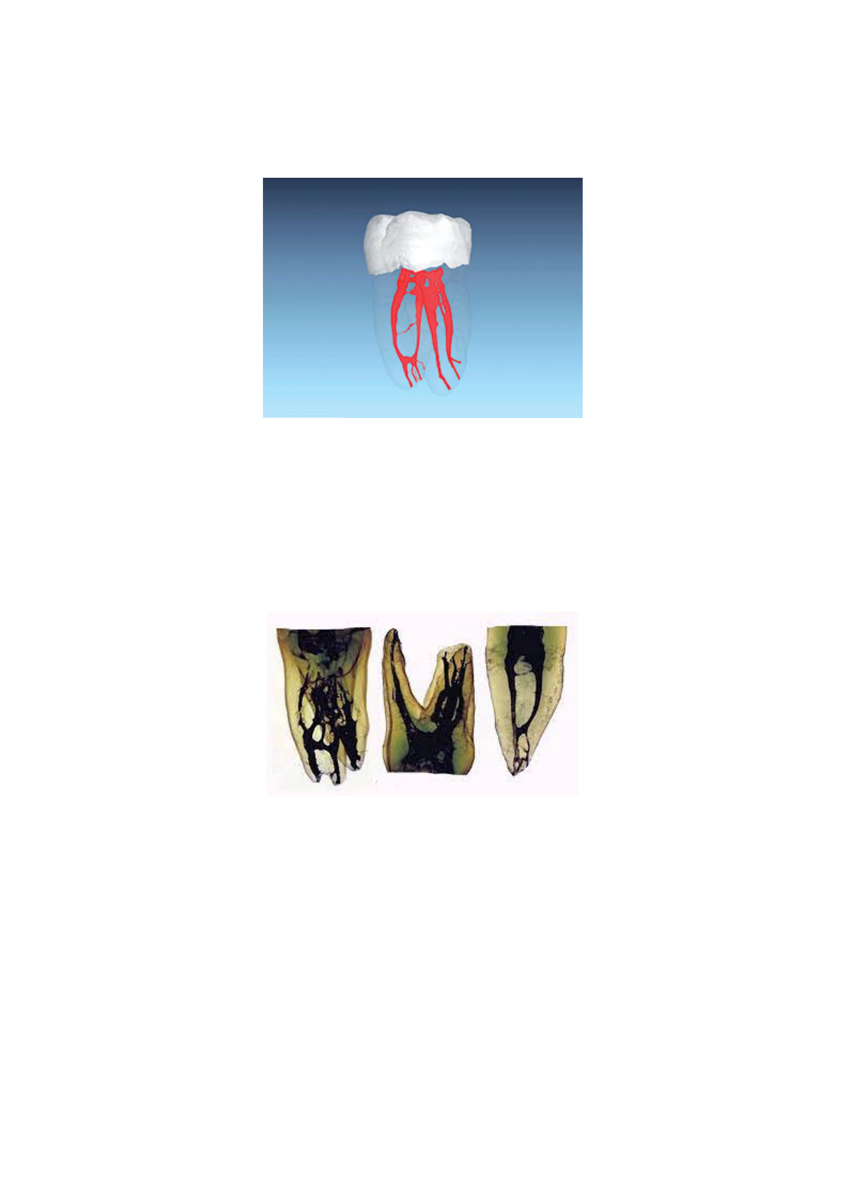 Anatomi� � morfologi� d� Scr SISTEMA DE CANAIS RADICULARES (SCR) - SCR = Sistema de canais radiculares - Dentro da raiz e em parte da coroa tem-se a cavidade pulpar na qual o conteúdo é a polpa - Alguns dentes podem ter 3 raízes mas tem 4 canais uma vez que essa correspondência não existe necessariamente - Conjunto complexo composto por canal principal e suas ramificações. Estrutura tridimensional e diversificada - Diversas ramificações - O scr é o foco do endodontista - Desafiador por ser uma anatomia muito diversificada e de difícil visualização - Diversidades anatômicas CAVIDADE PULPAR Cavidade pulpar = O todo Câmara pulpar = Parte da polpa localizada na coroa Canal radicular = Parte da polpa que está na raiz Cavidade única, geralmente volumosa que aloja a polpa coronária e ocupa internamente o centro da coroa, assemelhando-se em forma a superfície externa do dente - Volume da câmara varia de indivíduo devido a deposição de dentina secundária por exemplo Oclusal/ Incisal = Teto da câmara pulpar Região cervical = Soalho da câmara pulpar ESTRUTURAS DA CÂMARA PULPAR - Durante todo tratamento endodôntico essa é a única vista dos canais radiculares - A entrada dos canais radiculares é no soalho - Canal é dividido em 3 partes - Terço cervical - Terço médio - Terço apical CANAL RADICULAR Parte da cavidade pulpar localizada na porção radicular do dente, ela se afunila progressivamente em direção ao ápice, seguindo o contorno externo da raiz DIVISÃO BIOLÓGICA Canal dentinário - Tecido conjuntivo mucoso - Rico em odontoblasto - revestido por dentina - “campo de ação do endodontista” Canal cementário - Tecido conjuntivo maduro - Sem odontoblasto - Revestido por cemento - Completamente formado de 3 a 5 anos após a erupção CANAL RADICULAR - Canal principal : Geralmente tem a forma cônica e é oval na sua seção transversal, apresentando diâmetro maior em seu orifício. - Mais calibrosos - Canal acessório : Ramificações diminutas que comunicam superfície externa da raiz Canais acessórios e sua nomenclatura : - Colateral = Grande canal que saí de um principal - Lateral = segue horizontalmente em direção a região radicular - Acessório = Saí de um secundário - Inter Conduto = Liga um canal principal a um colateral - Recorrente = Sai e volta para o mesmo canal - Reticular = Espécie de “rede” mais comum na região apical - Cavo inter radicular = Saí da câmara pulpar e desce para região de furca do dente - Os dentes unirradiculares tendem a possuir uma polpa mais volumosa - Canal radicular de um dente unirradicular praticamente contínua com a câmara pulpar - Multi Radiculares geralmente a polpa são menos volumosas CURVATURA RADICULAR Além da anatomia tem-se a curvatura das raízes As raízes são curvas e os canais acompanham essa curvatura Molares costumam ter curvas bem acentuada A maioria dos canais radiculares é curvo em sua porção apical A GUTA PERCHA E OS INSTRUMENTAIS NÃO ENTRAM NOS CANAIS ACESSÓRIOS - Principalmente nos dentes birradiculares existe um caminho de um canal a outro chamado de ISTIMO - Os instrumentos geralmente não entram no istimo - A região apical é a região de maior diversidade anatômica e se bacterias se acumularem nessa região o tratamento pode falhar - Região apical deve ficar bem limpa para que o caso seja bem conduzido ZONA CRÍTICA APICAL - Forame apical vai estar no cemento - Canal dentinário (parte presente na dentina) e o restante é o canal cementário - Essa região de mistura é denominada zona crítica apical por ser extremamente desafiadora - Além disso pode apresentar curvatura - É A REGIÃO EM QUE O TECIDO PULPAR SE ENCONTRA COM A REGIÃO PERIODONTAL - Transição da dentina e cemento é chamada de limite CDC ou seja limite cemento dentinário - O forame apical nem sempre vai estar localizado na raiz do dente uma vez que ele pode ser lateralizado CLASSIFICAÇÃO DE VERTUCCI - Tem haver com os tipos de canais - Não são ramificações e sim canais principais TIPO I - Um canal se estende da câmara pulpar ao ápice TIPO II - Dois canais distintos deixam a câmara pulpar, mas convergem perto do ápice para formar um canal radicular (dois canais distintos que se unem na região apical) TIPO III - Dois canais distintos se estendem da câmara pulpar no ápice TIPO IV - Um canal deixa a câmara pulpar e se divide perto do ápice em dois canais distintos DENTE COMP. MÉDIO N. RAÍZES N. DE CANAIS ICS 21,8 mm 1 1 ILS 23,1 mm 1 1 (97%) 2 (3%) CS 26,4 mm 1 1 1.º PMS 21,5 mm 1 (35%) 2(42%) 1 (uma pequena parte) 2 (maioria) 2.º PMS 22 mm 1 (maioria) 2 (pode ocorrer) 1 (53%) 2 (46%) 1.º MS 21,3 mm 3 (maioria) mas podem estar fusionadas 4 (70%) 2.º MS 21,7 mm 3 (maioria) 3 (50%) 4 (50%) ICI 20,8 mm 1 1-2 ILI 22,6 mm 1 1-2 CI 25 mm 1 maioria - 2 pode ocorrer 1 maioria - 2 pode ocorrer 1.º PMI 21,9 mm 1 maioria - 2 pode ocorrer 1 maior chance)-2-3(menor chance) 2.º PMI 22,3 mm 1 (maioria) 1 (maioria) 1.º MI 22 mm 2 raízes diferenciadas (maioria) 2 canais fusionados, 3 2, 3, 4 2.º MI 22,4 mm 2,3,4 2,3,4 LEGENDA - COMPRIMENTO MÉDIO = REGIÃO INCISAL AO ÁPICE OBSERVAÇÕES - Pré molar desafiador para endodontia por estar na curva do arco - Siso tem em relação às raízes e canais uma anatomia muito diversificada - Geralmente 1 canal está no centro da raiz - Caso ao abrir o canal ta muito vestibularizado ou para lingual pode desconfiar da existência de outro - PMS mais desafiador por visão indireta e pela proximidade do zigomático sobrepor radiografia