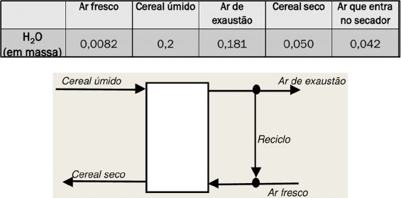 Departamento de Engenharia Química – Universidade Federal de São Carlos Princípios de Bioprocessos 1 – Prof. Dr. Valdemir Moretto Cardoso Aula 5: Lista de Exercícios – Balanços de massa 1) Centrífugas são empregadas para separar partículas de um líquido por meio da força centrífuga. Uma entrada líquida é separada em duas saídas: uma líquida e outra que pode ser sólida ou um líquido concentrado (creme). Leveduras são recuperadas de um mosto (uma mistura líquida contendo células) empregando uma centrífuga tubular (um sistema cilíndrico que gira em torno de seu eixo de simetria). Determine a quantidade de célula liberada na descarga (no creme de levedura) por hora, se 100 L/h de mosto são alimentados à centrífuga. A alimentação contém 500 mg de células/L e o sobrenadante (corrente líquida de saída) é isento de células. 2) O cereal é seco em um secador vertical por um ar que escoa em contracorrente com ele. Com a finalidade de prevenir quebra dos flocos do cereal, o ar de exaustão do secador é reciclado. Para cada 1000 kg/h de cereal úmido alimentado, calcule a alimentação de ar fresco úmido (corrente identificada como Ar fresco no fluxograma) em quilogramas por hora e a taxa de reciclo em quilogramas por hora. As frações mássicas de água são fornecidas na tabela abaixo: