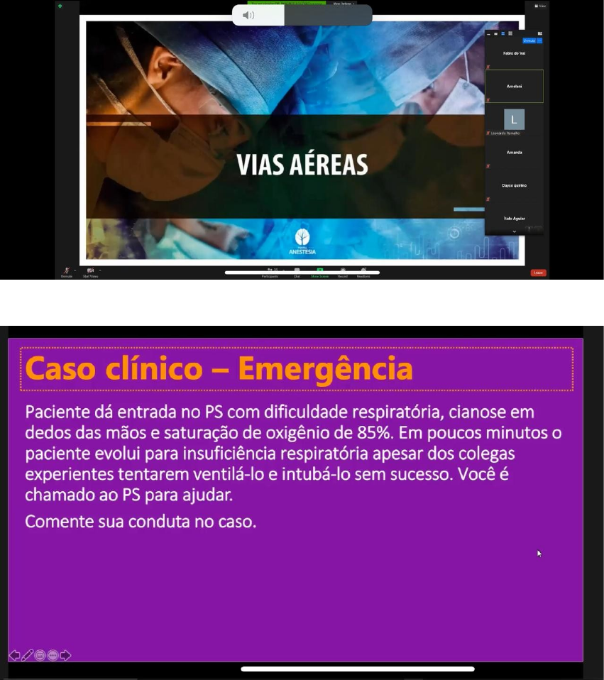 AULA 2 – URGÊNCIA E EMERGÊNCIA VIAS AÉREAS A princípio, pode ser até pct com Covid, ou pct com Asma e está com dispneia. Vejam situações onde o paciente possui predisposição para via aérea difícil. A primeira figura esse paciente ele foi vítima de um choque anafilático, veja como ele está com os olhos bastante edemaciados, a língua.. essa imagem nesse grau de choque de anafilaxia ele pode ser muito bem comparado a um pcte que teve queimadura de face. Lembra que eu disse a vcs na ultima aula que qdo um pcte é vítima de queimadura de face, cheiro de carbonizado saindo pela boca, pelo nariz, tossindo.. aí vc fala “Não vou intubar, já são 18:40h, vou esperar o colega” beleza... Dependendo do tempo que vc posterga essa intubação a língua, os lábios vão ficar dessa forma, totalmente edemaciados e aí vc não consegue intubar. Pacientes que tem malformações congênitas (2 foto) tumor cervical, aqui já tem uma traqueostomia prévia. Malformações da face (terceira e ultima foto). Essa ultima foto a criança tem uma síndrome de Pierre Robin, tem uma agenesia de mandíbula. Na segunda foto abaixo tem retrognatismo e prognatismo que é aquela alteração na mandíbula pra frente ou pra trás, também é um sinal de via aérea difícil. Por incrível que pareça quem tem a língua grande, macroglossia, tbm é um preditivo de que o paciente não é tão fácil intubar. Qual pct conhecido de vcs tem macroglossia? Sindrome de Down. Então se o pct tem Síndrome de Down vai ser um detalhe que vc vai ter que lembrar. Lembrar que na Urgência cada detalhe faz a diferença, então se vc pode lembrar de algo que chama atenção, vc tem que tentar fazer métodos que sejam diferentes. Vc perceber e agir. Obesidade é um fator de difícil ventilação tanto por máscara quanto para intubação. Então o obeso tbm é considerado um pct de difícil intubação. Olha esse pct com alteração cervical , tumores cervicais, linfáticos. Esse pct ele não tem mobilidade cervical e nós vamos ver isso. Um pct desse chega na emergência com esse quadro , dispnéia, cianose, ninguém conseguiu intubar... O que vc pode fazer? Ele está deitado na maca, e aí, o que eu tenho pra fazer? Então, sabidamente, vc olha um pcte desse, até nós anestesistas quando nos deparamos com paciente dessa forma gente fica com receio. E o que nós podemos fazer? Vão acontecer situações, so respondendo rapidamente, traqueostomia naquele paciente vc não consegue fazer, vcs viram o tanto de tumor que ele tem ali? Ele não tem acesso a traqueia. Traqueostomia ali é muito mais difícil do que vcs podem imaginar. Situações assim (foto) paciente sangrando pela boca, vc está na rua, não tem aspirador, improvisaram aspirador aqui ao lado, deve ser do ambú, a sonda de aspiração está aqui. E aí? O que eu tenho pra fazer? Eu só tenho um laringoscópio? Eu tenho outros métodos e mecanismos. Situações onde o pct está imobilizado (1 foto), aqui uma fratura C4 e C5 (2 foto), Traumas de face (3 foto) como eu vou ventilar esse paciente com máscara? Aqui mostrando quando o pct tem suspeita de fratura coluna cervical , vários colegas ajudando para a correta estabilização da coluna cervical, tentando fazer com que não haja uma hiperextensão, como no primeiro caso, onde se vc precisar intubar vc não vai tirar o colar cervical. Como que eu, primeiramente, avaliar uma via aérea? Eu preciso entender o que é uma via aérea fácil e uma via aérea difícil. Então, todo paciente que a gente vai prestar assistência ventilatória, agora, claro que se o paciente estiver em coma, na situação de sangramento, agitação psicomotora, talvez vc não vá conseguir, por exemplo, um dos métodos é vc pedir que o pct, existe avaliação do grau de intubação, intubação eletiva. Aqui chegou um pct eu tenho tempo hábil para poder conversar com ele, ver o que está acontecendo, as vezes é um pct que chegou pra vc com dor precordial, vc já conversou, vc examinou ele, ele está falando, vc consegue ver se ele abre a boca, vc olhou a face dele... Agora situações que o pct chega inconsciente , vc não vai fazer esse teste aqui · Distância entre os incisivos: maior que 3 cm O ideal é vc conseguir colocar 2 ou 3 dedos dentro da boca, vc pode pedir pro pct “Por favor, vc pode colocar ...” a grande maioria das vezes vc perceber que o pct está falando, abrindo a boca, já é o suficiente. Agora aqueles pcts que tem a fala mais travada , chama um pouco atenção. · Distância tireomentoneana: maior ou igual a 6 cm · Distância esternomentoneana: maior que 12 cm A distância tireomentoneana tem que ser maior ou igual a 6 e a distância esternomentoneana tem que ser maior que 12cm pq vc tem essa distância preservada maior que 6 cm ou 12 cm vc pode imaginar que esse pct tem uma mobilidade cervical. Aquele pct com todo aquele infiltrado de linfonodos, tumores, ele não tem essa distância preservada. E aqueles pcts que vc não vê pescoço, vc vai ter uma dificuldade. · Comprimento dos incisivos superiores: curtos Aqui, é a Mônica, pcts que tem o dentão, incisivos mto grandes, as vezes é esse dente que atrapalha a passagem do tubo. · Conformação do palato: Não estreito Aquela boquinha mais fechadinha, é muito comum em pct que tem alteração de via aérea, que as vezes precisam passar por um procedimento bucomaxilofacial, vc olha o céu da boca, o palato bem pequeno. · Protusão voluntária da mandíbula: Dentes Qdo vc tem os dentes inferiores a frente dos superiores, isso dificulta a abertura bucal. Então, vejam, só de vc olhar a face de um pct, seja ele da forma que for, a qtde de dente, se tem muitos dentes ou dentes falhos, “paciente vampiro é o pior que tem”, incisivo lateral atrapalha muito, pode rasgar o cuff na hora de passar o tubo. Só de vc analisar os dentes, a face, a distância do pescoço, se ele tem ou não algum tumor vc sabe se esse pct vai ser fácil para ventilar, par