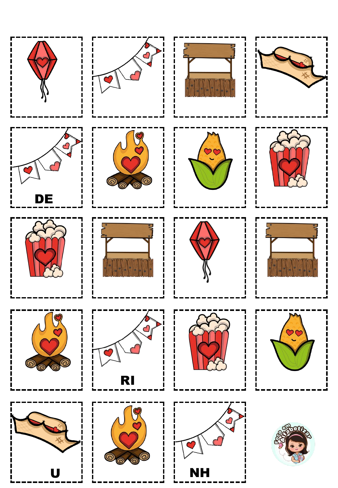 BA BAN BAR CHA DEI FO MI PI PO RA LÃO CA GUEI RI CA LHO PÉU RA NHAS RECORTAR E FORMAR PALAVRAS - FESTA JUNINA www.focoemalfabetizar.com.br