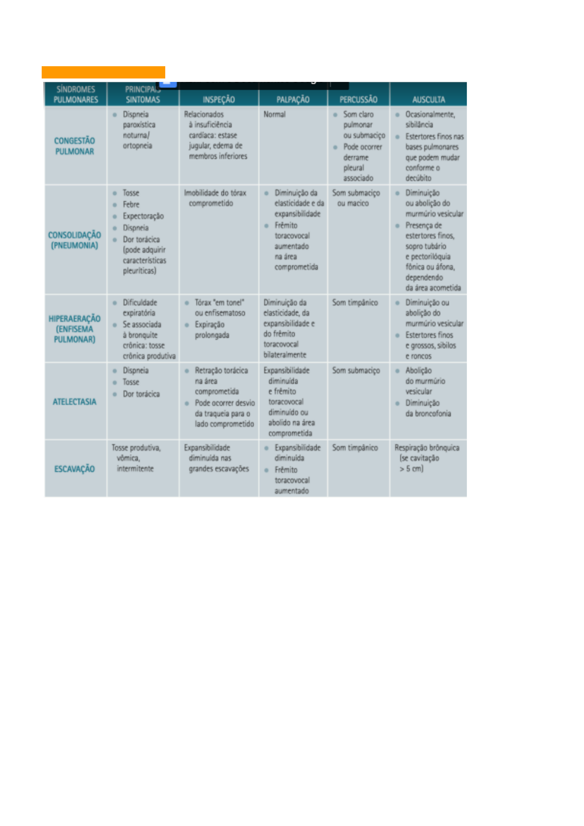 Tabela síndromes Pleuropulmonares: Síndromes pulmonares: Síndromes pleurais: