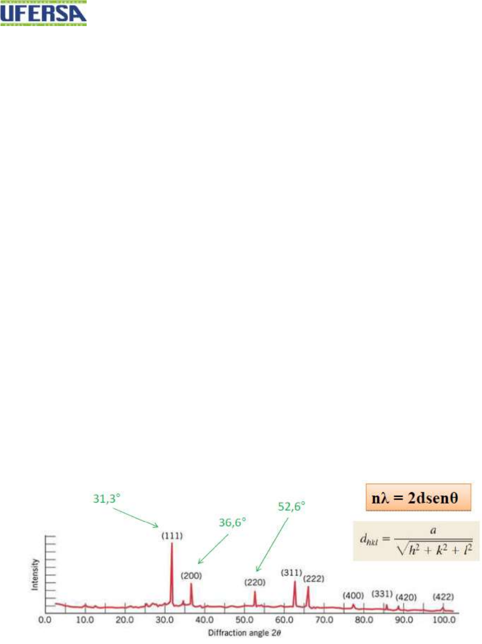 UNIVERSIDADE FEDERAL RURAL DO SEMI-ÁRIDO CENTRO MULTIDISCIPLINAR DE PAU DOS FERROS Disciplina: Fundamentos de Ciências dos Materiais Código: PEN1883 Professora: Josy Eliziane Torres Ramos Período: Noturno Aluno: _____________________________________________________________ Turma: _____ Data: ______/_______/_______ Orientações: 1) A prova deve ser feita de caneta esferográfica azul ou preta; 2) Só será considerada a prova entregue para correção dentro do prazo no sistema SIGAA; 3) Só serão consideradas questões com todos os cálculos, claros e legíveis. 1ª AVALIAÇÃO 1. O metal ródio possui uma estrutura CFC. Se o ângulo de difração para o conjunto de planos (311) ocorre em 36,12° (reflexão de primeira ordem, n = 1) quando é usada uma radiação X monocromática com comprimento de onda 0,0711nm, calcular (2,0 pontos): a) o espaçamento interplanar para este conjunto de planos; b) o raio atômico para o átomo de ródio; c) a densidade teórica do material, a partir do valor do raio calculado no item b. Considere a massa molar do Ródio = 102,91g/mol. d) desenhe o plano (311) na célula unitária. 2. A imagem a seguir apresenta um difratograma para o elemento chumbo, obtido usando radiação monocromática com comprimento de onda de 0,1542nm. Cada pico de difração foi identificado. Calcule o espaçamento interplanar para os 2 primeiros planos (identificados na imagem) e também o parâmetro “a” da rede cristalina para os 2 primeiros picos (2,0 pontos). 3. Uma chapa de aço com 1,5mm de espessura e a 1200°C possui atmosferas de nitrogênio em ambos os lados, e se lhe permite atingir um coeficiente de difusão em estado estacionário. O coeficiente de difusão para o nitrogênio no aço, nessa temperatura, é de 6x10-11 m²/s e o fluxo de difusão 1,2x10-7 kg/m².s. Sabe-se ainda que a concentração do nitrogênio no aço na superfície com alta pressão é de 4kg/m³. A que profundidade do interior da chapa, a partir desse lado com pressão elevada, a concentração será de 2kg/m³? Considere um perfil de concentração linear. (1,0 ponto). 4. Determine o tempo de carbonetação necessário para atingir uma concentração de carbono de 0,45%p em uma posição de 2mm em direção ao interior de uma liga ferro- carbono contendo inicialmente 0,20%p de carbono. A concentração na superfície deve ser mantida em 1,30%p de carbono, e o tratamento deve ser conduzido numa temperatura de 1000°C. Utilize os dados de difusão do Ferro apresentado na tabela a seguir (1,0 ponto). 5. Um corpo de prova cilíndrico de um aço, onde a curva tensão-deformação está apresentada abaixo, contém 8,5mm de diâmetro e 80mm de comprimento. O mesmo é submetido a um ensaio de tração. Determine (2,0 pontos): a) O seu alongamento quando uma carga de 65.250N for aplicada; b) O valor do módulo de elasticidade; c) O valor do limite de escoamento para deformação de engenharia = 0,002 (ou 0,2%); d) O valor do limite de resistência à tração. Boa prova!