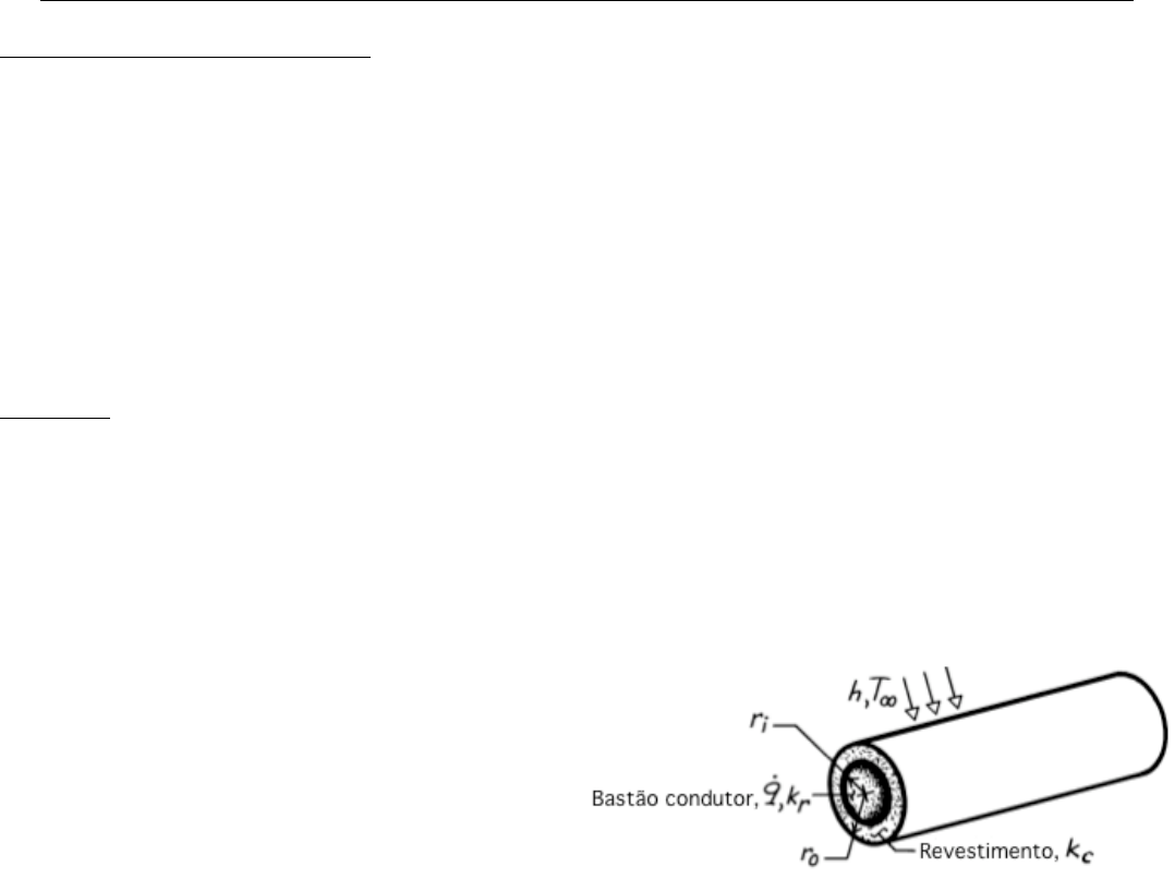 PME3238 – Fenômenos de Transporte Prof. Bruno Souza Carmo Exercícios de Sala – Introdução à Transferência de Calor / Condução (aulas 19, 20 e 21 ) Introdução à transferência de calor 1- Uma placa de alumínio, com 4 mm de espessura, encontra-se na posição horizontal e a sua superfície inferior está isolada termicamente. Um fino revestimento especial é aplicado sobre sua superfície superior de tal forma que a mesma pode ser considerada uma superfície cinza com emissividade 0,50. A massa específica ρ e o calor específico c do alumínio são iguais a 2700 kg/m3 e 900 J/(kg⋅K), respectivamente. a) Considere condições nas quais a placa está à temperatura de 25 °C e a sua superfície superior é subitamente exposta a uma corrente de ar com T∞ = 20 °C estando numa câmara cujas paredes estão a 150 °C. O coeficiente de transferência de calor por convecção entre a superfície e o ar é de h = 20 W/(m2⋅K). Qual é a taxa inicial da variação de temperatura da placa? b) Qual será a temperatura de equilíbrio da placa quando as condições de regime estacionário forem atingidas? Condução 1- As temperaturas das superfícies interna e externa de uma janela de vidro, com espessura de 5 mm, são de 15 °C e 5 °C respectivamente. Qual é a perda de calor através de uma janela com dimensões de 1 m de largura por 3 m de altura? Assuma que a distribuição de temperaturas ao longo da espessura da janela é linear e que a condutividade térmica do vidro é constante e igual a 1,4 W/(m⋅K). 2- A passagem de uma corrente elétrica através de um longo bastão condutor de raio ri e condutividade térmica kr resulta em um aquecimento volumétrico uniforme a uma taxa . O bastão condutor é coberto por um revestimento de material não-condutor elétrico, com raio externo ro e condutividade térmica kc. A superfície externa é resfriada pelo contato com um fluido em escoamento. Para condições de estado estacionário, escreva as formas apropriadas da equação do calor para o bastão e para o revestimento. Enuncie as condições de contorno apropriadas para a solução dessas equações. 3- As paredes externas de um edifício são compostas por três camadas: uma placa de gesso (kg = 0,17 W/(m⋅K)) com 10 mm de espessura, espuma de uretano (ku = 0,026 W/(m⋅K)) com 50 mm de espessura, e uma madeira macia (km = 0,12 W/(m⋅K)) com 10 mm de espessura. Em um dia típico de inverno, as temperaturas do ar nos lados externo e interno da parede são de –15 °C e 20 °C, respectivamente., com os correspondentes coeficientes de transferência de calor por convecção iguais a 15 W/(m2⋅K) e 5 W/(m2⋅K). a) Qual a carga de aquecimento necessária para um seção de 1 m2 da parede? b) Qual a carga de aquecimento necessária se a parede composta for substituída por uma janela de vidro (kv = 1,4W/(m⋅K)) com 3 mm de espessura? c) Qual a carga de aquecimento necessária se a parede composta for substituída por uma janela dupla, com duas lâminas de vidro de 3 mm de espessura separadas por um espaço de 5 mm contendo ar estagnado (ka = 0,0263W/(m⋅K))? 4- Um aquecedor elétrico delgado é enrolado ao redor da superfície externa de um tubo cilíndrico longo cuja superfície interna é mantida a uma temperatura de 5 °C. A parede do tubo possui raios interno e externo iguais a 25 mm e 75 mm, respectivamente, e condutividade térmica de 10 W/(m·K). A resistência térmica de contato entre o aquecedor e a superfície externa do tubo (por unidade de comprimento do tubo) é de R’t,c = 0,01 m⋅K/W. A superfície externa do aquecedor está exposta a um fluido com T∞ = –10 °C e um coeficiente de convecção de h = 100 W/(m2·K). Determine a potência do aquecedor, por unidade de comprimento do tubo, requerida para mantê-lo a To = 25 °C. 5- Vapor d’água superaquecido a 575 °C é conduzido de uma caldeira para a turbina de uma usina de geração de potência elétrica através de tubos de aço (k = 35 W/(m⋅K)), com diâmetro interno igual a € ˙ q 300 mm e 30 mm de espessura de parede. Para reduzir a perda térmica para a vizinhança e para manter a temperatura externa segura para o toque, uma camada de isolante de silicato de cálcio (k = 0,10 W/(m⋅K)) é aplicada nos tubos. A degradação do isolante é reduzida ao cobri-lo com uma folha fina de alumínio que possui uma emissividade ε = 0,20. A temperatura do ar e das paredes da planta de potência é igual a 27 °C. Considerando que a temperatura da superfície interna do tubo de aço seja igual à do vapor e que o coeficiente convectivo externo à folha de alumínio seja igual a 6 W/(m2⋅K), qual é a espessura mínima de isolante necessária para garantir que a temperatura do alumínio não seja superior a 50 °C? Qual é a perda de calor correspondente, por metro de comprimento de tubo? 6- Ar no interior de uma câmara a T∞,i = 50°C é aquecido por convecção, com hi = 20 W/(m2·K)., através de uma parede com 200 mm de espessura, condutividade térmica de 4 W/(m·K) e com geração uniforme de calor a uma taxa de 1000 W/m3. Para evitar que o calor gerado no interior da parede seja perdido para o lado de fora da câmara, a T∞,o = 25°C e com ho = 5W/(m2·K), um aquecedor elétrico delgado é colocado sobre a superfície externa da parede para fornecer um fluxo térmico uniforme, q’’o. a) Esboce a distribuição de temperatura na parede, em um sistema de coordenadas T–x, para a condição em que nenhum calor gerado no seu interior é perdido para o lado de fora da câmara. b) Quais são as temperaturas nas superfícies da parede, T(0) e T(L), para as condições da parte (a)? c) Determine o valor de q’’o que deve ser fornecido pelo aquecedor elétrico de modo que todo o calor gerado no interior da parede seja transferido para o interior da câmara. d) Se a geração de calor na parede for interrompida e o fluxo fornecido pelo aquecedor elétrico permanecer constante, qual será a te