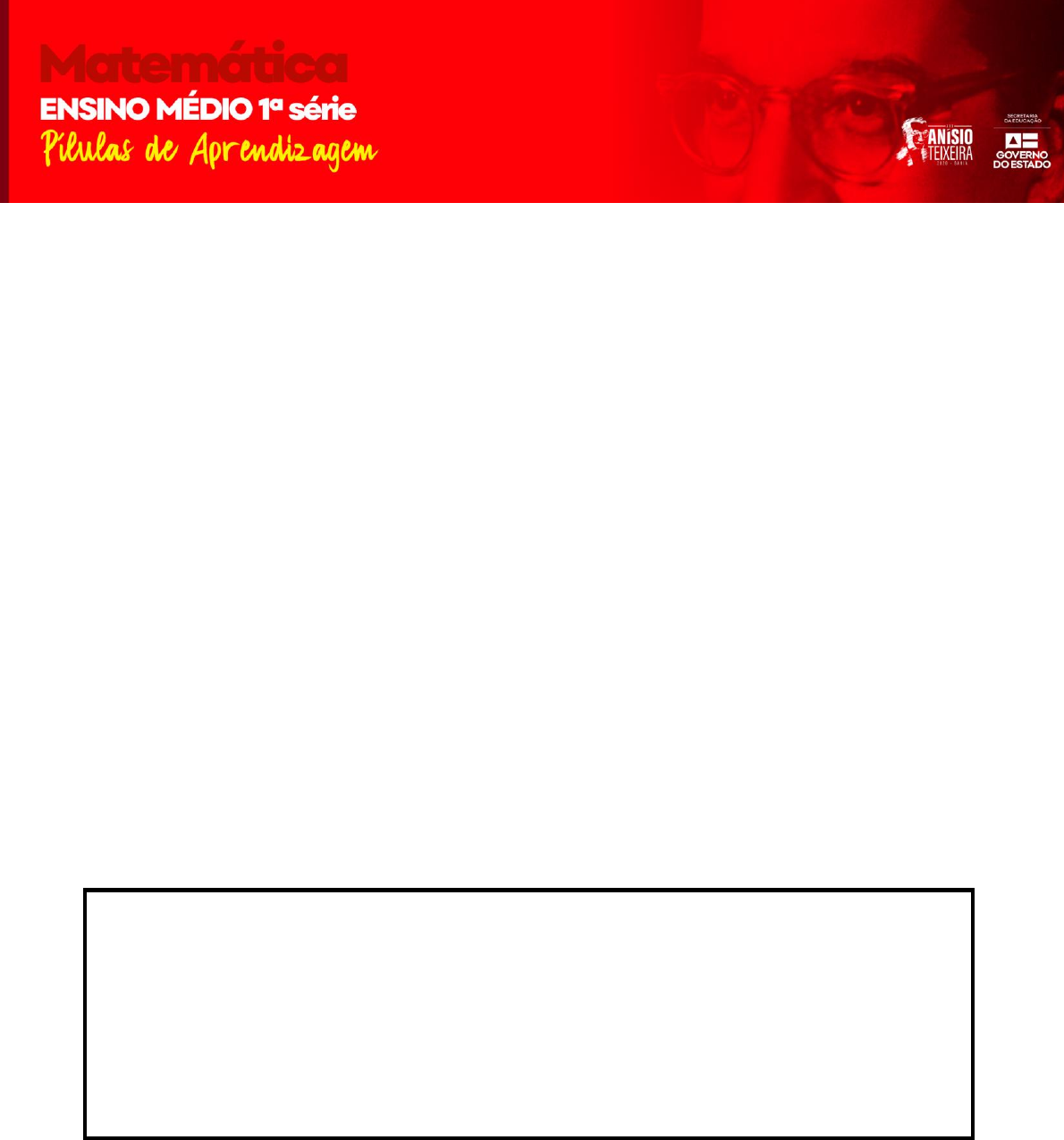 APRESENTAÇÃO Olá, Estudante! Como você está? Esperamos que você esteja bem! Lembre-se que, mesmo diante dos impactos da COVID- 19, preparamos mais um material, bem especial, para auxiliá-lo neste momento de distanciamento social e assim mantermos a rotina de seus estudos em casa. Então, aceite as “Pílulas de Aprendizagem”, um material especialmente preparado para você! Tome em doses diárias, pois, sem dúvida, elas irão contribuir para seu fortalecimento, adquirindo e produzindo novos saberes. Aqui você encontrará atividades elaboradas com base na seleção de conteúdos prioritários e indispensáveis para sua formação. Assim, serão aqui apresentados novos textos de apoio, relação de exercícios com gabaritos comentados, bem como dicas de videoaulas, sites, jogos, documentários, dentre outros recursos pedagógicos, visando, cada vez mais, à ampliação do seu conhecimento. As “Pílulas de Aprendizagem” estão organizadas, nesta primeira semana, com os componentes curriculares: Matemática, Física, Língua Portuguesa, Filosofia, Sociologia, História, Projeto de Vida e Educação Física. Vamos lá!? Como neste ano estamos comemorando o Aniversário de 120 anos de Anísio Teixeira, você também conhecerá um pouco da grande contribuição que este baiano deu à educação brasileira. A cada semana apresentaremos um pouco de sua história de vida e legado educacional, evidenciando frases emblemáticas deste grande educador. Anísio Spínola Teixeira (1900-1971) nasceu em Caetité, no sertão baiano, no dia 12 de julho de 1900. Estudou no colégio jesuíta São Luís Gonzaga em sua cidade natal, e em seguida, no colégio Antônio Vieira, em Salvador. Que tal conhecer um pouco desse grande educador baiano, através de suas frases sobre Vida e Educação? Convido você a refletir um pouco com a seguinte “Pílula Anisiana”: “Educar é crescer. E crescer é viver. Educação é, assim, vida no sentido mais autêntico da palavra.” (ANÍSIO TEIXEIRA). Você curtiu conhecer um pouco da vida de Anísio Teixeira? Semana que vem, traremos outras curiosidades. Agora, procure um espaço sossegado para realizar suas atividades. Embarque neste novo desafio e bons estudos! RETOMADA DAS ATIVIDADES PARA OS ESTUDANTES - 1ª Série Modalidade/oferta: Regular Semana: I Componente Curricular: Matemática Tema: Resolução de Problemas com Função do 1º grau Objetivo(s): Explorar as linguagens algébricas para reconhecer situações que envolvem funções do 1º grau. Autores: Cleverson Nogueira e Marcele Bacelar I. VAMOS AO MOMENTO DA LEITURA! TEXTO 01 Resolução de Problemas com Função do 1º grau Os problemas que envolvem função afim possuem algum valor fixo e algum valor variável; estes valores irão corresponder ao a e ao b da função f(x) = ax + b. Veja este caso como exemplo: Hélio trabalha como funcionário de uma loja e recebe R$ 880,00 todo mês mais R$ 10,00 por cada produto vendido. Se utilizarmos x para representar a quantidade de produtos que ele vendeu, a função que representa seu salário S, em reais, é esta: S(x) = 10x + 880. Com esta função podemos responder às seguintes perguntas: Se ele vender 42 unidades do produto, quanto vai receber? S(42) = 10 . 42 + 880 S(42) = 420 + 880 S(42) = 1300 Para receber R$2.000,00 de salário em um mês, quantos produtos ele deve vender? S(x) = 10x + 880 2000 = 10x + 880 2000 − 880 = 10x 1120 = 10x x = 112 Disponível em: https://matika.com.br/funcao-afim-1-grau/problemas-com-funcao-do-1-grau. Acesso em: 26 agosto. 2020. TEXTO 02 Grilos são conhecidos como termômetros da natureza “Termômetro de grilo” é um truque simples que surpreendentemente mede a temperatura exata que está na rua – apenas ouvindo os grilos! O truque é realizado contando o número de cricriladas dos grilos. É por isso que esses insetos são frequentemente chamados de “termômetros da natureza”. Você realmente pode dizer a temperatura ouvindo os grilos. Como usar o termômetro de grilo: Primeiro passo: Saia de casa à tarde e vá para um lugar onde você possa escutar os grilos. Tente ouvir o cricrilar de apenas um grilo. Segundo passo: Conte as cricriladas por um minuto. https://matika.com.br/funcao-afim-1-grau/problemas-com-funcao-do-1-grau Terceiro passo: Anote o número e depois faça a conta: T= 10 + ((nº de cri-criladas – 40) /7) A conta vai dizer a temperatura em graus Celsius – esse é o termômetro de grilo! Disponível em: encurtador.com.br/amEPR. Acesso em: 26 agosto. 2020. II. AGORA, VAMOS AO MOMENTO DA RETOMADA DAS ATIVIDADES? Explorando o texto! 01. (EMITec/SEC/BA - 2020) Após a leitura crítica do texto, escreva no seu caderno, ou um bloco de notas, ou mesmo no computador, como identificar se uma situação problema envolve uma função afim? 02. (EMITec/SEC/BA - 2020) Com base na sua leitura do segundo texto, tendo um grilo efetuadas 100 cri- criladas por minuto, qual a temperatura em graus Celsius? Vamos continuar praticando! 03. (EMITec/SEC/BA – 2020) Às 8 horas de certo dia, um tanque, cuja capacidade é de 2 000 litros, estava cheio de água; entretanto, um furo na base desse tanque fez com que a água por ele escoasse a uma vazão constante. Sabendo que às 14 horas desse mesmo dia o tanque estava com apenas 1 760 litros, determine após quanto tempo o tanque atingiu a metade da sua capacidade total. a) 15 horas b) 20 horas c) 25 horas d) 30 horas e) 35 horas 04. (EMITec/SEC/BA - 2020). O custo mensal que certa confecção tem para produzir camisas é dado pela função C(n) = 5 000 + 30n, em que C é o custo contado em reais, e n, o número de camisas produzidas. Com base nessas informações, pode-se estimar que o custo para a produção de 600 camisas é igual a: a) R$17.000,00 b) R$19.000,00 c) R$21.000,00 d) R$23.000,00 e) R$ 25.000,00 III. ONDE POSSO ENCONTRAR O CONTEÚDO? ● Livro didático de Matemática adotado pela Unidade Escolar. ● Sugestão de vídeos sobre o conteúdo tra
