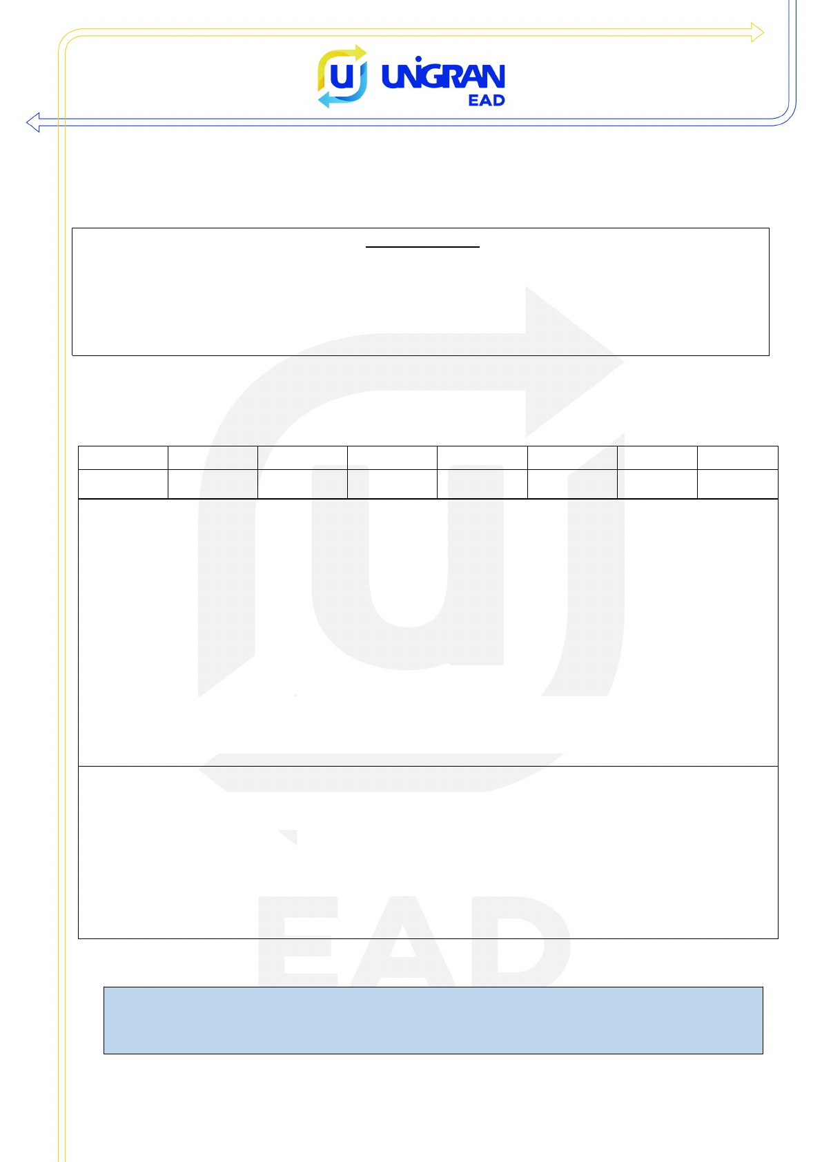 4/4 CENTRO UNIVERSITÁRIO DA GRANDE DOURADOS Disciplina: Administração Financeira e Orçamentária I ATIVIDADE AVALIATIVA ESPECIAL (AAE) 2 - referente as aulas 5 a 8 ORIENTAÇÕES A Unigran EAD adotou uma medida inédita e segura para facilitar seus estudos e avaliar a qualidade do ensino e aprendizagem de cada aluno. Estamos disponibilizando as atividades avaliativas especiais na plataforma online. Assim, em decorrências das restrições impostas pelo novo Corona Vírus (Covide-19), nossos alunos não precisarão deslocar-se momentaneamente até o polo de apoio presencial enquanto durarem as restrições. A aplicação das atividades avaliativas especiais em casa é uma medida exclusiva para esse momento. GABARITO - O ACADEMICO (A) DEVE APENAS INSERIR NA LACUNA A RESPOSTA DA RESPECTIVA QUESTÃO. Questão 03 Questão 04 Questão 05 Questão 06 Questão 07 Questão 08 Questão 09 Questão 10 A A A B B C C D Questão 01 A elaboração do planejamento empresarial propicia à empresa oportunizar ações e obter maior conhecimento do mercado. Desta forma, é possível encontrar no planejamento estratégico o espaço para desenvolvimento e constante aprimoramento de procedimentos e práticas gerenciais. Em um mercado competitivo, onde mudanças e inovações são constantes, as ações estratégicas são necessárias por parte dos empreendedores, a fim de manterem-se em evidência no mercado e para que possam ter certa vantagem competitiva sobre seus concorrentes. A estratégia deve ser percebida por todos os níveis da empresa como um ativo fixo precioso que, quando bem conduzido e medido, aumenta consideravelmente as chances de sucesso. Porém, deve ser conhecida, entendida e praticada por todos os colaboradores da empresa e não somente elaborada e engavetada pela alta administração da empresa. Sem planejamento, as empresas não sobrevivem no mercado, pois não possuem conhecimento quanto aos seus pontos fracos e ameaças, e assim não têm ações corretivas. Perante a concorrência, esses pontos vão se otimizando e levando a empresa ao fracasso. Questão 02 Taxa Interna de Retorno (TIR) é a taxa que deriva de um investimento, onde é fácil determinar se um investimento é rentável ou não, basta compará-la ao custo de capital. Quando a TIR de um investimento excede o custo capital, a empresa um retorno maior que o custo pago por ela para captar fundos. Quando a TIR de um investimento é menor que o custo de capital, isso significa que a taxa de retorno do investimento é menor que o custo de captação dos fundos, desta forma o investimento não deve ser realizado. LEMBRO QUE O GABARITO DEVERÁ SER PREENCHIDO OBRIGATORIAMENTE, CASO ESTA RECOMENDACAO NÃO SEJA ATENTIDA, A ATIVIDADE AVALIATIVA ESPECIAL SERÁ ‘’ZERADA’’. 1º) Explique a importância do planejamento empresarial para uma empresa. (Valor 1,0) A elaboração do planejamento empresarial propicia à empresa oportunizar ações e obter maior conhecimento do mercado. Desta forma, é possível encontrar no planejamento estratégico o espaço para desenvolvimento e constante aprimoramento de procedimentos e práticas gerenciais. Em um mercado competitivo, onde mudanças e inovações são constantes, as ações estratégicas são necessárias por parte dos empreendedores, a fim de manterem-se em evidência no mercado e para que possam ter certa vantagem competitiva sobre seus concorrentes. A estratégia deve ser percebida por todos os níveis da empresa como um ativo fixo precioso que, quando bem conduzido e medido, aumenta consideravelmente as chances de sucesso. Porém, deve ser conhecida, entendida e praticada por todos os colaboradores da empresa e não somente elaborada e engavetada pela alta administração da empresa. Sem planejamento, as empresas não sobrevivem no mercado, pois não possuem conhecimento quanto aos seus pontos fracos e ameaças, e assim não têm ações corretivas. Perante a concorrência, esses pontos vão se otimizando e levando a empresa ao fracasso. 2º) Descreva o conceito e a aplicação da TIR. (Valor 1,0) Taxa Interna de Retorno (TIR) é a taxa que deriva de um investimento, onde é fácil determinar se um investimento é rentável ou não, basta compará-la ao custo de capital. Quando a TIR de um investimento excede o custo capital, a empresa um retorno maior que o custo pago por ela para captar fundos. Quando a TIR de um investimento é menor que o custo de capital, isso significa que a taxa de retorno do investimento é menor que o custo de captação dos fundos, desta forma o investimento não deve ser realizado. 3º) Complete a frase a seguir: “A ______ é o indicador de rentabilidade do projeto, e deve ser comparada com a taxa mínima de atratividade do investidor. (Valor 1,0) a)TIR. X b)VAL. c)FDV. d)CCL. 4º) Assinale a alternativa incorreta em relação as funções administrativas do planejamento e controle. (Valor 1,0) a)planejar é executar a curto prazo. X b)dirigir é exercer a autoridade. c)controlar á avaliar os resultados das atividades. d) planejar é escolher uma entre várias alternativas. 5º) Complete a frase a seguir: “O ___________________constitui um processo sistemático e contínuo de tomada de decisões no presente com vistas à consecução de objetivos específicos no futuro”. . (Valor 1,0) a)planejamento empresarial. X b)planejamento tático. c)patrimônio líquido. d)patrimônio. 6º) Assinale a alternativa incorreta em relação aos tipos de planejamentos. (Valor 1,0) a)estratégico. b)financeiro. X c)operacional. d)tático. 7º) Complete a frase a seguir: “A alta administração deve definir objetivos, metas e diretrizes, porém os planos precisam ser elaborados de “_____________” a fim de motivar aqueles que devem executar os planos e cumprir metas e programas de sua área. (Valor 1,0) a)cima para baixo b)baixo para cima.X c)centralizada. d)alta patente. 8º) Em relação as atitudes no desenvolvimento do orçamento, assinale a alternat