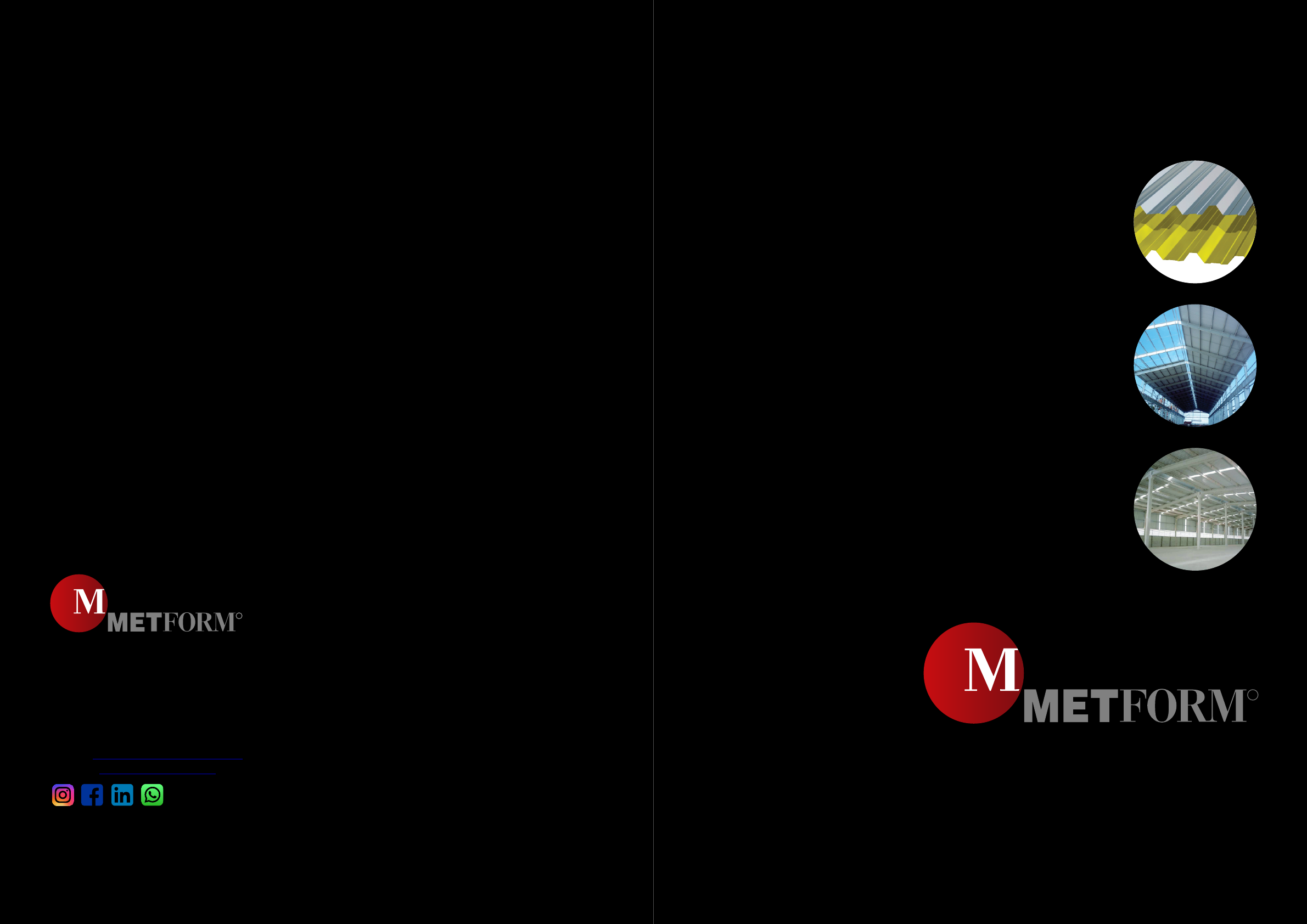 R ECONOMIA, QUALIDADE E DURABILIDADE T E L H A S D E A Ç O R Website: www.metform.com.br Tel.: +55 (31) 3555-5411 E-mail: comercial@metform.com.br Betim-MG Rua Engenheiro Gerhard Ett, n° 1100 CEP: 32669-110 Distrito Industrial Paulo Camilo Cel.: +55 (31) 99236-1520 EDIÇÃO 2019 https://www.facebook.com/ti.metform.7 https://www.instagram.com/metform_s.a/ https://api.whatsapp.com/send?phone=5531992361520 https://www.linkedin.com/company/metform-sa/ com as normas: propriedades de proteção. Em todos os casos podem seção ondulada - Requisitos; Quando o assunto é Telhas de Aço, o nome é METFORM. Pré-pintadas ou não, as Telhas METFORM oferecem ao mesmo tempo três grandes vantagens: economia, durabilidade e qualidade. Contando com os mais modernos equipamentos para perfilação e um variado estoque de bobinas procedentes das melhores siderúrgicas, a METFORM está capacitada a atender todo o mercado com rapidez e padrão internacional de qualidade. Utilizando como matéria-prima aços revestidos com zinco (Zincado) ou revestidos com uma liga de alumínio e zinco (Galvalume), as Telhas METFORM são perfiladas diretamente das bobinas, garantindo um perfeito paralelismo. ser fornecidas com Isolamento Termoacústico. ótimas soluções estéticas e garantindo excelentes - NBR 14514:2008 - Telhas de aço revestido de ser utilizadas sem Pintura ou Pré-Pintadas, obtendo assim Fornecidas em qualquer comprimento até 12 metros, podem Os Telhas METFORM estão em conformidade com seção trapezoidal - Requisitos. - NBR 14513:2008 - Telhas de aço revestido de Telhas Usiminas Serra - ES Patrus Transportes Urgentes Contagem - MG Arizona Atacadista Contagem - MG Leroy Merlin Niterói - RJ Eldorado Automóveis Contagem - MG R R GB Armazéns Rio de Janeiro - RJ T E L H A MF 18 T E L H A MF 40 T E L H A MF 25 T E L H A MF 100 As tabelas indicam as sobrecargas líquidas uniformemente distribuídas (já descontando o peso próprio) que podem ser aplicadas nas Telhas MF 18, MF 25, MF 40 e MF 100, em função do vão e do número de apoios existentes. Estas tabelas foram elaboradas de acordo com as prescrições da NBR 14762:2010 - Dimensionamento de estruturas de aço constituídas por perfis formados a frio. Foram estipuladas duas limitações para a flecha máxima admissível: Ÿ L/180 para Telhas com inclinações inferiores a 15%. Em todas as tabelas, o limite de resistência das Telhas está apresentado em cores, informando o estado limite responsável pelo dimensionamento das peças. O valor da sobrecarga admissível será sempre o menor entre o limite de resistência apresentado e a carga correspondente à flecha admissível (L/120 ou L/180). A largura mínima de apoio é de 50mm para Telhas MF 18, MF 25, MF 40 e de 75mm para as Telhas MF 100. Ÿ L/120 para Telhas com inclinação maiores ou iguais a 15%; Suponha que seja necessário projetar, com Telhas MF 40, uma cobertura de galpão com 5% de inclinação e espaçamento entre terças igual a 2.500mm. Após a análise da influência do vento nas Telhas, chegou-se a uma carga máxima a ser aplicada na superfície das mesmas igual a 75kgf/m². Nesta análise deve ser considerada a velocidade característica do vento e a influência dos coeficientes de pressão internos e/ou externos (utilizando-se, por exemplo a norma NBR 6123:1988 - Forças Devido ao Vento em Edificações). Observando-se a tabela da Telha MF40, percebe-se que para uma distância entre apoios de 2.500mm, a espessura de 0,50mm poderá ser utilizada. Isto desde que as peças tenham pelo menos 3 apoios. A resistência desta Telha (definida como o menor valor entre limite de resistência e a carga de flecha L/180 é igual a 82kgf/m², sendo portanto superior à carga aplicada, que é igual a 75kgf/m². Tabela de sobrecargas máximas Exemplo de utilização da tabela Momento fletor positivo (pressão) Estado limite predominante no Limite de Resistência Interação momento fletor negativo/cortante (pressão) Enrugamento da alma (pressão) Momento fletor positivo (pressão) Estado limite predominante no Limite de Resistência Interação momento fletor negativo/cortante (pressão) Enrugamento da alma (pressão) Momento fletor positivo (pressão) Estado limite predominante no Limite de Resistência Interação momento fletor negativo/cortante (pressão) Enrugamento da alma (pressão) Momento fletor positivo (pressão) Estado limite predominante no Limite de Resistência Interação momento fletor negativo/cortante (pressão) Enrugamento da alma (pressão) Produto sob consulta Galvalume Zincada Galvalume Zincada Galvalume Zincada Galvalume Zincada Galvalume Zincada Galvalume Zincada kg/m 4,01 4,13 4,68 4,80 6,12 6,24 7,56 7,68 9,00 9,12 11,88 12,00 kg/m² 4,09 4,21 4,78 4,90 6,24 6,37 7,71 7,84 9,18 9,31 12,12 12,24 Pesos 0,43 0,50 0,65 0,80 Espessura das chapas (mm) 0,95 1,25 Galvalume Zincada Galvalume Zincada Galvalume Zincada Galvalume Zincada Galvalume Zincada Galvalume Zincada kg/m 4,01 4,13 4,68 4,80 6,12 6,24 7,56 7,68 9,00 9,12 11,88 12,00 kg/m² 3,91 4,03 4,56 4,68 5,96 6,08 7,37 7,49 8,77 8,89 11,58 11,70 1,25 Espessura das chapas (mm) Pesos 0,50 0,65 0,80 0,950,43 Galvalume Zincada Galvalume Zincada Galvalume Zincada Galvalume Zincada Galvalume Zincada kg/m 3,90 4,00 5,10 5,20 6,30 6,40 7,50 7,60 9,90 10,00 kg/m² 5,20 5,33 6,80 6,93 8,40 8,53 10,00 10,13 13,20 13,33 Pesos Espessura das chapas (mm) 0,50 0,65 0,80 0,95 1,25 1070 1026 171 = = = = 171 110 61 25 23 21 25 2 3 4 2 3 4 2 3 4 2 3 4 2 3 4 2 3 4 L/120 402 968 761 487 1171 920 648 1559 1226 808 1942 1527 967 2325 1828 1286 3092 2431 L/180 269 645 508 325 780 614 432 1039 817 539 1295 1018 645 1550 1219 858 2061 1621 160 134 153 200 173 198 273 270 307 340 398 454 407 480 598 541 638 795 L/120 253 610 479 307 737 580 408 982 772 509 1223 962 609 1464 1151 810 1947 1531 L/180 169 406 320 205 491 387 272 654 515 339 815 641 406 976 768 540 1298 1021 117 115 131 146 148 169 199 230 263 248 294 367 297 352 440 395 468 585