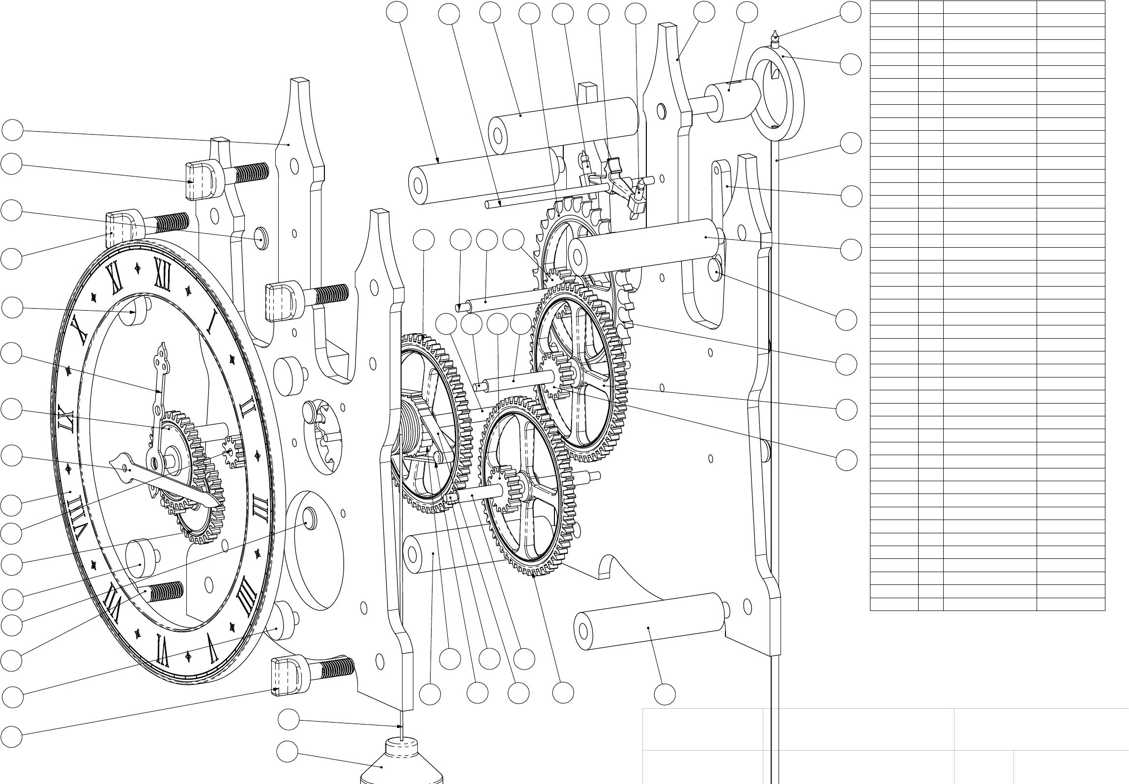 48 46 6 13 13 6 12 42 43 31 32 39 6 13 13 2 12 35 48 34 4848 14 222129 2530 29 222128 40 40 2221 29 20 20 18 16 17 1 4 15 8 7 9 12 48 23 26 ITEM NO. QTY. PART NO. DESCRIPTION 1 1 back 2 1 front 4 1 Pendulum hanger 6 4 Dial spacer 7 1 Pendulum head 8 1 Pendulum pivot 9 1 Pendulum rod 10 1 Pendulum bob 11 1 Pendulum nut 12 7 Shaft cover 13 5 Screw 14 1 Shaft151 15 1 yoke 16 1 escape 17 1 Pallet2 18 1 Pallet1 19 1 Yoke spacer 20 1 Timing 21 3 Shaft140 22 3 Sleeve119 23 1 16teeth 24 1 Shaft175 25 2 Pawl 26 1 Sleeve70 27 1 drum 28 1 Ratchet 29 3 60teeth 30 2 Pawl pin 31 1 32teeth 32 1 10teeth 33 1 sleeve18 34 1 rope 35 1 Weight 36 1 16teeth_DP6 37 1 shaft30 38 1 8teeth 39 1 30teeth 40 2 15teeth 41 1 Key shaft 42 1 Minute hand 43 1 Hour hand 44 1 12teeth_DP6 45 1 Winder support 46 1 DiaL2 47 8 ropering 48 5 Spacer SHT 1 OF 9 SHTS NTS LAW WOODEN CLOCK 5 ALL DIMENSIONS IN MM 3rd ANGLE PROJECTION UNTOLERANCED DIMS +/- 0.5 FEB 2002 Designed by: BRLAW www.woodenclocks.co.uk General Assembly 1 Back plate removed for clarity 31 38 39 1917 18 15 12 36 4445 35 10 9 11 SHT 2 OF 9 SHTS NTS LAW WOODEN CLOCK 5 ALL DIMENSIONS IN MM 3rd ANGLE PROJECTION UNTOLERANCED DIMS +/- 0.5 FEB 2002 Designed by: BRLAW www.woodenclocks.co.uk General Assembly 2 C-C (1 : 1.5) 27 SHT 3 OF 9 SHTS NTS LAW WOODEN CLOCK 5 ALL DIMENSIONS IN MM 3rd ANGLE PROJECTION UNTOLERANCED DIMS +/- 0.5 FEB 2002 Designed by: BRLAW www.woodenclocks.co.uk General Assembly 3 32 .4 4 18 0 90 81 89. 43 86.60 55 12 .70 6.3 5 6.3 5 6.35 6.35 6.35 12.7 0 R 20 70 340 270 252 15 6 12. 70 60 60 76.81 76.32 Front plate 1-off1 Back plate 1-off 95 40 89. 43 46 .6 0 90 81 55 76.32 86.60 15 6 93 .2 8 270 32 .4 4 R20 252 60 10 9. 60 219.20 39 8 47 6 59.20 23.12 76.81 30.38 123.79 123.79 2 SHT 4 OF 9 SHTS 1:2 LAW WOODEN CLOCK 5 ALL DIMENSIONS IN MM 3rd ANGLE PROJECTION UNTOLERANCED DIMS +/- 0.5 FEB 2002 Designed by: BRLAW www.woodenclocks.co.uk Frames 30 A A 120 A-A 30 0 1/2" thread 30 C C 10 C-C D D 3 18 D-D 10 30 5575 E E 10 6 E-E 40° 6 30Pendulum pivot 1-off 12 0 59 30 6.50 R 370Pendulum bob 1-off10 28 20 F F 20 F-F M6 x 50 deep 1076 6 Minute Hand 1-off Pendulum rod 1-off 30 G G 120 10 12 .7 0 50 G-G 42 Hour hand 1-off43 1248 35 H H 90° 2 H-H Thread M6 35 4 266 Dial 1-off46 9 48 Spacer 4-off 6 Dial spacer 4-off 13 Screw 5-off 11 Pendulum nut 1-off 12 Shaft cover 7-off 48 Spacer 1-off 4 Pendulum hanger 1-off 7 Pendulum head 1-off SHT 5 OF 9 SHTS NTS LAW WOODEN CLOCK 5 ALL DIMENSIONS IN MM 3rd ANGLE PROJECTION UNTOLERANCED DIMS +/- 0.5 FEB 2002 Designed by: BRLAW www.woodenclocks.co.uk Frame details 13 19.50 10 6. 10 13 18 37 10 6.10 6 31 Gear 32 teeth 1-off 32 Gear 10 teeth 1-off 38 Gear 8 teeth 1-off 40 Gear 15 teeth 1-off40 Gear 15 teeth 1-off23 Gear 16 teeth 1-off 33 Sleeve 28 1-off 37 Shaft 37 1-off 39 Gear 30 teeth 1-off 28 Ratchet 1-off27 Drum 1-off 36 Gear 16 teeth DP61-off 44 Gear 12 teeth 1-off 20 Timing wheel 1-off SHT 6 OF 9 SHTS NTS LAW WOODEN CLOCK 5 ALL DIMENSIONS IN MM 3rd ANGLE PROJECTION UNTOLERANCED DIMS +/- 0.5 FEB 2002 Designed by: BRLAW www.woodenclocks.co.uk Gears 1 10 10 I I 6 6 6 106 6. 10 R5 44.27° 36.96 51.44 10 6 10 20.25 I-I 25 Pawl 2-off 30 Pawl pin 2-off 29 Gear 60 teeth 3-off SHT 7 OF 9 SHTS NTS LAW WOODEN CLOCK 5 ALL DIMENSIONS IN MM 3rd ANGLE PROJECTION UNTOLERANCED DIMS +/- 0.5 FEB 2002 Designed by: BRLAW www.woodenclocks.co.uk Gears 2 23.80°20.83° 39.50 39.60 Yoke spacer 1-off19 R5 6 74 .3 0 R7.50 20 10 8.61 40 12 .7 0 R16.35 32 9. 50 9.50 12 .7 0 151 140 119.50 175 6 10 6.10 6 7010 6.10 6 10 6 10 26 Sleeve 70 1-off 16 Escape 1-off 17 Pallet 2 1-off 18 Pallet 1 1-off 15 Yoke1-off 22 Sleeve 119 3-off 21 Shaft 140 3-off 14 Shaft 151 1-off 24 Shaft 185 1-off41 Key shaft 1-off 45 Winder support 1-off SHT 8 OF 9 SHTS NTS LAW WOODEN CLOCK 5 ALL DIMENSIONS IN MM 3rd ANGLE PROJECTION UNTOLERANCED DIMS +/- 0.5 FEB 2002 Designed by: BRLAW www.woodenclocks.co.uk Details SHT 9 OF 9 SHTS NTS LAW WOODEN CLOCK 5 ALL DIMENSIONS IN MM 3rd ANGLE PROJECTION UNTOLERANCED DIMS +/- 0.5 FEB 2002 Designed by: BRLAW www.woodenclocks.co.uk Instructions Woodenclock Clock 5 Notes ? ? Use close-grained timber such as Beech planed down to a thickness of 1 10 mm for all components unless otherwise stated. ? ? All shafts for spindles should be made from 6 mm diameter bar. ? ? Any suitable material can be used for the weight. The mass of the weight will need to be established by experiment, but a good starting point would be 6 lbs. ? ? Details of the dial numerals are shown for guidance only, the actual form of the numerals is left to your own discretion.. They can be applied by painting or as relief numerals cut from thin sheet. ? ? The hands are again given for guidance only, although in this instance they are drawn to size so that you can copy these if you wish. They should in any event be cut from thin sheet. ? ? Where the components are drawn to 1:1 scale you can attach the drawing to the timber using a low tack adhesive, and cut around the profiles. Great care should be taken with this approach when cutting the gear teeth because they need to be cut very accurately to avoid problems when assembling the clock. ? ? The frame is held together using 5 threaded screws into spacers (3)glued into the back plate. Alternatively pins fitted into holes cross drilled after assembly can be used. ? ? Care should be taken to adjust the pallets (17 & 18) relative to the timing wheel. They should operate to allow the timing wheel to move incrementally forward when swinging through a small arc of movement of the pendulum. (<10°). ? ? The pitch of the gears is controlled by the drilling of the hole centres in the front and back frames. It may help to delay the drilling of these holes in the frames until after the gears are first cut and then linished to size. At this point it would help to mount them on two separate pieces of wood and test there free movement one to the other and measure the centre distance between them, so that the hole centres can be drilled at