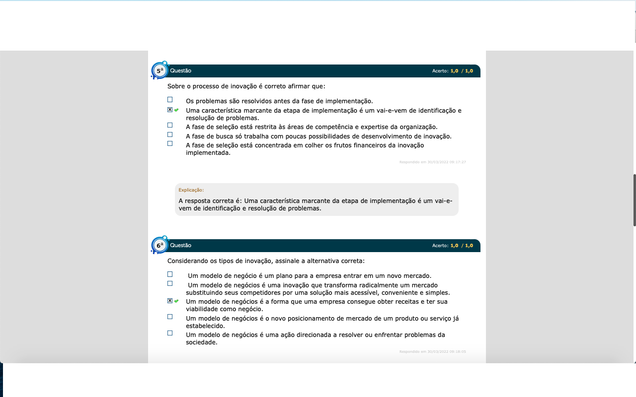 Sobre o processo de inovação é correto afirmar que: Os problemas são resolvidos antes da fase de implementação. Uma característica marcante da etapa de implementação é um vai-evem de identificação e resolução de problemas. A fase de busca só trabalha com poucas possibilidades de desenvolvimento de inovação A fase de seleção está concentrada em colher os frutos financeiros da inovação implementada. A fase de seleção está restrita às áreas de competência e expertise da organização.