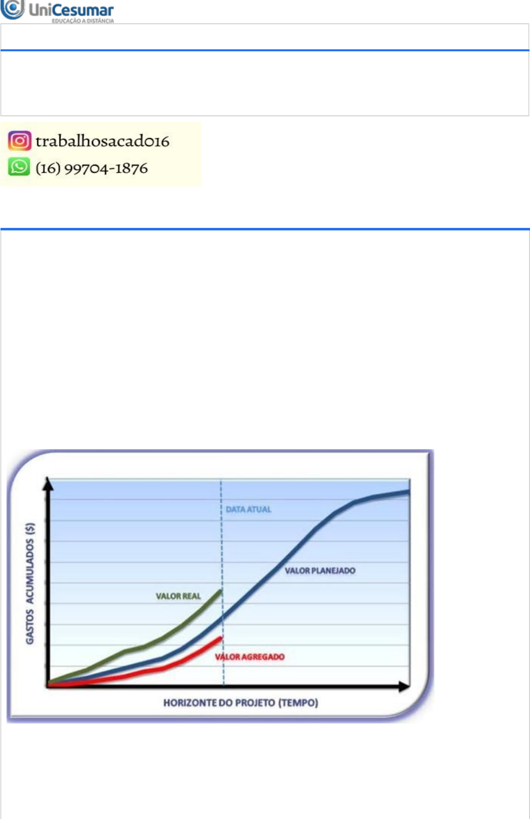 Unicesumar - Ensino a Distância 1/2 1ª QUESTÃO A Gestão de Valor Agregado (GVA) é considerada um dos melhores métodos para analisar a evolução dos custos e prazos de um projeto devido à sua eficiência. Esse método foi elaborado com o objetivo de criar um padrão para medir o desempenho de um projeto, evoluiu e se estendeu para o mercado em geral. Em síntese, podemos dizer que a GVA é uma abordagem estruturada que integra o escopo, o cronograma e os recursos, para então medir o desempenho e o progresso do que foi planejado. A GVA desenvolve e monitora três dimensões-chave de cada pacote de trabalho: Valor planejado (VP): aquele orçamento autorizado para realização do trabalho. Valor agregado (VA): é o orçamento associado ao trabalho autorizado que foi concluído. Custo real (CR): custo realizado incorrido no trabalho executado de uma atividade, durante um período específico. Na análise do valor agregado, três parâmetros - valor planejado, valor agregado e custo real – podem ser monitorados e relatados tanto de período a período (tipicamente por semana ou mês) como de maneira cumulativa. Com as três dimensões-chave da GVA, também podemos calcular dois importantes índices: IDP (Índice de Desempenho de Prazo) e IDC (Índice de Desempenho de Custos). O IDP é uma medida de eficiência do cronograma expressa como a relação ao valor agregado com o valor planejado (IDP = VA / VP). Um valor de IDP acima de 1 indica que o projeto está adiantado, igual a 1 indica Período:28/03/2022 08:00 a 15/04/2022 23:59 (Horário de Brasília) Status:ABERTO Nota máxima:1,50 Gabarito:Gabarito não está liberado! Nota obtida: ATIVIDADE 3 - INTRODUÇÃO À ENGENHARIA - 51/2022 Unicesumar - Ensino a Distância 2/2 que está no prazo e abaixo de 1 que está atrasado. Já o índice IDC é uma medida da eficiência dos recursos orçados, expressa como a relação do valor agregado para o custo real (IDC = VA / CR). Um valor de IDC acima de 1 indica que está abaixo do custo esperado, igual a 1 com o custo planejado e menor do que 1 temos o projeto está com o custo acima do esperado. Unicesumar - Ensino a Distância 3/2 ALTERNATIVAS Questão Problema – Você está gerindo o projeto de construção de uma casa e para a etapa de levantar as paredes está sendo utilizada a ferramenta Gestão de Valor Agregado. A casa contém 15 paredes, sendo programada a construção de 3 paredes por dia por sua equipe. Para estimar o custo da construção de cada parede, realizou-se um levantamento de informações, obtendo as seguintes três estimativas de custos: Mais provável: R$ 140,00; Otimista: R$ 100,00; Pessimista: R$ 150,00. Ao final do terceiro dia, você obteve a informação de que foram erguidas 7 paredes com um gasto de R$ 1.200,00 até o momento. Assim, descreva a situação do projeto calculando os índices de desempenho de prazo (IDP) e de custo (IDC).