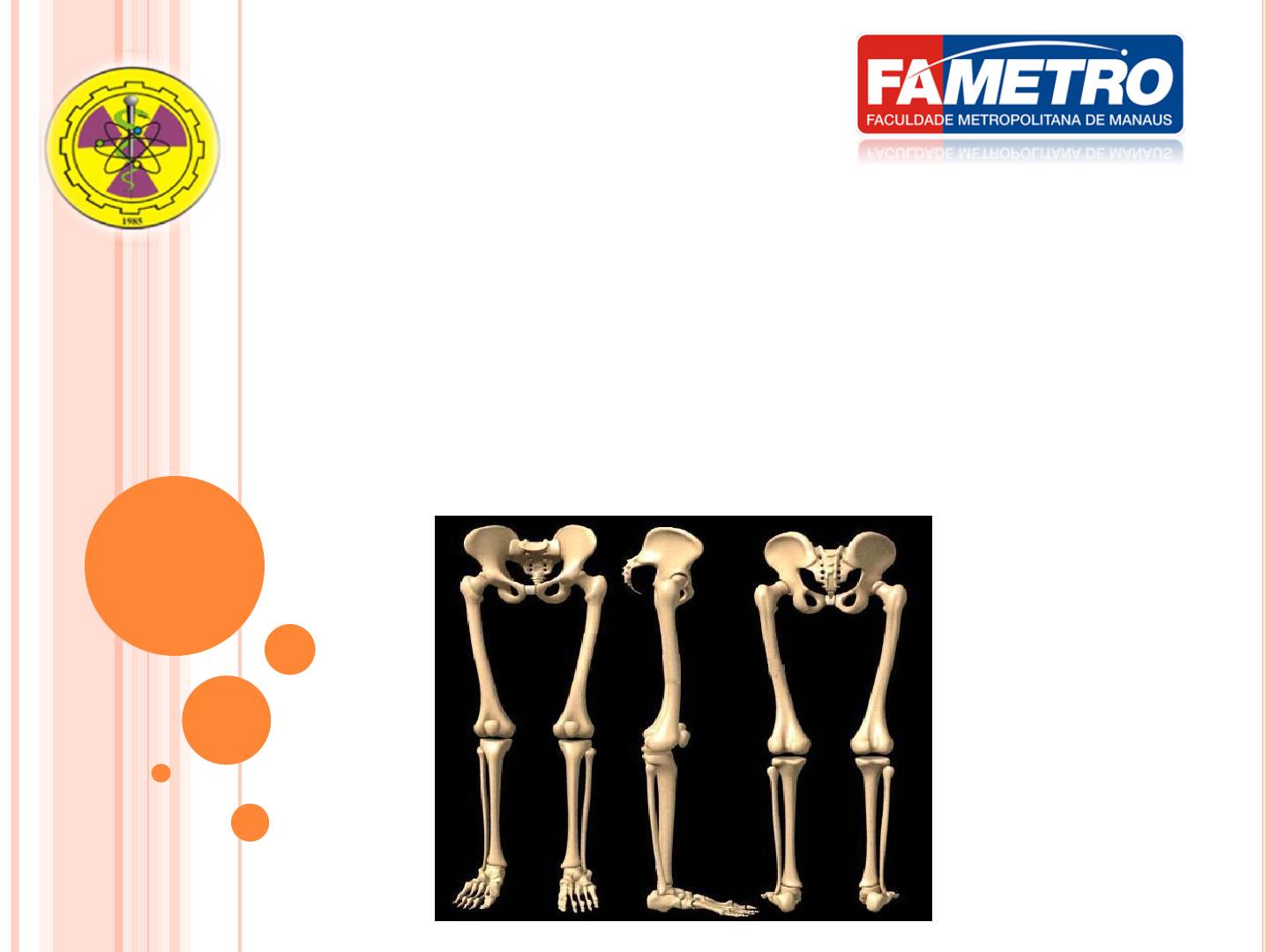 BASES TÉCNICAS DOS MEMBROS INFERIORES MEMBROS INFERIORESSUBDIVIDE-SE EM 4 GRUPOS 1º PÉ 2º PERNA 3º FÊMUR 4º QUADRIL ANATOMIA Membro Inferior Os membros inferiores são divididos em quatro grupos principais: (1) pé, (2) perna, (3) fêmur (4) quadril. As articulações do joelho e do tornozelo também foram incluídas neste estudo. PRINCIPAIS ARTICULAÇÕES FALANGIANAS JOELHO TORNOZELO COXOFEMURAL ORIENTAÇÕES IMPORTANTES INFERIOR E SENTIDO DISTAL = CÉFALO- PODÁLICO SENTIDO PROXIMAL = PODO-CEFÁLICO SENTIDO MÉDIO LATERAL INFERIOR E SENTIDO LATERO-MEDIAL MOVIMENTAÇÃO ANTERIOR POSTERIOR ROTAÇÃO LATERAL NEUTRO ROTAÇÃO MEDIAL ANATOMIA DO PÉ FUNCIONALIDADE DO PÉ O pé possui funções importantes como suportar o peso e servir como alavanca para impulsionar o corpo. A construção do pé com vários ossos e articulações, permite a adaptação do pé aos tipos de superfícies, além de aumentar sua ação propulsora. DIVISÃO CLÍNICA DO ESQUELETO DO PÉ Clinicamente o pé é dividido em três porções: retropé, mediopé e antepé: O antepé: constituído pelos metatarsos e falanges. A articulação entre o mediopé e antepé, articulação tarsometatarsal. O mediopé: formado pelos ossos navicular, cubóide e cuneiformes medial, intermédio e lateral. A principal articulação é entre os ossos navicular (do mediopé) com o tálus e calcâneo (retropé), denominada de articulação taluscalcâneonavicular (local onde tem grande mobilidade para os movimentos de inversão e eversão do pé). O retropé: formado pelos ossos tálus e calcâneo. A articulação entre o tálus e calcâneo é denominada de articulação subtalar. PÉ Os ossos do pé são muito semelhantes aos ossos da mão e do punho. Os 26 ossos de um dos pés são divididos em três grupos: Falanges (artelhos/podáctilos) - 14 Metatarsos (região dorsal do pé) - 5 Tarsais - 7 Total = 26 FALANGES – ARTELHOS (DEDOS) Os os ossos mais distais do pé são as falanges, que formam os artelhos ou dedos do pé. Os cinco dedos de cada pé são numerados de um a cinco, começando do lado medial ou do 1.° artelho (grande artelho). Cada um dos segundo, terceiro, quarto e quinto dedos tem uma falange média, além de uma proximal e uma distal. Tendo em vista que o primeiro dedo tem duas falanges, e o segundo ao quinto dedos têm três, existem, portanto, 14 falanges em cada pé. METATARSOS Os cinco ossos da região dorsal do pé são os metatarsos. Estes são numerados juntamente com os dedos, começando pelo número um, na face medial, e terminando com o número cinco, na face lateral. Cada um dos metatarsos compreende três partes. A parte distal, redonda e pequena de cada metatarso é a cabeça. A porção mais delgada, longa e localizada centralmente é denominada corpo (diáfise). A extremidade proximal expandida de cada metatarso é a base. ARTICULAÇÕES DAS FALANGES (DEDOS) E METATARSOS Articulações dos Dedos A identificação das articulações dos dedos do pé é importante devido a fraturas que podem envolver a superfície articular. Cada articulação do pé tem seu nome derivado dos dois ossos localizados em cada lado daquela articulação. Entre as falanges proximal e distal do primeiro artelho está a articulação interfalangiana ou IF. ARTICULAÇÃO DOS METATARSOS Cada uma das articulações da cabeça dos metatarsos é uma articulação metatarso falangiana ou MF, e cada uma das articulações na base do metatarso é uma articulação tarsometatarsais. A base do terceiro metatarso ou da terceira articulação tarso metatársica é importante por ser ela o ponto de centralização do raio central (RC) para radiografias AP oblíquas do pé. OSSOS SESAMÓIDES Frequentemente, vários ossos pequenos separados, denominados ossos sesamóides, são encontrados nos pés e nas mãos. Esses ossos extras, que se encontram inseridos em certos tendões, muitas vezes estão presentes próximo a várias articulações. Nos membros inferiores, os ossos sesamóides tendem a ser maiores e radiograficamente mais significativos O maior osso sesamóide no corpo é a patela; Além disso, os ossos sesamóides ilustrados nas Figs. 6.3 e 6.4 estão quase sempre presentes na superfície plantar (ou posterior) da cabeça do primeiro metatarso, próximo à podem ser encontrados próximos a outras articulações do pé. MEDIAL LATERAL TARSAIS Os sete grandes ossos da porção proximal do pé recebem a denominação de ossos do tarso ou tar sais. Os nomes dos ossos tarsais podem ser lembrados com a ajuda de uma frase: Caçaremos Todos os Coiotes Nas 3 Campinas. (1) Caçaremos - Calcâneo (2) Todos - Tálus (3) Coiotes - Cubóide (4) Nas - Navicular (5-6-7) 3 Campinas - Primeiro, segundo e terceiro cuneiformes CALCÂNEO O maior e mais forte osso do pé é o calcâneo. Com freqüência, a porção posterior é denominada o osso do calcanhar. A parte mais póstero inferior do calcâneo contém um processo denominado tuberosidade. Certos tendões de grande tamanho encontram-se aderidos a esse processo áspero e estriado, no qual, em seus pontos mais amplos, podem se observar dois pequenos processos arredondados. O maior desses recebe o nome de processo lateral. O processo medial é menor e menos pronunciado. ARTICULAÇÕES O calcâneo articula-se com dois ossos: anteriormente, com o cubóide, e superiormente, com o tálus. A articulação superior com o tálus forma a importante articulação subtalar (talo calcânea). Três facetas articulares específicas aparecem nessa articulação com o tálus, através das quais o peso do corpo é transmitido ao chão na posição ortostática. A maior delas é a faceta articular posterior, e as outras, menores, são as facetas articulares anterior e média. TALUS O tálus é o segundo maior osso e está localizado entre a perna e o calcâneo. Por isso, o peso do corpo é transmitido por intermédio desse osso através das importantes articulações do tornozelo e talo calcâneo. Articulações 