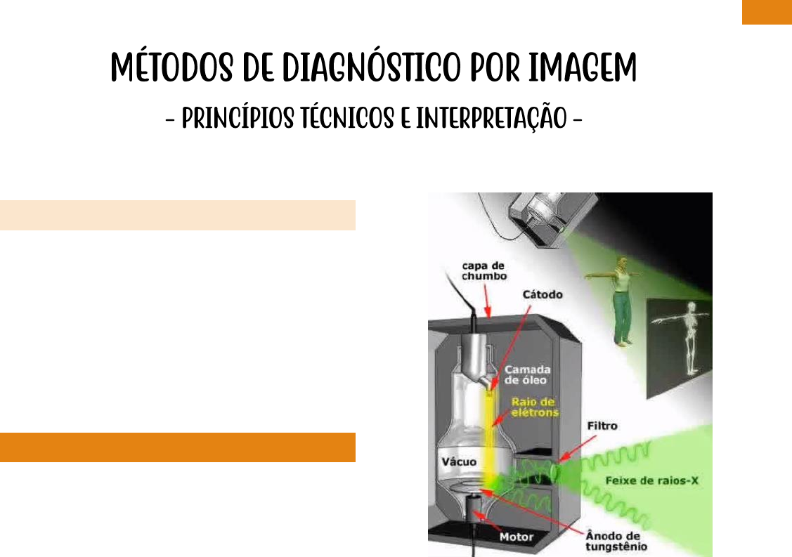 1 LUANNA HONÓRIO PROFESSOR CARLOS MELLO– RADIO (P6) - 01/02/2021 INTRODUÇÃO Descrevemos a seguir os princípios técnicos e a nomenclatura dos principais métodos de diagnóstico por imagem: - Radiologia geral - Tomografia computadorizada (TC) - Ultrassonografia (USG) - Ressonância Magnética (RM) RADIOLOGIA GERAL A radiologia geral tem como princípio básico os raios X, o qual é uma radiação ionizante, uma radiação eletromagnética capaz de ionizar a matéria em virtude de seu alto conteúdo de energia. Histórico: o raio X foi descoberto por um alemão chamado William Conrad Roetgen, em 1895 na Alemanha (cidade de Wrisburg). Ele ganhou o nobel de física em 1901. Como ocorre a produção do raio X: é realizada em um tubo de vácuo revestido por chumbo. No interior desse tubo, tem-se o cátodo (polo positivo) e ânodo (polo negativo) nesse tubo. OBS: é todo revestido por chumbo por que o raio X atravessa paredes, corpo etc. Porém o chumbo impede esse atravessamento do raio X. • Cátodo (-): filamento de tungstênio com uma corrente elétrica; • Ânodo (+): placa de cobre e tungstênio. O cátodo emite uma nuvem de elétrons que é atraído pelo ânodo. O choque desses elétrons vai causar a emissão/formação desse raio X onde este irá sair através da abertura onde se tem o filtro e emite o raio X, atravessando o paciente e sensibilizando os sais de prata, dando a imagem do esqueleto humano, uma radiografia. RADIOTRANSPARENTE X RADIOPACO: Radiotransparente: uma estrutura escura, preta (exemplo: pulmão, estrutura mais radiotransparente do corpo humano) Radiopaco: estrutura opaca (exemplo: osso) Densidades Radiográficas (visual): do mais preto para o mais branco tem-se: • Ar (+ preto) • Gordura (cinza escuro) • Partes Moles (ex: músculo, tendões etc. cinza claro) • Osso (+ branco) 2 LUANNA HONÓRIO Eixos: 1- Crânio-caudal 2- Transverso 3- Ântero-posterior OBS: uma desvantagem da radiologia geral com relação a outros métodos de diagnóstico, como a TC, RM e USG, é a sobreposição de estruturas. Sobreposição de imagens (duas incidências): Na imagem esquerda, mostra-se uma radiografia simples frontal do tórax evidenciando lesão radiopaca peri-hilar à direta. Seta aponta uma lesão expansiva do pulmão, lesão no pulmão direto e está no terço médio do tórax. Nessa imagem, não se consegue dizer se a lesão está anterior ou posterior. Para isso, precisa-se fazer a outra incidência ou um outro posicionamento para fazer o raio X. Na imagem a direta, é uma incidência em perfil onde pode-se verificar que a lesão se localiza posteriormente no tórax, o que não era possível avaliar apenas com a incidência frontal. Pulmão: radiotransparente Coluna vertebral e costelas: radiopacas Radiografia de um joelho de uma criança: 1. Ar (está totalmente preto) 2. Gordura do tecido celular subcutâneo 3. Partes moles 4. Osso TOMOGRAFIA COMPUTADORTIZADA (TC) Tem o mesmo princípio físico da radiografia geral que é o raio X. A grande vantagem da TC com relação à radiografia simples é permitir a realização de cortes axiais ou transversos do corpo humano, e com uma resolução de imagem muito superior. Densidade: • Hiperdenso (estrutura branca) – ex: osso • Hipodenso (estrutura escura) – ex: pulmão • Isodenso (estrutura com densidades semelhantes) 3 LUANNA HONÓRIO O estudo tomográfico computadorizado também permite a análise dos coeficientes de atenuação radiológica (densidades) das estruturas avaliadas. Essa mensuração é elaborada pelas chamadas Unidades Hounsfield (UH), que utiliza como parâmetros os valores absolutos da água, que equivales a 0 UH e a do ar, que possui valor de -1.000 UH. A partir desses, o aparelho consegue mensurar os valores das diversas densidades radiográficas dos demais tecidos avaliados. Unidades Hounsfield (UH): • Ar (-1000) • Gordura (-50 a -100) • Água (0) • Partes moles (40 a 90) • Osso (250 a 700) (150 a 500 – livro) O olho humano não tem capacidade de distinguir os diversos tons de cinzas da TC, é utilizada a técnica das janelas (windowing), em que são colocados parâmetros específicos para a visualização das estruturas a serem avaliadas. Por exemplo, em uma TC do crânio podemos utilizar uma janela com ênfase nas partes moles para avaliação do parênquima cerebral e uma janela óssea para a caracterização de eventuais lesões da calota craniana, como demonstra a imagem a seguir: Imagem na esquerda: janela óssea; Imagem na direta: janela para partes moles. OBS: observa-se a hiper densidade (branco) dos ossos da calota craniana. As janelas são parâmetros que visibilizam melhor determinadas estruturas. (tomografia do abdome, corte axial. Mostra o fígado, estômago, etc. – Janela de partes moles) ULTRASSONOGRAFIA A USG utiliza como princípio físico o som. É o método de diagnóstico que consiste da decodificação de ondas sonoras em imagens. O ouvido humano possui a capacidade de detectar uma frequência de ondas sonoras que variam entre 20 a 20.000 ciclos/segundo (Hertz). Inferior a isso chamamos de infrassom e acima disso de ultrassom. Os aparelhos de ultrassom, em geral, utilizam uma frequência variada, dependendo do tipo de transdutor. Quanto maior a frequência do transdutor (varia de 3,5 a 14Mhz), maior a sua definição e menor a sua profundidade de penetração. É operador dependente. Terminologias – se baseia na ecogenicidade dos tecidos avaliados: • Hipereóico/hiperecogênico (estrutura branca) • Hipoecóico/hipoecogênico (estrutura escura) • Isoecóico/isoecogênico • Sombra acústica (estrutura muito densa que impede a passagem do som, ex., cálculo renal. Forma uma imagem escura, alongada posteriormente) 4 LUANNA HONÓRIO • Reforço acústico (quando se avalia uma estrutura que permite uma passagem mais rápida do som que as vísceras sólidas (ex., lesões císticas), ocorre uma maior concentração de ondas sonoras posteriormente