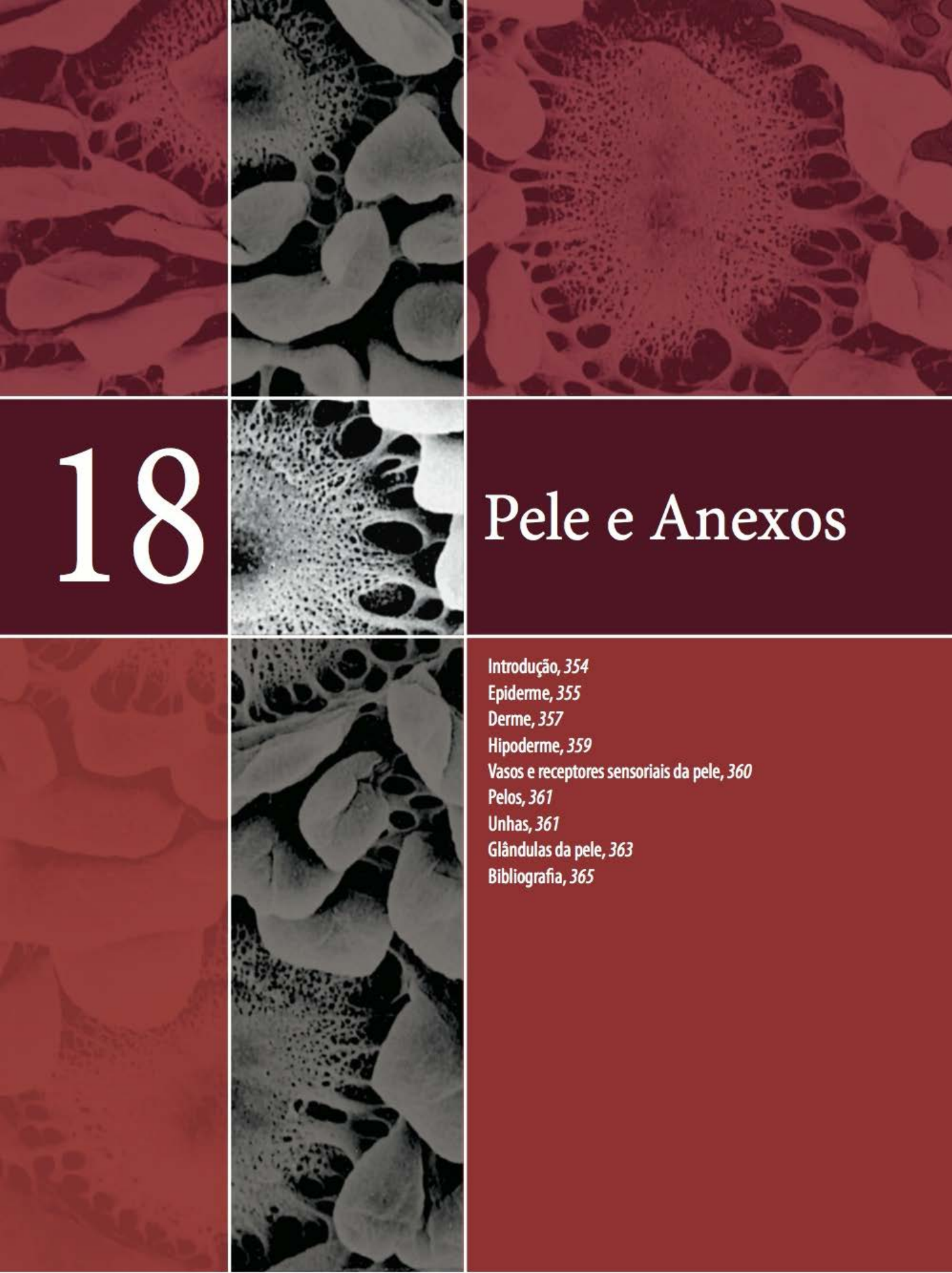 ... Introdução A pele recobre a superfície do corpo, sendo constituída por uma porção epitelial de origem ectodérmica, a epi- derme, e uma porção conjuntiva de origem mesodérmica, a derme. Dependendo da espessura da epiderme, distin- guem-se a pele fina e a espessa (Figuras 18.1 e 18.2). A pele espessa é encontrada na palma das mãos, na planta dos pés e em algumas articulações. O restante do corpo é prote- gido por pele fina. Abaíxo e em continuídade com a derme encontra-se a hipoderme ou tecido celular subcutâneo, que não faz parte da pele, apenas lhe serve de união com os órgãos subjacentes. A hipoderme é um tecido conjun- tivo frouxo que pode conter muitas células adiposas, cons- tituindo o paniculo adíposo. A pele é um dos maiores órgãos, alcançando 16% do peso corporal, e desempenha múltiplas funções. Graças à camada queratinizada da epiderme, protege o organismo contra desidratação e atrito. Por meio de suas terminações nervosas sensoriaís, recebe constantemente informações sobre o ambiente e as envia para o sistema nervoso central. Graças a seus vasos sanguíneos, glândulas e tecido adiposo, colabora com a termorregulação do corpo. Suas glândulas sudoríparas participam da termorregulação e da excreção de várias substâncias. Um pigmento que é produzido e acumulado na epiderme, a melanina, tem função prote- tora contra os raíos ultravioleta. Na pele se forma vitamina D3 pela ação da radiação ultravioleta do sol sobre precurso- res sintetizados no organismo. Apresenta ainda células do sistema imunitário, que atuam contra a invasão de micror- ganismos. A junção entre a epiderme e a derme é irregular. A derme tem projeções, as papilas dérmicas, que se encaixam em reen- trâncias da epiderme, as cristas epidérmicas, aumentando Histologia Básica Cama® côrnea Figura 18.1 Fotomiaografiade cortedepeleeS]lessa da planta de pé humano, na qual podem ser observadas as vá lias camadas da epiderme e a derme com as papilas dérmícas penetrando a epiderme. Observe os vasos sanguíneos(seras) nas papilas, importantes para a nutriçãodaesiJESS<J epiderme. (Coloração pelo pícro-siriushematoxilina. Médio aumento.) Figura 18.2 Fotomicrografia de corte de pele do abdome (pele fina). Em comparação com a Figura 18.1, a epiderme é menos espessa e as papilas dérmicas são mais curtas. (Hema- toxilina-eosina. Médio aumento.) 18 1 Pele e Anexos a coesão entre essas duas camadas. Pelos, unhas e glândulas sudoríparas, sebáceas e mamárias são estruturas anexas da pele. As glândulas mamárias serão descritas no Capítulo 22 . .... Epiderme É constituída por epitélio estratificado pavimentoso quera- tinizado. As células mais abundantes nesse epitélio são os que- ratinócitos. A epiderme apresenta ainda três tipos de células: os melanócitos, as células de Langerhans e as de Merlcel. A espessura e a estrutura da epiderme variam com o local estudado, sendo mais espessa e complexa na palma das mãos, na planta dos pés e em algumas articulações. Nessas regiões, a espessura chega até a 1,5 mm e apresenta, vista da derme para a superfície, cinco camadas (Figura 18.1) - basal, espinhosa, granulosa, lúcida e córnea - descritas a seguir. A camada basal é constituída por células prismáticas ou cuboides, basófilas, que repousam sobre a membrana basal que separa a epiderme da derme. A camada basal, rica em células-tronco (stem cells) da epiderme, é também chamada de germinativa. Apresenta intensa atividade mitótica, sendo responsável, junto com a camada seguínte (camada espi- nhosa), pela constante renovação da epiderme. Calcula-se que a epiderme humana se renove a cada 15 a 30 dias, dependendo principalmente do local e da idade da pessoa. As células da camada basal contêm filamentos intermediá- rios de queratina, que se tornam mais numerosos à medida que a célula avança para a superfície. A camada espinhosa (Figuras 18.1, 18.3 e 18.4) é for- mada por células cuboides ou ligeiramente achatadas, de Figura 18.4 Grande aumento das células da camada espinhosa da epiderme. Este corte foi processado para demonstrar a queratina porimunocítoquímica, mostrando os feixes de filamentos de queratina no citoplasma e seus prolongamentos. Figura 18.3 Camada espinhosa da pele espessa (planta do pé) que mostra os prolongamentos celulares em que se localizam desmossomos que unem fortemente as células dessa camada, para resistir à abrasão. (Pararrosanilina e azul de toluídill3. Médio aumento.) núcleo central, citoplasma com curtas expansões que con- têm feix:es de filamentos de queratina (tonofilamentos). Essas expansões citoplasmáticas se aproximam e se mantêm unidas com as das células adjacentes por meio de desmos- somos, o que confere a cada célula um aspecto espinhoso. Ao microscópio eletrônico verifica-se que os tonofilamen- tos terminam inserindo-se nos espessamentos citoplasmá- ticos (attachment plates) dos desmossomos (Figura 18.5). Os filamentos de queratina e os desmossomos têm impor- tante papel na manutenção da coesão entre as células da epiderme e na resistência ao atrito. Na camada espinhosa também existem células-tronco dos queratinócitos, e as B e Figura 18.5 Micrografia eletrônica da camada espinhosa de pele humana espessa. A. Célula da camada espinhosa, mosllando seu núcleo e o citoplasma com feixes de filamentos intenmediários e grânulos de melanina. De cada lado da célula são bem visíveis as pequenas expansõescitoplasmáticas que se tocam com as células adjacentes (setas). (14.000 x .) B. Observam-se as pequenas expansõescitoplasmátkas (indicadas pelas duassetas superiores) de duas células adjacentes, com os desmossomos e espaços intercelulares (indicadas pelas duas setas inferiores). (24.000X.) C. Observe vários desmossomos nos quai.s podem ser vistas claramente dua.s linhas negras, paralelas e grossas. Entre estas apare<em três linhas finas, tamb