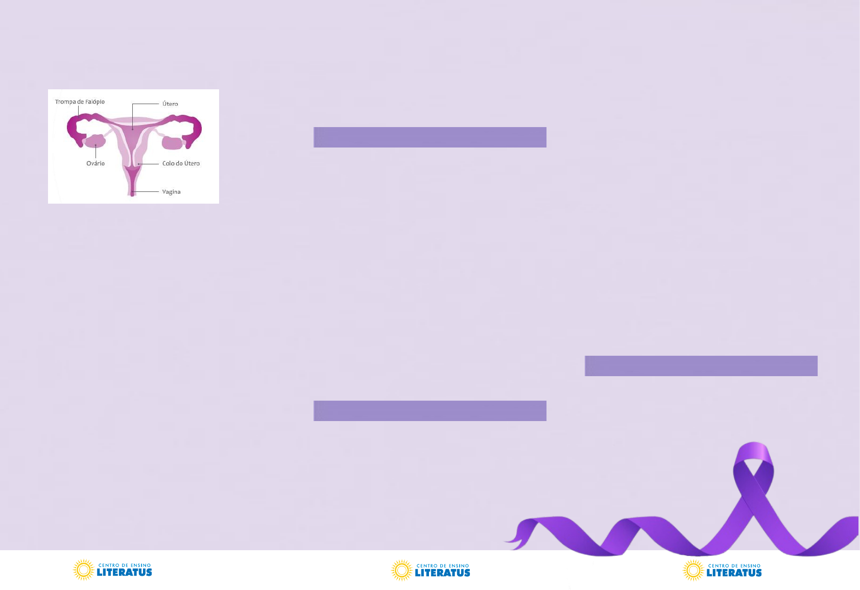 O QUE É O CÂNCER DE COLO DO ÚTERO? É um tumor que se desenvolve na parte inferior do útero, chamada “colo”, que fica no fundo da vagina. O QUE CAUSA A DOENÇA? A infecção pelo vírus HPV (Papiloma Vírus Humano), transmitido na relação sexual. A maioria das pessoas tem contato com este vírus ao longo da vida, mas quase sempre ele é eliminado naturalmente. Se não acontecer, após vários anos, pode provocar lesões que, se não tratadas, causam o câncer. QUAIS OS SINTOMAS? O câncer do colo do útero é uma doença de desenvolvimento lento, que pode não apresentar sintomas em fase inicial. Nos casos mais avançados, pode evoluir para sangramento vaginal intermitente (que vai e volta) ou após a relação sexual. Secreção vaginal anormal ou dor pélvica, também podem ser sintomas, se associados a queixas urinárias ou intestinais. Sangramento fora do período menstrual, dor e corrimentos. COMO POSSO PREVENIR? Por meio da vacinação contra o HPV (antes do início da vida sexual) e do exame preventivo (Papanicolau).IMPORTANTE O uso da camisinha contribui para reduzir a transmissão do HPV. Mas ela NÃO PROTEGE TOTALMENTE, pois o vírus passa no contato íntimo durante as relações, mesmo sem penetração ou entre pessoas do mesmo sexo. QUEM SE VACINA CONTRA O HPV? Meninas de 9 a 14 anos e meninos de 11 a 14 anos. A proteção é maior antes do início da vida sexual. O QUE É O EXAME PREVENTIVO? É o exame do colo do útero para identificar possíveis lesões causadas pelo HPV. É colhido material do colo e enviado para análise no laboratório.IMPORTANTE A vacina protege contra os principais tipos do vírus HPV causadores do câncer de colo do útero, mas não todos. Mesmo vacinada, é importante fazer o preventivo na idade recomendada. QUEM FAZ O PREVENTIVO? Mulheres de 25 a 64 anos que já tiveram atividade sexual. DE QUANTO EM QUANTO TEMPO O EXAME DEVE SER FEITO? Inicialmente, o exame deve ser feito anualmente. Após dois exames seguidos (com um intervalo de um ano) apresentando resultado normal, o preventivo pode passar a ser feito a cada três anos. POR QUE SÓ DEPOIS DOS 25? Até essa idade, o câncer do colo do útero é raro, e as lesões mais frequentes causadas pelo HPV são as que se curam sem tratamento. E APÓS OS 64 ANOS? Se fizeram exames de Papanicolau recentemente e os resultados foram normais, elas devem ser avaliadas por um profissional de saúde quanto à necessidade de continuar fazendo o preventivo.IMPORTANTE A avaliação ginecológica continuará sendo indispensável para avaliação de outras doenças. RECOMENDAÇÕES PARA O EXAME Que seja feito fora do período menstrual. O ideal é não ter tido relação sexual ou feito uso de duchas ou lubrificantes vaginais nas 24 horas anteriores do exame.