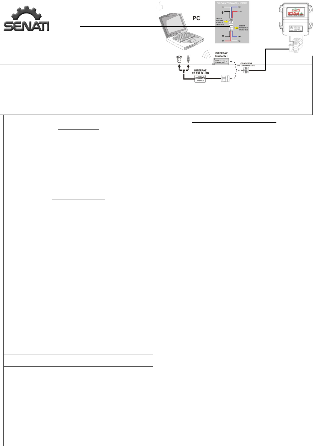 HOJA DE PRÁCTICA DE TALLER ESCUELA DE AUTOMOTORES OCUPACIÓN: Mecatrónica Automotriz APRENDIZ: TAREA: Diagnóstico sistema GLP Generación OPERACIÓN: Corregir orden de Emulación OBJETIVO: Al terminar la práctica el aprendiz podrá solucionar fallas de orden de emulación, usando el software, también podrá diagnosticar el orden de los inyectores de GLP en el software de calibración. INSTRUMENTOS , HERRAMIENTAS Y MATERIALES PROCESO DE EJECUCIÓN (OPERACIONES,PASOS,GRAFICAS, ESQUEMAS ,ETC) · Auto con equipo Generación GLP · Software de calibración GAS · Laptop · Interface de conexión PROCEDIMIENTO 1. Usar protectores de cuero para guardafangos. 2. Revisar niveles de motor. 3. Identificar puerto de conexión y conectar interface. 4. Chapa en ON 5. Ingresar al software de calibración en la laptop y encender Motor. 6. Pasar a GLP y verificar el funcionamiento de cada inyector de GLP desde el software. 7. Identificar el orden correcto de los inyectores analizando los parámetros del software. 8. Colocar en el orden correcto y hacer la calibración. PREGUNTAS DE EVALUACIÓN 1. ¿Qué ocurre con el motor cuando hago el hay un error en el orden de los inyectores? 2. Al aumentar la inyección de GLP, ¿Los tiempos de Inyección de gasolina aumentan o disminuyen? 3. ¿Qué es el CUT-OFF en los tiempos de inyección de Gasolina? PROCESO DE EJECUCIÓN (OPERACIONES , PASOS , GRAFICAS , ESQUEMAS , ETC ) CONCLUSIONES SHIA