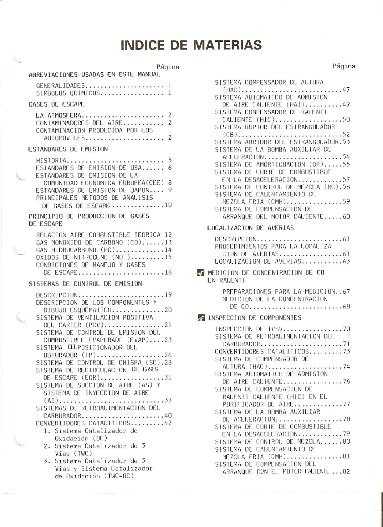 CARBURADOH •. .. •••.• ••••..•. ..... 71