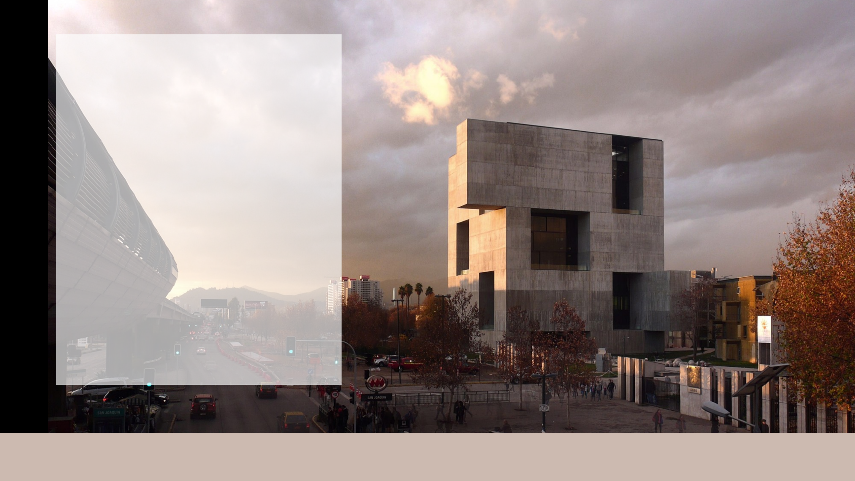 ARQUTETURA E URBANISMO Centro de inovação UC Alejandro Aravena José Vitor Teixeira Vitória Carolina Rossini Introdução ao projeto arquitetônico Mariana Fedumenti FSG Alejandro Aravena Nascido em Santiago do Chile Formou-se na Universidad Catolica de Chile em 1992 Fundador da Elemental Prêmio Pritzker em 2016 Socialmente engajado Habitações sociais "não achamos que somos artistas. Arquitetos gostam de construir coisas que são únicas. Mas se algo é único, ele não pode ser replicado, então, em termos de servir muitas pessoas em muitos lugares, o valor é próximo a zero." OBRA ENTORNO ENTORNO IMPLANTAÇÃO Legenda Edificação IMPLANTAÇÃO Implantação Esc. 1/1000 Legenda Edificação Campus UC Linha do metrô Estação de metrô UC Vias principais Vias secundárias Vias terceárias Acesso para pedestre Acessso para veículos IMPLANTAÇÃO IMPLANTAÇÃO TOPOGRAFIA Isometrica Fachada Sul Esc. 1/1000 Fachada Leste Esc. 1/1000 INSOLAÇÃO Planta baixo térreo Esc. 1/1000 INSOLAÇÃO Brise fachada oeste INSOLAÇÃO Iluminação zenital CLARABOIA IDEIA DO PROJETO ORGANIZAÇÃO ESPACIAL Público Café Praça Banheiro Auditório Cooworking 2Privativo Sala de reunião Laboratório Escritório PROGRAMA DE NECESSIDADES ZONEAMENTO Áreas de transição Legenda Solo Calçada/aberta Edificação Acessos Legenda Núcleo de circulação vertical Circulação horizontal Espaço público Fluxo Circualação horizontal ACESSOS Núcleo de circulção vertical Espaço público ZONEAMENTO Fluxograma/organograma Térreo Fluxograma/organograma Primeiro pavimento Circualação horizontal Núcleo de circulação vertical Espaço público Espaço privativo Espaço públicoLegenda Átrio central Núcleo de circulação vertical Circulação horizontal Espaço privativo Espaço público Fluxo ZONEAMENTO ZONEAMENTO Fluxograma/organograma Segundo e terceiro pavimento Núcleo de circulação vertical Espaço público Espaço público Legenda Átrio central Núcleo de circulação vertical Espaço público Fluxo ZONEAMENTO Fluxograma/organograma Quarto, quinto e sexto pavimento Núcleo de circulação vertical Espaço público Espaço público Espaço privativo Legenda Átrio central Núcleo de circulação vertical Espaço privativo Espaço público Fluxo ZONEAMENTO Fluxograma/organograma Sétimo, oitavo, nono e décimo pavimento Legenda Átrio central Núcleo de circulação vertical Espaço público Fluxo Núcleo de circulação vertical Espaço público Espaço público Legenda Acesso principal Acessos secundários ACESSOS COMPOSIÇÃO VOLUMÉTRICA Térreo COMPOSIÇÃO VOLUMÉTRICA Primeiro, segundo e terceiro pavimento COMPOSIÇÃO VOLUMÉTRICA Quarto, quinto e sexto pavimento Sétimo, oitavo, nono e décimo pavimento COMPOSIÇÃO VOLUMÉTRICA ESTRUTURA Interno ESTRUTURA Externo ESTRUTURA Interno x Externo FACHADA Legenda Adições Subtrações OBRIGADO PELA ATENÇÃO