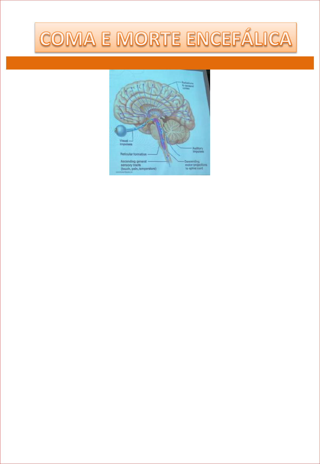 Fernanda Jorge Martins – 5º Período Anatomia da Consciência A anatomia da consciência passa pela presença dos dois hemisférios cerebrais (precisam estar adequadamente funcionantes para gerar a consciência) e o tronco encefálico; Então quando é que alguém compromete a consciência? Quando tem um comprometimento cerebral bi-hemisférico ou quando tem o comprometimento do tronco encefálico; Existem uma série de núcleos, substância cinzenta localizados no tronco encefálico, Locus Ceruleus, núcleo Magno da rafe e tálamo, uma série de núcleos que participam dessa ativação da consciência. Então, comprometimento do tronco encefálico gera rebaixamento de nível de consciência do ponto de vista topográfico; Onde é que pode dar uma lesão de um paciente rebaixado? OU é no tronco encefálico OU é nos dois hemisférios cerebrais. Rebaixou e está em coma? Significa lesão no tronco ou lesão cerebral bihemisférica. Essa é a lógica de raciocínio! Então esses núcleos participam do processo de sonolência e vigília a partir de estímulos externos como a melatonina é produzida pela pineal, que adequa esse sistema a luminosidade presente no ambiente. Esses núcleos participam integradamente da gestação de consciência de vigília e sonolência que são reversíveis ao longo das 24 horas; Substância ativadora reticular ascendente: Porque supostamente núcleos ficam em um tecido conhecido como substância reticular, eles ficam num grupo de neurônios específicos e eles ativam o córtex cerebral nos dois hemisférios. Então, para ter Fernanda Jorge Martins – 5º Período comprometimento da consciência, a gente tem o comprometimento do córtex cerebral bilateralmente ou do tronco encefálico, nesses núcleos aí localizados, distribuídos pelo tronco; Impulsos visuais, dolorosos, temperatura, de toque e auditivos, qualquer forma de energia é capaz de gerar uma resposta do sistema nervoso, ou seja, são captadas pelo sistema nervoso e geram a ativação deste córtex cerebral, gerando a consciência para os indivíduos; Estímulos diversos do meio externo acabam ativando a consciência e a partir do comprometimento da capacidade de perceber os estímulos externos que nós percebemos que há um problema de consciência. Então é a percepção e a captação das diversas formas de energia que participam da ativação desse tronco encefálico, dessa substância reticular ascendente, que ativa o córtex cerebral para que ele exerça suas funções conscientemente; Há algum grau de comprometimento da consciência quando os estímulos externos estão presentes e, de alguma maneira, não consegue ativar essa consciência; O papel do exame do paciente em coma ou rebaixamento de nível de consciência é entender qual é a circunstância ou a situação que compromete a adequada ativação deste nível de consciência a partir da chegada de estímulos externos; O sistema nervoso é um sistema de percepção do ambiente. Então ele deve estar na sua normalidade, responsivo aos diversos estímulos externos. Lembrar só que o estímulo doloroso é o grau máximo de estímulo externo: eu estou potencialmente provocando lesão tecidual e aquele córtex tem que estar prontamente capaz de responder a essa demanda que pode gerar a destruição do indivíduo. Então, tem que ser capaz de responder uma circunstância que gera potencialmente lesão tecidual (estímulo doloroso); Se você não responde a dor, realmente tem alguma situação de comprometimento grave dessa consciência. É importante saber o que está acontecendo do ponto de vista neurológico para que esta resposta não ocorra. Fernanda Jorge Martins – 5º Período Exame Físico Geral No ponto de vista prático, em qualquer circunstância e torpor ou obnubilação, nós seremos chamados para avaliar aquele indivíduo do ponto de vista de avaliação clínica e fundamentalmente teremos de entender a história; Se ele porventura ingeriu medicamentos em grau excessivo e aí rebaixou, é o indivíduo que já tem problema psiquiátrico prévio com muitas mensagens para o rebaixamento de nível de consciência; É um indivíduo que sofreu um TCE e realmente não está responsivo? É um indivíduo idoso que não conseguiu despertar adequadamente? Enfim entender a circunstância que levou aquela situação de rebaixamento de nível de consciência; É possível dentro desse contexto da abordagem geral, ainda não necessariamente neurológica, que o paciente não consiga proteger a sua via aérea, ou seja, o grau de rebaixamento é tamanho que uma circunstância básica de proteção de via aérea, ela não vai estar adequadamente relacionada. Isso vai ser visualizado a partir de uma queda de saturação, visualizado por parâmetro da abordagem inicial e devem-se proceder as situações de manutenção da vida, já que se supõe que o indivíduo está vivo naquele contexto. Em princípio, a função cardiorrespiratória, por mais que leve ou gravemente comprometida, ela está presente naquele indivíduo. O que é diferente do indivíduo que chega numa situação em que a função cardiorrespiratória já não está mais presente; O indivíduo que tem função cardiorrespiratória preservada, esta deve ser observada na abordagem inicial, a presença de comprometimento em alguma dessas funções vitais e a necessidade de uma abordagem rápida para manutenção dessa função, particularmente a Fernanda Jorge Martins – 5º Período função respiratória e a necessidade de intubação orotraqueal para aquele indivíduo que não tem a mínima condição de manter consciente e preservar minimamente a situação; Nessa abordagem inicial é justificada a questão ventilatória, a questão cardiovascular, a história dos indivíduos. E aí nós partimos para posteriormente avaliação neurológica desse indivíduo, depois de estabilizar essas questões vitais. Exame Neurológico É uma tentativa de estabelecer algum grau de ava