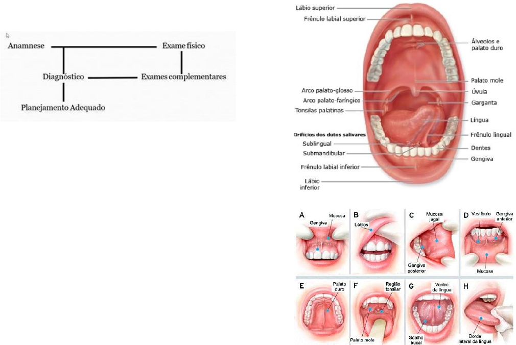 Clínica de Semiologia Aula 1 – Exame clínico e Ergonomia Introdução Anamnese • Identificação do paciente • Queixa principal • Histórico da doença atual • Histórico da doença pregressa • Histórico médico Exame físico • Extra-oral: avaliar presença de qualquer alteração de cor ou textura na pele e presença de linfonodos palpáveis. • Intra-oral: avaliar as mucosas, língua, palato e lábios. ** Borda da língua, deve-se pinçar com uma gaze e tracionar para um dos lados. Exame dental: realizar inspeção visual e táctil; com a sonda exploradora avaliar se há cavitações, tecido amolecido ou infiltrações nas restaurações presentes; quando houver presença de mancha branca, deve realizar a sondagem com as “costas” do explorador e sem pressão, pois pode indicar cárie ativa. ** A forma correta do diagnóstico é sempre com profilaxia e dente seco. Deve analisar a anatomia do dente. As superfícies oclusal (depende da posição do antagonista), contorno proximal e ponto de contato proximal também devem ser analisados. • Inspeção visual • Fio dental (o mesmo de despedaça com presença de cárie) • Sonda exploradora • Exames complementares (RX interproximal) Restaurações presentes • Infiltração marginal • Fraturas (visual e sonda exploradora) • Excessos marginais proximais • Contornos anatômicos Exames complementares – Radiografia • Panorâmica – visão geral da saúde buco maxilo facial • Rx periapical – relação do elemento em relação ao osso alveolar adjacente • Rx interproximal – Cárie interproximal, profundidade biológica da cavidade • Tomografia – fraturas radiculares. Ergonomia • Ergonomia é a ciência que estuda as leis naturais do trabalho humano, isto é, a interação do homem ao ambiente de trabalho e deste ao homem. Pode gerar dores nas costas, bursite, tenossinovites e estresse. Em odontologia, a ergonomia tem como objetivos racionalizar o trabalho, eliminar manobras não produtivas, produzir mais e melhor na unidade de tempo, proporcionar maior conforto e segurança ao paciente e profissional. Ergonomia no consultório • Racionalizar o trabalho, eliminar manobra não produtivas • Produzir mais e melhor • Proporcionar maior conforto e segurança ao paciente • Obter meios e sistemas para diminuir o estresse físico e cognitivo • Prevenir as doenças relacionadas à prática profissional. Ambiente físico de trabalho • Ambiente deve proporcionar bem estar aos profissionais e pacientes • Iluminação e climatização são fenômenos básicos para um aumento da qualidade do ambiente Tamanho do consultório • Deve ser no mínimo 9m² (3 x 3) Materiais e equipamentos • Itens essenciais na execução do trabalho e na segurança do profissional e pacientes