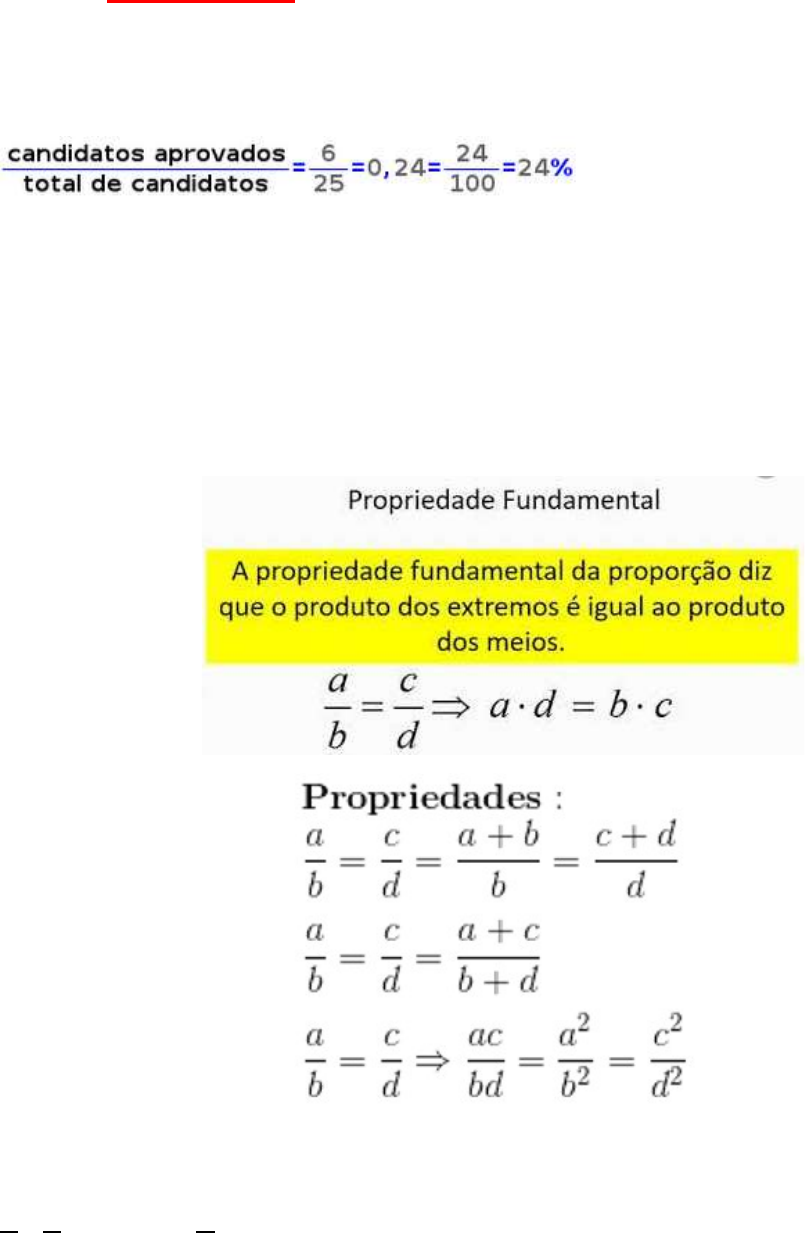 MATEMÁTICA 3 - Módulo 4 - Proporcionalidade e funções afim Razão Em certo concurso, foram aprovados 6 candidatos de um total de 25. Os candidatos aprovados representam quantos por cento do total? Podemos comparar duas grandezas por meio de uma razão. A razão entre os números 6 e 25, pode ser indicada pela fração 6/25 ou pelo quociente 24:100. O conceito de razão nos permite fazer comparações de grandeza entre dois números. Existem razões que recebem nomes especiais. Algumas delas são: densidade demográfica, velocidade média, escala e porcentagem. Denominamos de razão entre dois números a e b (b diferente de zero) o quociente a/b ou a:b. Proporção É uma igualdade entre duas razões. Grandezas diretamente proporcionais É o caso de elementos que estão relacionados por uma razão: = = ................. = k (Onde k é a constante de proporcionalidade) Exemplo Se três cadernos custam R$ 8,00, o preço de seis cadernos custará R$ 16,00. Observe que se dobramos o número de cadernos também dobramos o valor dos cadernos. Confira pela tabela: Grandezas inversamente proporcionais É o caso de elementos que estão relacionados por um produto: = = .......................... = = k ou x1 . y1 = x2 . y2 = ................ xn . yn = k (Onde k é a constante de proporcionalidade) Exemplo Para encher um tanque são necessárias 30 vasilhas de 6 litros cada uma. Se forem usadas vasilhas de 3 litros cada, quantas serão necessárias? Regra de três simples A regra de três é amplamente aplicável e até define, de certo modo, o conceito de proporcionalidade. Através da igualdade de duas razões, podemos multiplicar em cruz as grandezas e determinar o elemento de interesse. Exercícios resolvidos 1. Uma usina produz 500 litros de álcool com 6 000 kg de cana – de – açúcar. Determine quantos litros de álcool são produzidos com 15 000 kg de cana. Solução: 2. Uma equipe de 5 professores gastou 12 dias para corrigir as provas de um vestibular. Considerando a mesma proporção, quantos dias levarão 30 professores para corrigir as provas? Solução: Resoluções de exercícios 1. A resistência elétrica e as dimensões do condutor A relação da resistência elétrica com as dimensões do condutor foi estudada por um grupo de cientistas por meio de vários experimentos de eletricidade. Eles verificaram que existe proporcionalidade entre resistência (R) e comprimento (ℓ ), dada a mesma secção transversal (A) resistência (R) e área da secção transversal (A), dado o mesmo comprimento (ℓ) comprimento (ℓ) e área da secção transversal (A), dada a mesma resistência (R). Considerando os resistores como fios, pode-se exemplificar o estudo das grandezas que influem na resistência elétrica utilizando as figuras seguintes As figuras mostram que as proporcionalidades existentes entre resistência (R) e comprimento (ℓ), resistência (R) e área da secção transversal (A), e entre comprimento (ℓ) e área da secção transversal (A) são, respectivamente: a) direta, direta e direta b) direta, direta e inversa c) direta, inversa e direta d) inversa, direta e direta e) inversa, direta e inversa 2. A direção de uma escola comprará lapiseiras para distribuir para os seus alunos. Sabe-se que x lapiseiras custam y reais. O número máximo de lapiseiras que a direção da escola conseguirá comprar com z reais é o maior inteiro menor do que, ou igual a: a) . b) . c) . d) e) 3. Quem comprou um Xbox One e correu para liga-lo na TV para começar a jogar viveu um momento de expectativa que pode ter durado apenas o tempo necessário para ler esta frase até aqui. O nível de ansiedade é determinado pela banda larga. Enquanto um jogador com conexão de 1 Mbps sofreu 1 hora e 6 minutos para baixar o pacote de 500 Mb obrigatório para finalizar a instalaçăo, outro com um link de 10 Mbps esperou 6 minutos e 36 segundos. A partir do exposto, utilizando uma conexão de 200 Mbps, pacote de 500 Mb será baixado em aproximadamente: a) 20 segundos b) 23 segundos c) 25 segundos d) 32 segundos e) 38 segundos 4. Cinco substâncias foram analisadas em laboratório e suas massas e seus volumes catalogados como mostram os dados a seguir. - Substância A: massa = 500g e volume = 250cm3 - Substância B: massa = 750g e volume = 250cm3 - Substância C: massa = 0,8kg e volume = 160cm3 - Substância D: massa = 4hg e volume = 125cm3 - Substância E: massa = 300g e volume = 200cm3 Após o cálculo, concluiu-se que a substância com menor densidade absoluta é a: a) A b) B c) C d) D e) E