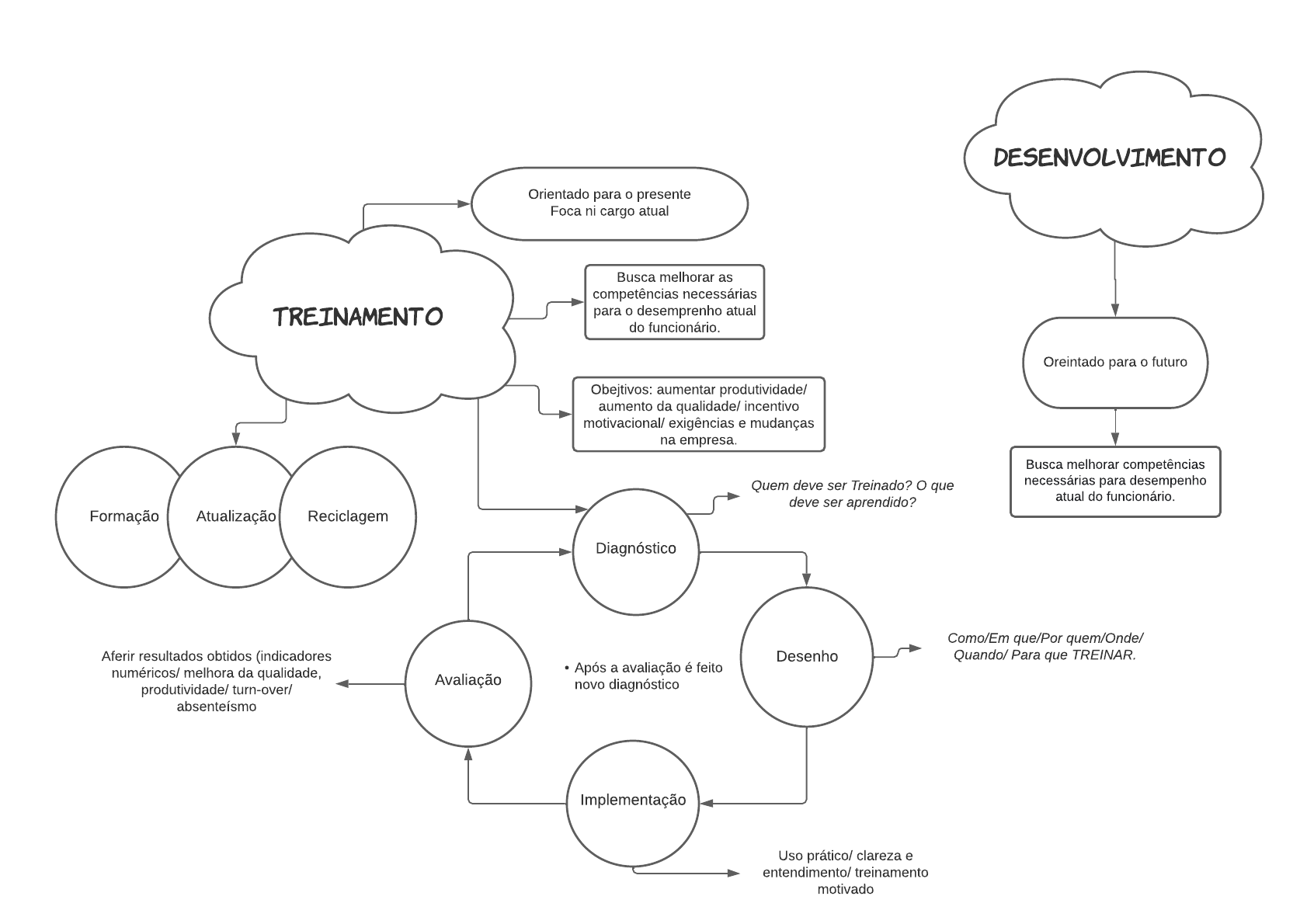- Após a avaliação é feito novo diagnóstico Tr ei nament o Orientado para o presente Foca ni cargo atual Busca melhorar as competências necessárias para o desemprenho atual do funcionário. Desenvo l v i ment o Oreintado para o futuro Busca melhorar competências necessárias para desempenho atual do funcionário. Formação Atualização Reciclagem Obejtivos: aumentar produtividade/ aumento da qualidade/ incentivo motivacional/ exigências e mudanças na empresa. Diagnóstico Desenho Implementação Avaliação Quem deve ser Treinado? O que deve ser aprendido? Como/Em que/Por quem/Onde/ Quando/ Para que TREINAR. Uso prático/ clareza e entendimento/ treinamento motivado Aferir resultados obtidos (indicadores numéricos/ melhora da qualidade, produtividade/ turn-over/ absenteísmo Mapa Mental 2 Daniel Página 1