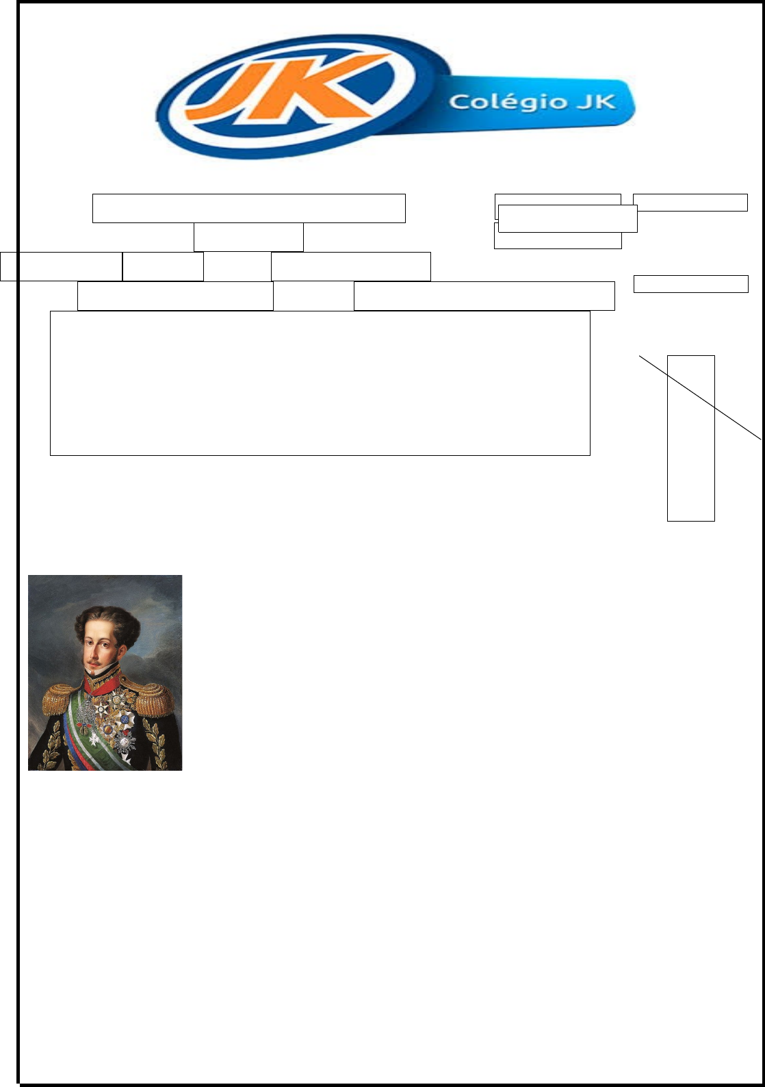 ( Estudante: Turma: RECUPERAÇÃO Turno: NOTURNO E.M MMMMM E DUCAÇÃO DE JOVENS E ADULTOS Data: 10 / 04 /20 21 DATA E VISTO COORDENAÇÃO DATA E VISTO DO PROFESSOR INSTRUÇÕES Preencha o cabeçalho e confira toda a avaliação. Se houver alguma irregularidade, fale com o professor. Leia, cuidadosamente, cada questão para assegurar-se de que a compreendeu bem. A avaliação deverá ser realizada com caneta azul ou preta. Questões a lápis ou rasuradas não darão direito à revisão. As questões objetivas rasuradas serão anuladas. Não é permitido o uso de corretivos nem a solicitação de materiais emprestados. Revise sua prova antes de entregá-la. Componente : História NOTA 10 Professor (a) : Bianka Catherine ) ( 3 º Trimestre ) TEXTO I Primeiro Reinado (1822-1831) Mesmo após a permanência de D. Pedro I e a instauração de uma monarquia independente nos trópicos, o início do período imperial foi bastante conturbado, acumulando diversas crises. O imperador, apesar de ter proclamado a independência do Brasil, ainda buscava assegurar os interesses de Portugal ao mesmo tempo em que precisava conter a fragmentação de seu território. D. Pedro I. Havia, no Brasil, grupos mais conservadores e outros de inclinação mais liberal. Temas como o abolicionismo, mais liberdade para negociar produtos livremente, entre outros, despertavam reações calorosas nos debates. No início de 1823, D. Pedro I deu início à formação de uma Assembleia Constituinte para a elaboração de uma Constituição para o país. A Assembleia chegou a ser dissolvida por D. Pedro I, em novembro de 1823, por não concordar com os termos que limitavam seus poderes. Esse episódio ficou conhecido como Noite da Agonia. A versão final da Constituição de 1824 foi outorgada no dia 24 de março e possuía um caráter centralizador, dando, inclusive, poderes “sagrados” ao imperador. Nesse contexto, no Nordeste do país, mais especificamente na Província de Pernambuco, iniciou-se um movimento revoltoso exigindo mais autonomia em relação ao Império. A revolta acabou espalhando-se por outras províncias da região, como Paraíba, Ceará e Rio Grande do Norte, formando a Confederação do Equador. O movimento foi severamente reprimido pelo governo, e a Província de Pernambuco acabou, inclusive, perdendo parte do seu território para a Província da Bahia. Os líderes da rebelião foram enforcados ou fuzilados, como Frei Caneca (1779-1825), e outros foram aprisionados, como Cipriano Barata (1762-1838). Com isso, no Nordeste, onde a popularidade de D. Pedro I já não era das melhores, sua figura passou a ser questionada cada vez mais. Disponível em: https://mundoeducacao.uol.com.br/historiadobrasil/brasil-imperio.htm. Acesso em: 08 de Abril 2021. QUESTÃO 1 VALOR: 2,0 / OBTIDO: De acordo com o texto I marque a ÚNICA alternativa CORRETA. a) ( ) Após a proclamação da independência o imperador desligou-se totalmente de Portugal e da corte. b) ( ) A fragmentação do território brasileiro não precisou ser contida por D. Pedro I. c) ( ) Não havia, no Brasil, grupos mais conservadores e outros de inclinação mais liberal. d) ( ) No início de 1823 D. Pedro I criou a Assembleia Constituinte, que foi dissolvida em novembro do mesmo ano (no que ficou conhecida como Noite da Agonia) a mando do próprio imperador D. Pedro I. e) ( ) Temas como o abolicionismo, mais liberdade para negociar produtos livremente, entre outros, não eram falados ou discutidos no país. QUESTÃO 2 VALOR: 2,0 / OBTIDO: Julgue os itens a seguir, de acordo com o texto I. a) ( ) Dom Pedro I declarou a independência do Brasil no dia 07 de setembro de 1882,as margens do Rio Ipiranga. b) ( ) A versão final da Constituição de 1824 foi outorgada no dia 30 de junho. c) ( ) A Constituição de 1824, possuía um caráter centralizador, dando, inclusive, poderes “sagrados” ao imperador. d) ( ) O país nunca teve nenhum movimento revoltoso que exigisse mais autonomia do Império. e) ( ) Província de Pernambuco perdeu parte do seu território para a Província da Bahia. QUESTÃO 3 VALOR: 2,0 / OBTIDO: Um movimento revoltoso iniciou-se na Província de Pernambuco, esta revolta acabou espalhando-se por outras províncias da região, quais foram elas? ____________________________________________________________________________________________________________________________________________________________________________________________________________________________________________________________________________________________________________________________________________________________________________________________ QUESTÃO 4 VALOR: 2,0 / OBTIDO: O que este movimento formou? ____________________________________________________________________________________________________________________________________________________________________________________________________________________________________________________________________________________________________________________________________________________________________________________________ QUESTÃO 5 VALOR: 2,0 / OBTIDO: O movimento foi reprimido pelo governo? O que aconteceu com os líderes desta revolução? ____________________________________________________________________________________________________________________________________________________________________________________________________________________________________________________________________________________________________________________________________________________________________________________________ Boa Sorte! GABARITO Questão 01: D Questão 02: a) C b) E c) C d) E e) C Questão 03: As províncias foram da Paraíba, Ceará e Rio Grande do Norte. Questão 04: Formou a Confederação do Equador. Questão 05: O movimento foi severamente reprimido pelo governo. E seus líderes foram enforcados ou fuzilados. 1
