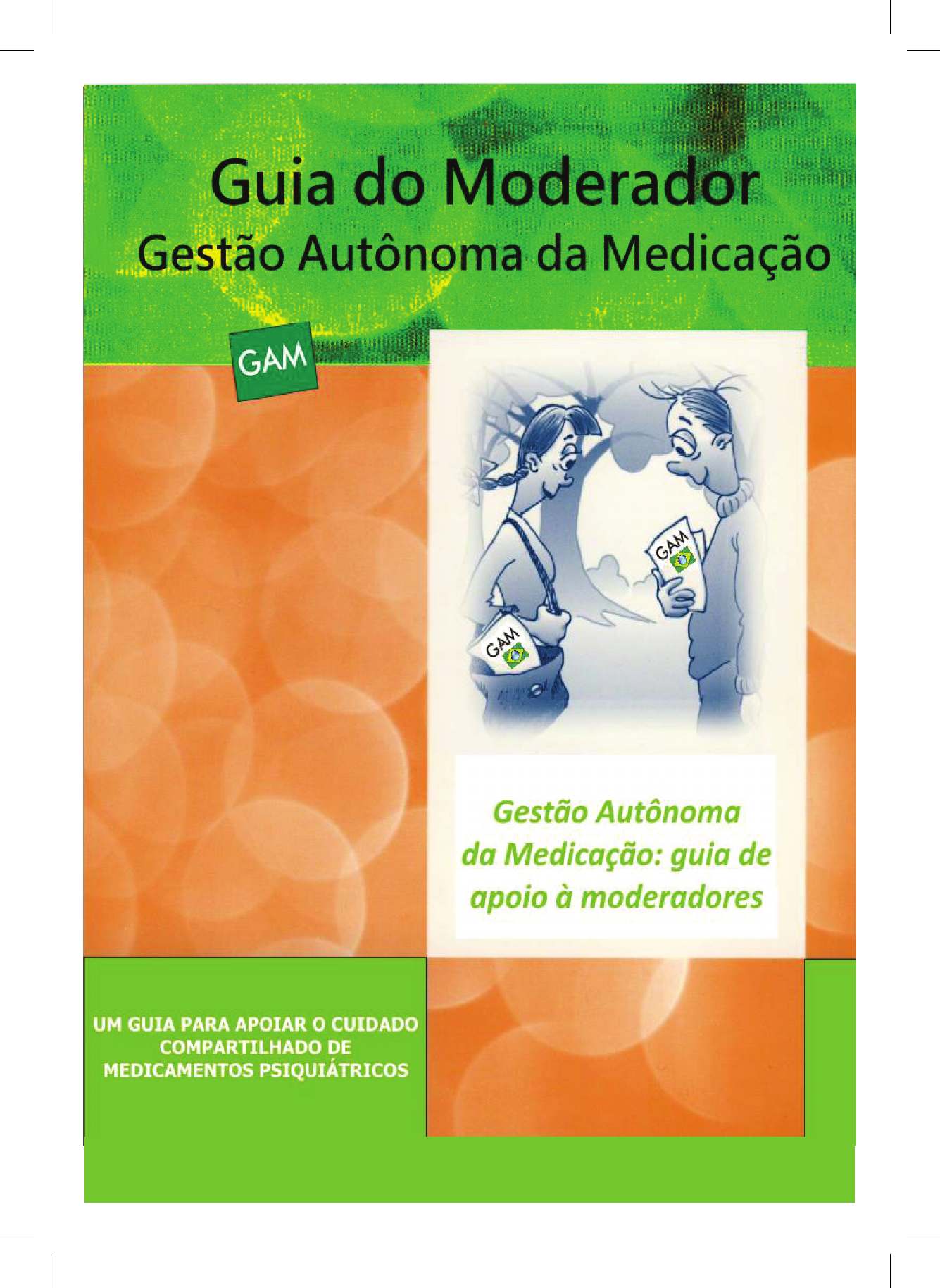 Como citar esse GUIA: GESTÃO AUTÔNOMA DA MEDICAÇÃO – Guia de Apoio a Moderadores. Rosana Teresa Onocko Campos; Eduardo Passos; Analice Palombini et AL. DSC/FCM/UNICAMP; AFLORE; DP/UFF; DPP/UFRGS, 2014. Disponível em: http://www.fcm.unicamp.br/fcm/laboratorio-saude-coletiva-e-saude- mental-interfaces Equipe Multicêntrica de Colaboradores para elaboração do primeiro Guia de Apoio a Moderadores: Rosana Onocko Campos, Analice de Lima Palombini, Eduardo Passos, Laura Lamas Martins Gonçalves, Deivisson Viana Dantas dos Santos, Sabrina Stefanello Jorge Melo, Marilia Silveira, Sandra Guerra, Christian Sade Vasconcelos, Lorena Guerini Colaboração externa: Julio A. Wong Un. http://www.fcm.unicamp.br/fcm/laboratorio-saude-coletiva-e-saude-mental-interfaces http://www.fcm.unicamp.br/fcm/laboratorio-saude-coletiva-e-saude-mental-interfaces 3 4 Gestão Autônoma da Medicação Guia de Apoio a Moderadores SUMÁRIO 1. APRESENTAÇÃO 2. ANTES DE INICIAR UM GRUPO GAM - Você sabia? - O que é a Gestão Autônoma da Medicação – GAM? - Por que estamos propondo um Guia de Apoio a Moderadores? - Princípios básicos: autonomia e cogestão 3. História da GAM no Canadá e no Brasil - A Reforma Psiquiátrica Brasileira 4. O GRUPO GAM – O convite – A contratação do grupo GAM – Vamos começar? – Conduzindo o grupo: o manejo cogestivo 5. O USO DO GUIA GAM – Pra começo de conversa – Passo 1 – Passo 2 – Passo 3 – Passo 4 – Passo 5 – Passo 6 5 1. APRESENTAÇÃO Os movimentos da Reforma Psiquiátrica têm conquistado grandes avanços, como a redução de leitos em hospitais psiquiátricos e o retorno à vida na comunidade de pessoas com longo histórico de internações, em processo de desinstitucionalização que abrange a criação de novas formas de organização da atenção à saúde, valorizando a integração dos serviços e dos usuários às suas comunidades e territórios. Porém, ainda enfrentamos o desafio de que o tratamento baseado em medicamentos – ou fármacos – seja o mais utilizado, colocando em segundo plano outras formas de cuidar das pessoas, baseadas nas relações, nos afetos e na comunicação. A Gestão Autônoma da Medicação (GAM) – propõe ferramentas concretas para enfrentar esse problema – que práticas de saúde mental dependam tanto do mundo da Medicina (medicalização). A GAM busca que as pessoas que usam psicofármacos sejam mais críticas com o uso que fazem deles, que conheçam melhor os medicamentos que usam cotidianamente e seus efeitos desejados e não desejados. Busca, ainda, que conheçam quais são seus direitos e que saibam que podem decidir se aceitam ou recusam as diferentes propostas de tratamento. Assim, dois princípios importantes da GAM são: o direito à informação e o direito a aceitar ou recusar os tratamentos. Para a GAM, a participação das pessoas nas decisões sobre os seus tratamentos é algo central. Com este Guia, pretendemos ajudar você, moderadora ou moderador de grupos GAM, com dicas e estratégias úteis – que foram aprendidas durante diversas experiências em torno da Gestão Autônoma da Medicação. Nas páginas a seguir, apresentaremos a GAM e seus princípios, e a história dessa proposta. Também falaremos brevemente sobre a Reforma Psiquiátrica – que forma o contexto histórico e político em que se desenvolve a GAM aqui no Brasil. Finalmente, vamos discutir sobre os Grupos GAM e formas de usar o Guia GAM, em cada um dos seus seis passos. 6 2. ANTES DE COMEÇAR O TRABALHO COM UM GRUPO GAM Você sabia? Iremos começar esta conversa com muitas perguntas. Algumas que você já deve até ter pensado ou imaginado. E outras novas. Todas afetam o uso de medicamentos psiquiátricos. Vejamos. Você sabia que, nos últimos dez anos, o consumo de psicofármacos aumentou muito no mundo todo? Sabia que as receitas de antidepressivos aumentaram, não só na quantidade (número de pessoas que recebem essa prescrição), mas também no seu tempo de uso (duração do tratamento)? Ainda, sabia que o uso de tranquilizantes (benzodiazepínicos) também está aumentando a cada dia no mundo? Sabia que, mesmo em municípios onde há bons e suficientes serviços especializados de saúde mental, há alta prescrição desses psicofármacos? Você sabia que certos problemas das pessoas – que até alguns anos eram abordados como complexos e singulares (quer dizer, envolvendo muitos fatores e acontecendo de maneira diferente para cada pessoa) – hoje foram transformados em doenças, ou defeitos, ou déficits, ou transtornos? E que esses problemas hoje só recebem psicofármacos como forma de resposta ao sofrimento pessoal e social que ocasionam? E que, com isso, pensa-se que se está consertando o "desvio" ou "defeito"? Sabia que, no Brasil, quando a pessoa busca ser atendida por um problema de saúde, muitas vezes só recebe a prescrição de medicamentos como resposta? Sabia que, por outro lado, as pessoas cada vez mais chegam nos serviços com uma demanda por uma medicação achando que assim vão resolver seus problemas? Sabia também que, muitas vezes, as equipes de saúde sofrem e se angustiam com os problemas sociais e econômicos dos usuários e tentam dar ajuda na forma de receitas médicas? Você sabia que, na hora de definir qual deve ser o melhor tratamento de um usuário, muitas vezes os profissionais de saúde não consideram o que as pessoas têm a dizer sobre os medicamentos que usam ou usaram? Sabia que os usuários acabam não participando, ou participam muito pouco, das decisões relacionadas ao seu próprio tratamento de saúde? Sabia que muitas vezes a participação somente se dá na hora de contar os sintomas e mal-estares ao profissional? Você sabia que a grande maioria de usuários não conhece seus direitos como usuário – ou sequer imagina ter 7 esses direitos? Você sabia que a maioria dos profissionais de saúde tampouco sabe que os usuários têm direitos, nem quais são esses direi