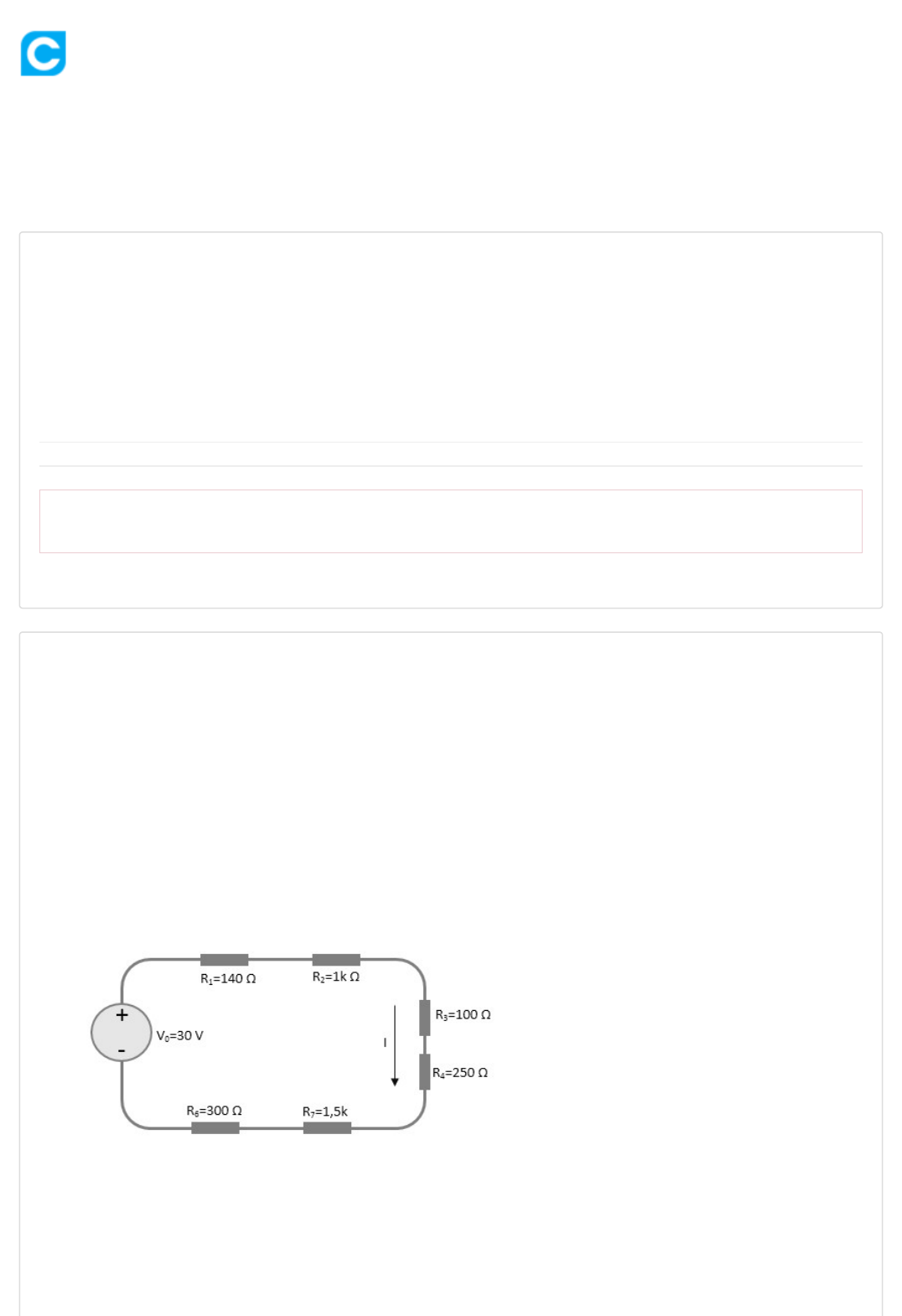 Circuitos Elétricos I (/aluno/timeline/index/2… Av1 - Circuitos Elétricos I (/notific Informações Adicionais Período: 28/02/2022 00:00 à 04/04/2022 23:59 Situação: Confirmado Pontuação: 750 Protocolo: 712139831 A atividade está fora do período do cadastro Avaliar Material 1) Nos circuitos elétricos a resistência é uma propriedade de alguns materiais em se opõe à passagem da corrente, sendo a sua fonte geradora a responsável por fornecer a energia elétrica para o sistema. O componente resistor pode ser instalado em vários pontos do circuito, ou seja, pode haver vários resistores em uma sistema elétrico, mas a fonte de energia percebe essa resistência como uma só. Por esse motivo é importante analisarmos as associações de resistores e como se faz a determinação da resistência total de um circuito (ou também chamada de resistência equivalente). O primeiro tipo de configuração é a chamada associação em série de resistores, nesse tipo de configuração basta apenas fazer a soma das resistências para se chegar ao resistor equivalente. No circuitos com associações em série de resistores, a corrente é a mesma para todos os resistores, conforme ilustrado pela Figura 1. Figura 1 - Circuito resistivo. Fonte: CANTIDIO, (2017) Diante do exposto analise as afirmativas: Esse site utiliza cookies para oferecer uma melhor experiência de navegação, analisar como você interage em nosso site, otimizar o desempenho e personalizar o conteúdo. Ao utilizar este site, você concorda com o uso de cookies. Saiba mais em nosso Portal de Privacidade (https://www.canaldatransparencia.com.br/cogna/). Ok https://www.colaboraread.com.br/aluno/timeline/index/2445250905?ofertaDisciplinaId=1742153 https://www.colaboraread.com.br/notificacao/index javascript:void(0); https://www.canaldatransparencia.com.br/cogna/ a) b) c) d) e) 2) I. A tensão em todos os resistores é igual. II. A corrente que passa no resistor R é aproximadamente I = 9,11 x 10 A. III. A resistência equivalente do circuito é igual a 3,290 kO. IV. A corrente que passa pelo resistor R é maior do que a corrente que passa pelo resistor R . É correto apenas o que se afirma hein: Alternativas: I e II. I e III. II e III. Alternativa assinalada II e IV. I, III e IV. "Gustav Robert Kirchhoff e George Simon Ohm, são considerados grandes mestres na área da eletricidade, suas contribuições para a área trouxe grandes avanços. Os dois são reverenciados até hoje pela descoberta das leis que regem um sistema elétrico. As Leis de Kirchhoff são empregues na análise de circuitos eléctricos mais complexos, como por exemplo, aqueles com mais de uma fonte de tensão em série ou em paralelo. A aplicação conjunta das Leis de Kirchhoff e de Ohm permite obter um conjunto de equações cuja resolução conduz aos valores das intensidades de corrente e das tensões aos terminais dos componente"s. Observe o circuito da Figura 1, em que nenhum resistor possui o mesmo valor. Figura 1 - Circuito resistivo. Fonte: CANTIDIO, (2017) Considerando a lei das tensões de Kirchhoff e a lei de Ohm analise as afirmativas a seguir: I. Para o circuito apresentadO, a lei de Ohm diz que as tensões em cada resistor será igual. 7 -3 1 6 Esse site utiliza cookies para oferecer uma melhor experiência de navegação, analisar como você interage em nosso site, otimizar o desempenho e personalizar o conteúdo. Ao utilizar este site, você concorda com o uso de cookies. Saiba mais em nosso Portal de Privacidade (https://www.canaldatransparencia.com.br/cogna/). Ok https://www.canaldatransparencia.com.br/cogna/ a) b) c) d) e) a) b) c) d) e) 3) II. Analisando o circuito acima e aplicando a da lei das tensões de Kirchhoff podemos afirmar que V = I(R +R +R +R +R +R ). III. Analisando o circuito acima diante da lei de Ohm podemos afirmar que a corrente em todos os resistores será a mesma. É correto apenas o que se afirma em: Alternativas: I II I e II I e III II e III Alternativa assinalada O teorema de Thévenin e o teorema de Norton possuem algumas semelhanças, mas também diferenças na sua aplicação que precisam ser evidenciadas no momento da análise. O teorema de Norton, por exemplo, define que qualquer circuito, desde que seja linear, pode ser substituído por uma única fonte de corrente constante em paralelo com uma resistência, enquanto que o teorema de Thévenin propõe que todo circuito linear pode ser reduzido a uma fonte de tensão constante em série com uma resistência. A partir do texto apresentado, avalie as asserções a seguir e a relação proposta entre elas. I. Os teoremas de Norton e Thévenin possuem semelhança quando determinam que para encontrar a resistência de Norton ou a resistência deThévenin do circuito elétrico, todas as suas fontes de tensão deverão ser substituídas por um curto-circuito e as fontes de corrente substituídas por um circuito aberto. PORQUE II. Para encontrar a corrente da fonte independente em qualquer teorema é necessário que a resistência de carga seja substituída por um circuito aberto. A respeito dessas asserções, assinale a alternativa correta: Alternativas: As asserções I e II são proposições falsas. A asserção I é uma proposição verdadeira, e a asserção II é um proposição falsa. Alternativa assinalada A asserção I é uma proposição falsa, e a asserção II é um proposição verdadeira. As asserções I e II são proposições verdadeiras, e a asserção II é uma justificativa correta da asserção I. As asserções I e II são proposições verdadeiras, e a asserção II não justificativa correta da asserção I. 0 1 2 3 4 5 6 Esse site utiliza cookies para oferecer uma melhor experiência de navegação, analisar como você interage em nosso site, otimizar o desempenho e personalizar o conteúdo. Ao utilizar este site, você concorda com o uso de cookies. Saiba mais em nosso Portal de Privacidade (https://www.canaldatransparencia.com.br/cogna/