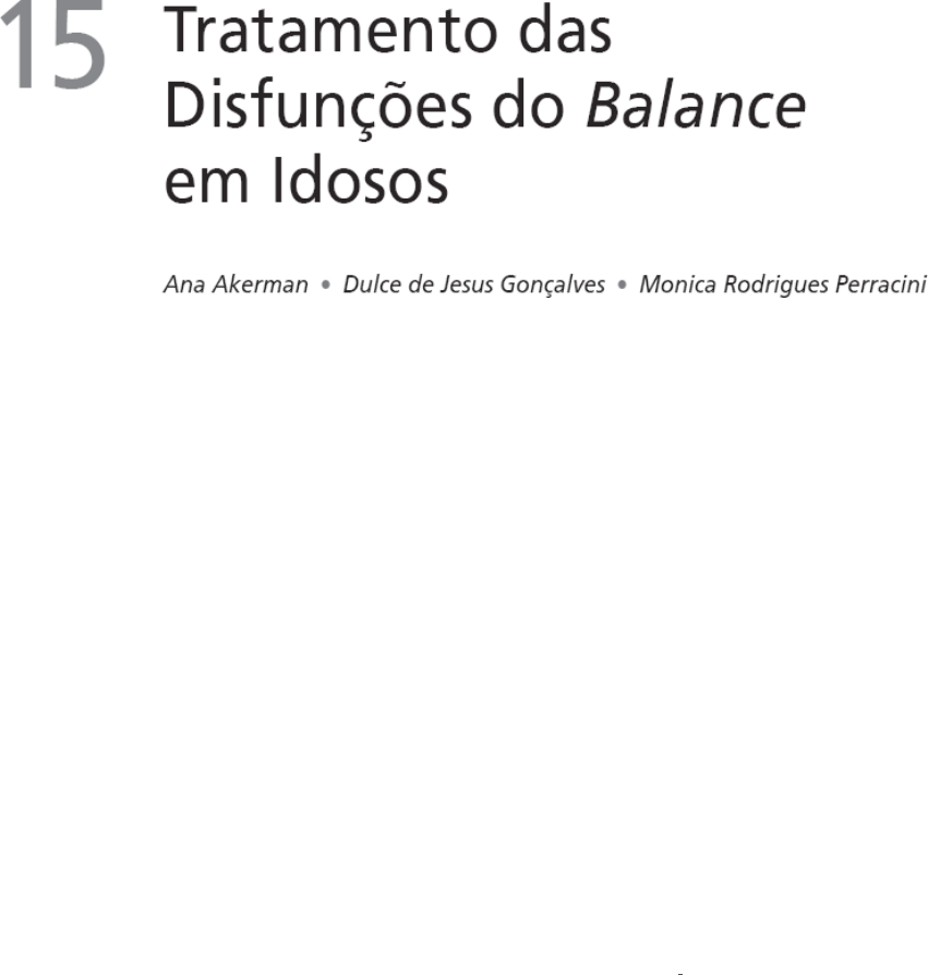 Perracini, Monica Rodrigues Funcionalidade e envelhecimento / Monica Rodrigues Perracini, Claudia Marina Fló. - 2. ed. - Rio de Janeiro : Guanabara Koogan, 2019. 560 p. : il. ; 24 cm. Inclui índice ISBN 9788527735889 Influência do balance na funcionalidade O controle postural é importante para realizar atividades funcionais no dia a dia de forma segura. Desde as tarefas mais simples, como manter-se equilibrado na posição sentada sem encosto até andar em um ambiente imprevisível, como a rua, envolve o balance, em níveis de complexidade diferentes. Todos os pacientes, de acordo com suas capacidades, habilidades, expectativas e necessidades, são submetidos a um processo de avaliação que norteia a tomada de decisão do fisioterapeuta em relação às modalidades de tratamento, à intensidade e à duração da intervenção que será realizada. A forma como se compreende os mecanismos envolvidos no controle do balance direciona a avaliação e, portanto, o tratamento. Assim, concepções errôneas de que a reeducação do balance pode ocorrer por meio de exercícios genéricos, pouco específicos, e que o equilíbrio pode ser estimulado apenas com o aumento do grau de dificuldade na execução dos exercícios limitam o potencial de recuperação funcional dos pacientes.1 Segundo Horak et al., o balance não deve ser considerado um sistema único, e o tratamento precisa ser mais específico em vez de generalizado.2 Além disso, fisioterapeutas não capacitados em gerontologia podem partir do pressuposto equivocado de que os indivíduos muito idosos, simplesmente por serem mais velhos, não necessitam ser estimulados no máximo do seu potencial. No entanto, mesmo idosos com baixo nível de atividade se beneficiam de um processo de reabilitação com o objetivo de aumentar sua reserva funcional, com consequente prevenção de eventos adversos. O balance é uma habilidade cognitivo-motora complexa resultante da integração de múltiplos processos sensório-perceptomotores cujo objetivo é estabilizar o centro de massa (CM) durante a posição parada, os movimentos voluntários de segmentos do corpo e nas mudanças posturais, o que exige um controle postural antecipatório, e em situações de perturbações externas. Portanto, o balance depende das características do idoso, da tarefa a ser executada e do contexto ambiental presente no momento.1-3 Assim, para entender por que o paciente não executa bem uma atividade funcional específica, é necessário avaliar todos os sistemas envolvidos no balance, analisar os pré-requisitos sensoriais, motores e psicocognitivos envolvidos no desempenho daquela tarefa específica, assim como as condições do ambiente, sua variabilidade e imprevisibilidade e as possíveis interações ambiente-tarefa-idoso. Cada paciente apresenta uma combinação particular desses fatores que podem estar limitando o balance.4 Logo, um idoso pode não conseguir levantar da cadeira de forma estável por causa de uma desorientação espacial da posição da cabeça em relação ao tronco, por uma disfunção vestibular. Quando comparados aos adultos jovens, os idosos tendem a confiar mais nas respostas mecânicas passivas do segmento do pescoço do que na integração das informações sensoriais, especialmente do sistema vestibular, para levantarem-se de uma cadeira. Em geral, bloqueiam a cabeça no tronco, não permitindo deslocamentos do pescoço em amplitudes maiores. Podem, ainda, apresentar uma fraqueza muscular de quadríceps e de tibial anterior, ou ainda uma limitação de amplitude de movimento (ADM) de quadril. A altura da cadeira e a presença ou não de braços de apoio podem interferir de modo significativo no desempenho dessa atividade com o avançar da idade.5 As quedas são as consequências mais evidentes do comprometimento do balance, e os exercícios de balance altamente desafiadores têm se mostrado a intervenção mais efetiva para reduzir a ocorrência de quedas em idosos.6 Contudo, não menos importantes, são o medo de cair e a diminuição do senso de autoeficácia para a realização de atividades, que podem se traduzir em diminuição de atividades e isolamento social, ansiedade, depressão e até mesmo pânico, quando os pacientes são confrontados com situações muito desafiadoras ou imprevisíveis.7,8 Do ponto de vista cinesiológico-funcional, as fixações podem ser entendidas como a busca da estabilização de um ou mais segmentos corporais visando à redução dos graus de liberdade do corpo. Podem gerar compensações posturais e desalinhamentos que, por sua vez, resultam em dor, fraqueza muscular, fadiga e enrijecimento articular; se mantidas por tempo prolongado, causam deformidades. Um exemplo disso são os pacientes idosos com alterações vestibulares que tendem a manter a linha de gravidade deslocada posteriormente e, como resposta compensatória, reforçam o padrão de cifose torácica e a prostração de cabeça. Ao longo do tempo, isso pode gerar problemas cervicais decorrentes do aumento da lordose cervical e mesmo disfunções de ombro ocasionadas pelo “enrolamento anterior” do tronco superior. Assim, é possível observar como uma alteração sensorial do sistema vestibular pode gerar uma alteração perceptual da orientação do corpo no espaço, colaborando, no longo prazo, para disfunções musculoesqueléticas.1 Portanto, é adequado reforçar que as modalidades de intervenção e os exercícios aqui propostos não são utilizados de forma isolada e devem ser baseados na avaliação criteriosa das dificuldades e comprometimentos do paciente. O processo de diagnóstico serve como uma ligação entre os achados do exame e a intervenção a ser proposta, maximizando os resultados do tratamento.4 De forma geral, a avaliação abrangente dos sistemas envolvidos no controle do balance deve contemplar:3,9 •Processamento cognitivo: habilidade de desempenhar atividades que exijam atenção em tarefas duplas, capaci