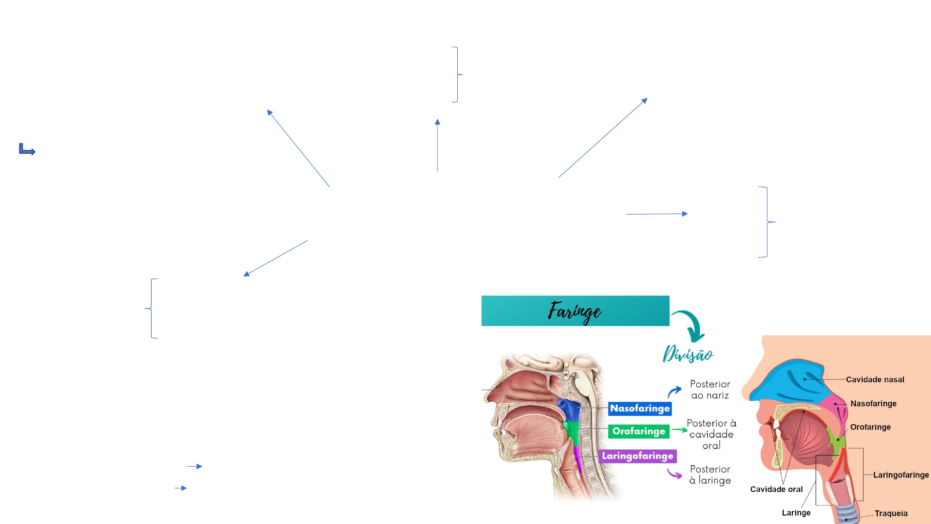 FARINGE ANATOMIA DA FARINGE Formato de U Passagem entre nariz, boca e laringe Composta de diversos músculos Todos em função da deglutição superior Constritores médio (empilhados) inferior Estilo Salpingo faríngeo Palato Palato mole: Tensor Levantador véu palatino Ulva Subdividida em Nasofaringe-Orofaringe-Laringofaringe INERVAÇÃO Nervo vago Nervo glossofaríngeo Nervo trigêmeo CIRCULAÇÃO Carótida comum externa artéria faríngea ascendente (2º ramo) Plexo venoso faríngeo veia jugular LARINGE ANATOMIA Regula a passagem de comida ou ar Composta por 6 cartilagens Contem as pregas vocais e vestibulares A musculatura ajuda na voz e na glote INERVAÇÃO Nervo laríngeo recorrente Nervo laríngeo superior (ramo esterno) CIRCULAÇÃO Artérias e veias laríngeas superiores e inferiores ANEL DE WALDEYER Tonsilas Faríngeas (ADENOIDES) Palatinas Linguais FORMAÇÃO DA VOZ Produzida na laringe cordas vocais Cordas se aproximam e vibram pela passagem do ar Cavidade de ressonância Faringe Nariz Boca Seios paranasais “Escutamos nossa voz 2 vezes”