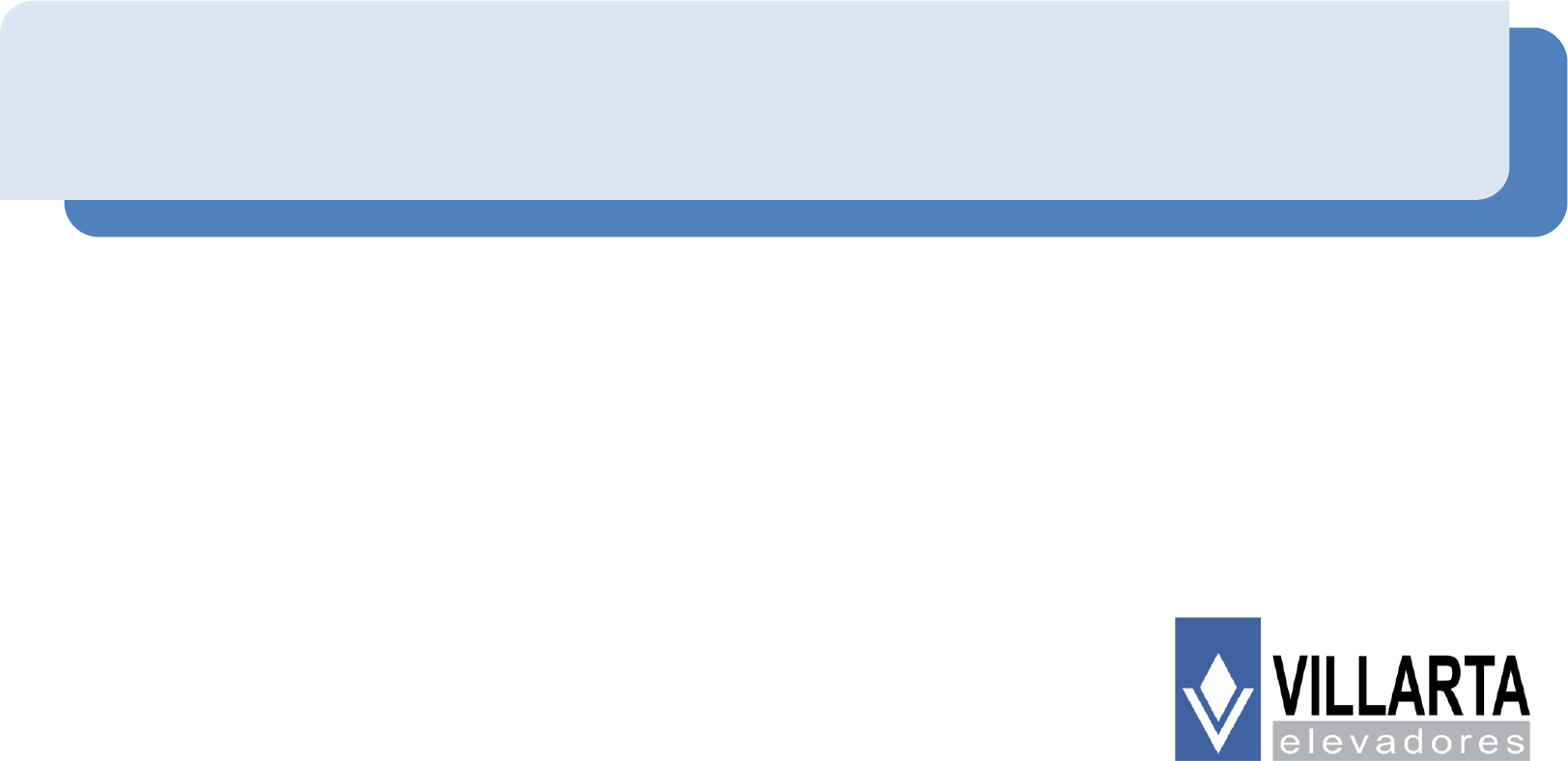 INSTALAÇÃO E COMISSIONAMENTO Villarta Sem Casa de Máquina Compaq Edição 19.03.19 ÍNDICE P á g i n a 2 | 60 Sumário Objetivo __________________________________________________________________________________________________________________ 4 1.0 Normas de Segurança ___________________________________________________________________________________________________ 5 1.1 Ícones de Segurança _____________________________________________________________________________________________________ 7 1.2 Preparação para instalação _______________________________________________________________________________________________ 9 1.2.1 Equipamentos de Proteção Individual – Básicos ____________________________________________________________________________ 10 1.2.2 Horário de Trabalho __________________________________________________________________________________________________ 10 1.2.3 Local de Armazenamento ______________________________________________________________________________________________ 11 1.2.4 Ferramentas_________________________________________________________________________________________________________ 12 1.2.5 Condições do local de instalação ________________________________________________________________________________________ 13 2.0 Processo de Montagem _________________________________________________________________________________________________ 15 2.1 Inserção das guias dentro do poço do elevador ______________________________________________________________________________ 16 2.2 Instalação da plataforma de instalação em toda extensão do poço ______________________________________________________________ 16 2.3 Içamento das guias e descida da linha de prumo e início da fixação dos suportes de guia. ___________________________________________ 17 2.4 Instalação das bases de motor e limitador de velocidade e colocação de máquina e limitador nos suportes. _____________________________ 21 2.5 Distorcimento das guias se necessário e correção de prumada. Nivelamento de motor e limitador. Teste da alimentação elétrica para funcionamento do motor na baixa. ___________________________________________________________________________________________ 23 3.0 Armação de contrapeso _________________________________________________________________________________________________ 24 4.0 Armação de cabina _____________________________________________________________________________________________________ 26 ÍNDICE P á g i n a 3 | 60 5.0 Cabina _______________________________________________________________________________________________________________ 28 6.0 Realizar passagem dos cabos de aço ou cinta e tracionamento _________________________________________________________________ 30 7.0 Instalação do sistema de segurança _______________________________________________________________________________________ 32 8.0 Instalação do quadro de comando e cabo de manobra ________________________________________________________________________ 33 9.0 Instalação porta de cabina ______________________________________________________________________________________________ 35 10.0 Instalação porta de pavimento __________________________________________________________________________________________ 38 11.0 Instalação botoeiras de pavimento _______________________________________________________________________________________ 48 12.0 Instalação dos limites fim de curso _______________________________________________________________________________________ 49 13.0 Instalação do sensor de parada __________________________________________________________________________________________ 50 14.0 Instalação da barreira eletrônica ________________________________________________________________________________________ 51 15.0 Instalação do sistema de monitoramento das cintas _________________________________________________________________________ 53 16.0 Instalação dos protetores de contrapeso __________________________________________________________________________________ 54 17.0 Acessórios de cabina e fiação ___________________________________________________________________________________________ 55 INFORMAÇÕES GERAIS INTRODUÇÃO P á g i n a 4 | 60 Objetivo Este manual tem como finalidade fornecer informações úteis de montagem referente ao elevador sem casa de máquinas Villarta tração 2:1 modelo COMPAQ (até 13 passageiros, ou seja, com capacidade de 975 kg). Importante! Caso o modelo do equipamento seja outro, entrar em contato com a Villarta para a solução. INFORMAÇÕES GERAIS NORMAS DE SEGURANÇA P á g i n a 5 | 60 1.0 Normas de Segurança Para dar início a montagem, é imprescindível garantir um ambiente seguro tanto para os montadores, quanto para terceiros que possam eventualmente estar presentes na área de instalação. Abaixo estão descritas algumas normas de segurança a serem observadas pelos técnicos de montagem: NORMAS DE SEGURANÇA 1 Todas as roupas e equipamentos de segurança devem ser usados conforme as determinações da Villarta. 2 Respeitar cuidadosamente todos os processos de montagem descritos neste manual. 3 Manter o ambiente de instalação organizado e limpo. 4 Certificar-se de que as ferramentas utilizadas estão em boas condições e sempre seguir as recomendações de uso do fabricante destas. 5 Utilizar iluminação adequada. 6 Evitar o acesso de pessoas estranhas a área de montagem. Usar mão de obra treinada e qualificada. 7 Seguir as recomendações da NR-35 para serviços em altura acima de 2,00 m (dois metros) e a NR-10 para instalações elétricas. 8 Manter a proteção de porta nos pavimentos enquanto a mesma não for instalada. 9 Os números das centrais de emergência devem estar sempre à disposição para quaisquer eventualidades. Este sinal indica instrução ou informação adicional. Este símbolo indica que os parafusos ou porcas não devem ser 