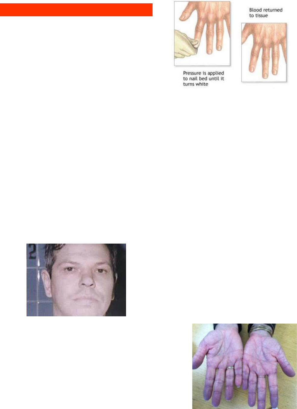 Laríssa Leão SISTEMA TEGUMENTAR →A pele, o maior órgão do corpo, é um dos melhores indicadores de saúde geral. Ela exerce as funções de revestimento, regulação da temperatura corporal, con- tato com o meio ambiente, isolamento do corpo, re- serva alimentar, e reflete, de maneira acentuada, muitas das modificações sofridas pelo organismo. →Semiotécnica para inspeção e palpação da pele: ↳Local com iluminação adequada; exposição adequada da pele a ser examinada. Deve-se analisar: ↳Coloração: a depender da cor da raça do paciente. Deve-se analisar a palidez, vermelhidão (localizada ou generalizada), cianose (generalizada, localizada, central, periférica, mista ou por alteração da hemoglobina). ↪Palidez: é uma atenuação ou desaparecimento da cor rósea da pele, também nas regiões das palmas das mãos e planta dos pés. Pode ser localizada (isquemia), generalizada (diminuição das hemácias circulantes). Pode ocorrer palidez graças a vasoconstrição generalizada, em situações como dor, náusea intensa, choque, lipoti- mia. Também por anemia. ↪Semiotécnica do fluxo sanguíneo cutâneo pressionar a ponta do polegar e ver como é o retorno do sangue. » Normal: volta em 1 segundo » Choque: lentidão do retorno ↪Semiotécnica da perfusão capilar: comprimir a falange distal e soltar. » Normal: o retorno é em até 3 segundos; » Perfusão capilar diminuída: demora mais que 3 segundos. ↪Vermelhidão ou eritrose: é uma cor muito averme- lhada, ocasionada pelo aumento da rede vascular cutâ- nea e vasodilatação. » Generalizada: toda pele apresenta vermelhidão, como após exposição solar prolongada ou fe- bre. » Localizada: é restrito, com rubor fugaz ou dura- douro. Pode apresentar sinais flogísticos, como em espinhas. ↪Cianose: cor azulada da pele e mucosas. Pode ser lo- calizada (lábios, ponta do nariz, ponta dos dedos) ou ge- neralizada. Pode ter intensidade leve, modera ou intensa. » Cianose central: insaturação arterial excessiva, causada por diminuição de O2 (altitude), hipo- ventilação, shunt venoso arterial (cardiopatias). » Periférica: perda exagerada de O2 na rede ca- pilar, causada por estase venosa. » Mista: central + periférica: causada pela conges- tão pulmonar + estase venosa. » Por alteração da hemoglobina: falha na fixação do oxigênio. Causas: intoxicação, anemia. ↪Icterícia: a pele e mucosas ficam amareladas pelo au- mento de bilirrubina. A cor pode ser amarelada ou ama- relo-esverdeada. (nível de bile acima de 2mg/DL). princi- pais causas são: hepatite infecciosa, hepatopatia Laríssa Leão alcoólica, hepatopatia por medicamentos, leptospirose, malária, septicemia, lesões obstrutivas das vias biliares extra hepáticas (litíase biliar, câncer da cabeça do pân- creas) e doenças nas quais ocorre hemólise (icterícias hemolíticas). Pode se apresentar como: » Pré hepática: é por hemólise e aumento da concentração de bilirrubina (ocorre antes do sangue “passar” pelo fígado). (hiper bilirrubine- mia) » Hepática: a origem é hepática, geralmente causa em hepatite e cirrose. (dificuldade da conjugação da hemoglobina). » Pós hepática: causada por cálculos biliares, infla- mações, ou quando há um bloqueio da passa- gem da bile para o intestino. Ocorre “depois” que o sangue “passa” pelo fígado. As fezes fi- cam esbranquiçadas e a urina fica muito escura, cor de coca cola. É a causa mais comum de ic- terícia. ↪Semiotécnica da icterícia: tempo de duração, intensi- dade., instalação (súbita ou gradativa), cor da urina e das fezes, presença ou não de prurido na pele (o excesso de bilirrubina na circulação dos capilares da pele). ↪Aumento da bilirrubina direta: problemas no fígado ou vias biliares ↪Aumento da bilirrubina indireta: só icterícia ↪Albinismo: a pele e anexos ficam com a coloração branco leitosa pela síntese defeituosa da melanina. ↪Bronzeamento da pele: pode ser por raios solares ou substancias bronzeadoras. Pode causar doença de Addi- son (insuficiência da suprarrenal), alteração no metabolismo da melanina, câncer de pele, hemocroma- tose (o paciente absorve mais ferro do que deveria, causando manchas escuras na pele entre outras compli- cações). ↪Dermografismo: é uma alta sensibilidade da pele, uma urticaria factícia. Causada por uma reação vasomotora quando há atrito de algo com a pele, formando uma li- nha vermelha e ligeiramente elevada, que fica por 4 a 5 minutos. ↪Fenômeno de Raynaud: se observa uma palidez se- guida de cianose e hiperemia. Causas: tromboangeíte obliterante, lúpus, intoxicação, costela cervical (1 costela a mais que comprime a subclávia). ↳Integridade: A perda de continuidade ou integridade da pele ocorre na erosão ou exulceração, na ulceração, na fissura ou rágade, causando lesões elementares. ↪Erosão: lesão superficial, que não fica cicatriz. ↪Ulceração: atinge derme e epiderme, que deixa cica- triz ↪Fissura: lesão linear causada por objeto cortante. Exemplo: rachaduras dos pés. ↳Umidade: A apreciação da umidade começa à inspe- ção, mas o método adequado é a palpação com as pol- pas digitais e com a palma da mão. Por meio da Laríssa Leão sensação tátil, pode-se avaliar a umidade da pele com razoável precisão. A pele pode apresentar Umidade normal, Pele seca (idosos, dermopatias e avitaminose A, insuficiência renal), umidade aumentada ou pele com su- dorese (febre, ansiedade, hipertireoidismo). ↳Textura: A textura da pele é avaliada deslizando-se as polpas digitais sobre a superfície cutânea. Pode-se en- contrar: textura normal, pele lisa ou fina (idosos, hiperti- reoidismo, região edemaciada), pele áspera (mix edema, lavradores), pele enrugada (emagrecimento rápido, eli- minação do edema). ↳Espessura: Para se avaliar a espessura da pele faz-se o pinçamento de uma dobra cutânea usando-se o pole- gar e o indicador. H
