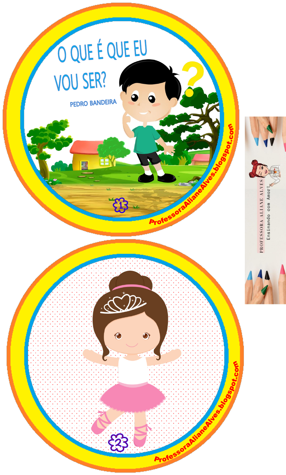 O QUE É QUE EU VOU SER? PEDRO BANDEIRA BETE QUER SER BAILARINA, ZÉ QUER SER AVIADOR. CARLOS VAI PLANTAR BATATA, JUCA QUER SER UM ATOR. CAMILA GOSTA DE MÚSICA. PATRÍCIA QUER DESENHAR. UMA VAI PEGANDO O LÁPIS, A OUTRA PÕE-SE A CANTAR. MAS EU NÃO SEI SE VOU SER POETA, DOUTORA OU ATRIZ. HOJE EU SÓ SEI UMA COISA: QUERO SER MUITO FELIZ! Este arquivo foi organizado pelo Blog Professora Aliane Alves e está sendo compartilhado gratuitamente para seu uso pessoal educador. Não é autorizada a venda ou postagem do material em PDF em sites, blogs, grupos nas redes sociais ou em grupos de WhatsApp sem autorização. Caso queira indicar este arquivo para outro educador compartilhe apenas link do blog: https://professoraalianealves.blogspot.com O compartilhamento deste material ou parte dele por sites, Blogs, Páginas ou Perfis Sociais sem a autorização previa do autor, incorre em violação de direito autoral conforme Código Penal Art 184, e haverá a denúncia em órgão de proteção global como DMCA o que poderá acarretar no bloqueio de sua conta de Google Adsense e perfis sociais. Siga-nos em nossas redes sociais: https://www.instagram.com/professora.aliane.alves/ https://br.pinterest.com/ProfessoraAlianeAlves/_saved/ https://www.facebook.com/groups/1265622613786798 https://www.youtube.com/c/AlianeVazAlves https://professoraalianealves.blogspot.com/ https://www.tiktok.com/@professoraalianealves https://chat.whatsapp.com/CZq56u1rLs09ivN8jrzbtO Copyright © Professora Aliane Alves https://professoraalianealves.blogspot.com/ https://www.instagram.com/professora.aliane.alves/ https://br.pinterest.com/ProfessoraAlianeAlves/_saved/ https://www.facebook.com/groups/1265622613786798 https://www.youtube.com/c/AlianeVazAlves https://professoraalianealves.blogspot.com/ https://www.tiktok.com/@professoraalianealves https://chat.whatsapp.com/CZq56u1rLs09ivN8jrzbtO