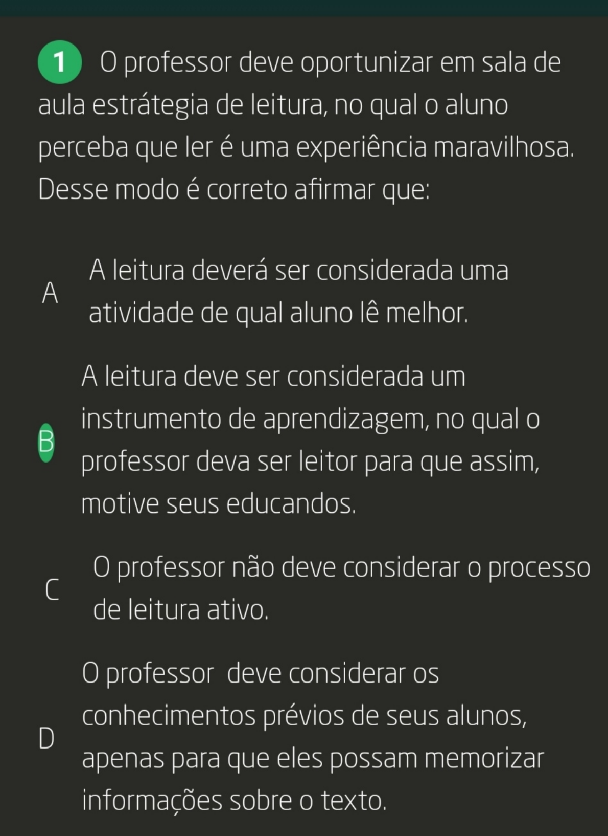 VOLTAR Questão 8 O processo de leitura envolve diversas etapas e estratégias. As estratégias de leitura compreendem todas as ações, ferramentas e m...