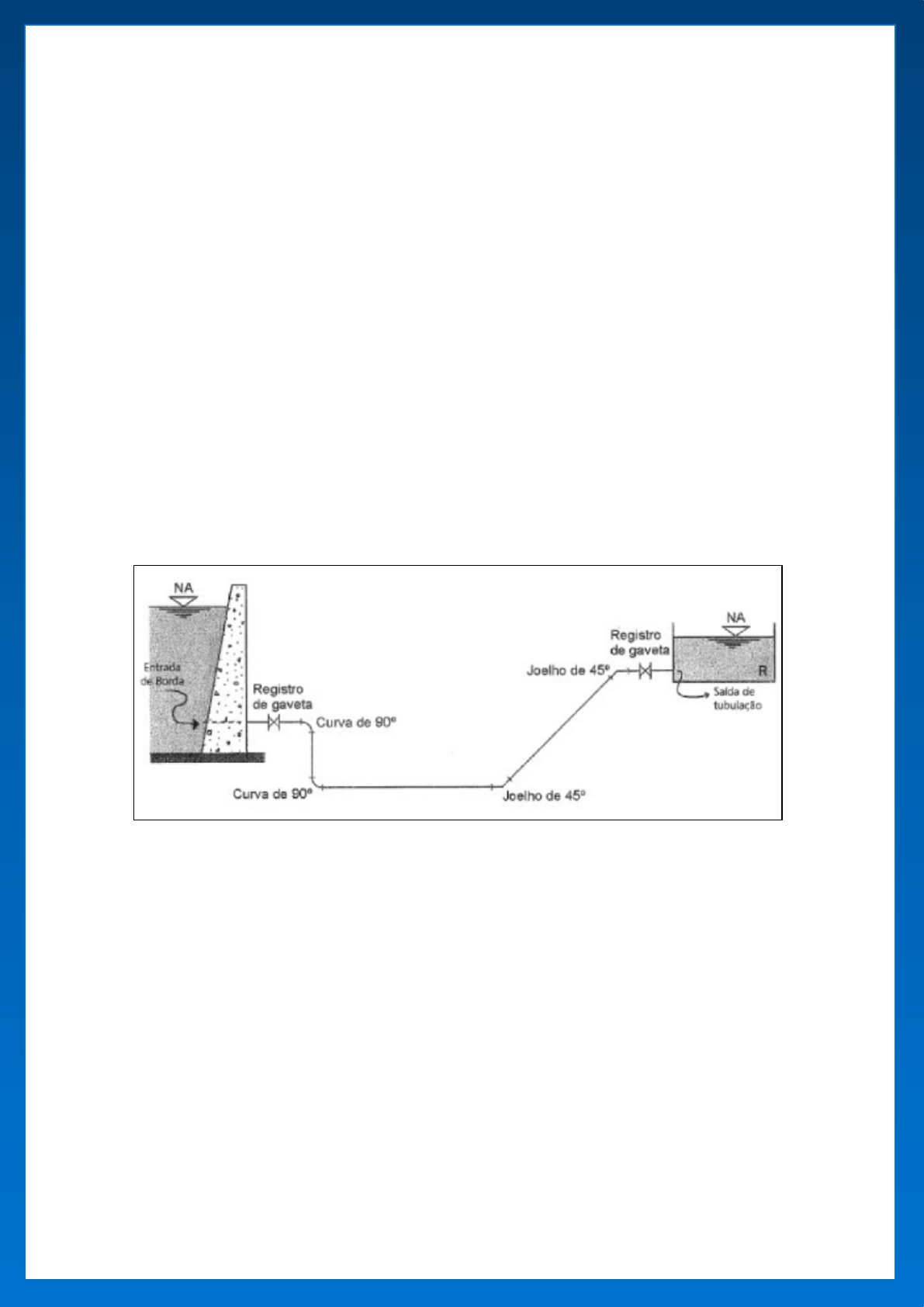 Valderisso Alfredo EXERCÍCIO RESLVIDO EXERCÍCIO: Uma tubulação em PVC, com 200m de comprimento e 100 mm de diâmetro, transporta uma vazão de 12 L/s. No conduto há algumas conexões e aparelhos que estão mostrados na figura. Calcule: a) A perda de carga contínua. b) B) A soma de perdas de carga locais e sua porcentagem em relação à perda de carga contínua. c) A perda de carga total.