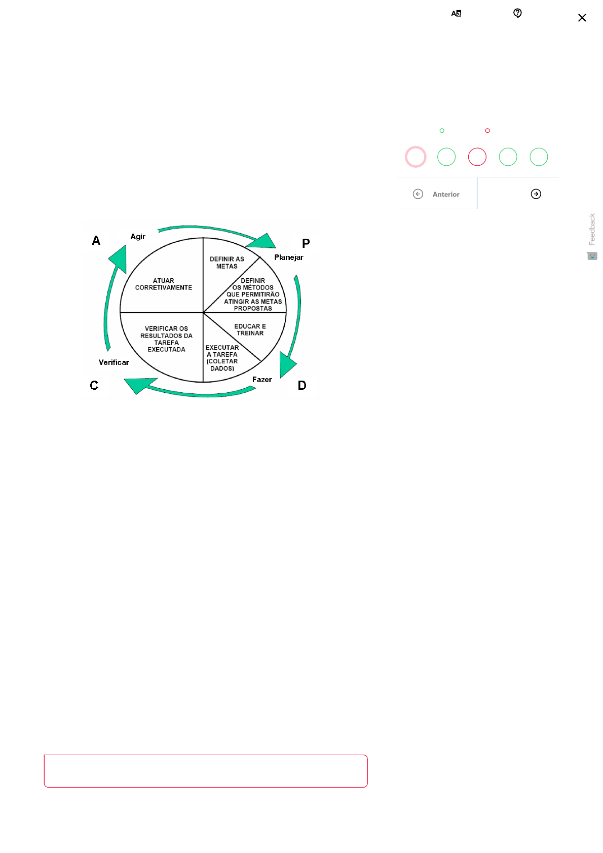 Questão 1 Errada Segundo Campos (2004), o Ciclo PDCA é um método de gerenciamento utilizado para a obtenção da qualidade total. Ele é originado a partir de 4 palavras: P (plan) - planejar, definir metas. D (do) - fazer, executar. C (check) - checar, verificar. A (action) - agir, atuar em melhorias”. A figura a seguir, mostra o seu funcionamento: Figura: Ciclo PDCA, Fonte: CAMPOS (2004). Com relação ao Ciclo PCDA, pode-se afirmar que: I. Na fase de planejamento, são observadas as questões ou os problemas importantes para a qualidade desejada e os planos de ação são elaborados para alcançar os objetivos. II. Na fase da execução, antes de atacar as ações definidas nos planos de Ação aprovados, deve-se certificar se dispõe da capacitação e dos demais recursos necessários para a eficiente execução dos planos elaborados e aprovados. III. Na fase da verificação deve-se sempre checar o resultado das ações, previstas nos planos, e para isso deve-se utilizar indicadores apropriados, através de itens de verificação adequados a cada caso. IV. Na fase da ação, será através de itens de controle previamente definidos que se pode examinar se a meta foi alcançada, respeitando-se questões legais, de segurança e de meio ambiente. V. A prática da qualidade através da utilização desse método gerencial denominado PDCA é de utilidade restrita, servindo tanto para o planejamento dos processos, quanto para as ações de melhoria. Sobre o Ciclo PDCA, está correto o que se afirma em: I, III, IV e V, apenas. Sua resposta 75% CORRETA: Você incluiu a afirmativa V em sua resposta e ela está errada, pois a prática da qualidade, através da utilização do Ciclo PDCA, é de utilidade ampla e não restrita. Disciplina Empreendedorismo Acertos 3 de 5 questões Nota 24 pontos Corretas Erradas 1 2 3 4 5 PróximaAnterior Correção dos exercícios da unidade Tamanho da fonte Dúvidas ao tutor Fe ed ba ck Tudo começou durante a época que chamamos de bolha da internet, entre 1996 e 2001. Apesar de usado nos EUA há várias décadas, só na bolha ponto.com o termo ‘startup' começou a ser usado no Brasil. Significava um grupo de pessoas trabalhando com uma ideia diferente que, aparentemente, poderia fazer dinheiro. Além disso, ‘startup' sempre foi sinônimo de iniciar uma empresa e colocá-la em funcionamento"; (SEBRAE, 2015, p. 1). Nesse contexto e considerando os dados apresentados, avalie as afirmações que se seguem: I. Uma startup é um grupo de pessoas à procura de um modelo de negócios repetível e escalável, trabalhando em condições de extrema incerteza. II. Um cenário de incerteza significa que não há como afirmar se aquela ideia e projeto de empresa irão realmente dar certo ou, ao menos, se provarem sustentáveis. III. O modelo de negócios é como a startup gera clientes, ou seja, como transforma o dinheiro desses clientes. IV. Um grupo de pesquisadores com uma patente inovadora pode também ser uma startup, desde que ela comprove um negócio repetível e escalável. A respeito do assunto, assinale a alternativa CORRETA: Questão 2 Correta Apenas as afirmativas I, II e IV estão corretas. Sua resposta Alternativa correta. Disciplina Empreendedorismo Acertos 3 de 5 questões Nota 24 pontos Corretas Erradas 1 2 3 4 5 Anterior Próxima Correção dos exercícios da unidade Tamanho da fonte Dúvidas ao tutor Fe ed ba ck Questão 3 Errada é fato que os empreendimentos bem geridos conseguem passar por fases de turbulência em melhores condições que suas rivais que não seguem os mesmos padrões de gestão. Porém, os desafios no mundo dos negócios são constantes e inúmeros. Em cada fase do negócio haverá novos problemas e obstáculos a serem superados. O gráfico apresenta as fases típicas de uma empresa e os desafios de cada fase (Adaptado de DORNELAS, 2013). Fonte: Disponível em: <http://ec.i.uol.com.br/economia/2013/03/04/grafico-do-colunista-jose-dornelas-de-empreendedorismo- 1362439964524_615x470.jpg>. Acesso em: 19 set. 2016. Analisando o gráfico de crescimento e tempo de um empreendimento, verificou-se que: 1. é um período cheio de incertezas relacionadas à sobrevivência da empresa, mas o otimismo do empreendedor impera como nunca nesta fase. 2. Até que a empresa atinja o ponto de equilíbrio, o grande desafio do empreendedor é provar que seu modelo de negócio funciona e que a empresa vai recuperar os recursos investidos e evitar tropeços e o fracasso. 3. Nesse período, o grande desafio do empreendedor é provar que seu modelo de negócio funciona e que a empresa vai recuperar os recursos investidos e evitar tropeços e o fracasso. 4. O desafio será otimizar recursos, melhorar processos, diminuir custos e tentar prorrogar a posição nos mercados atuais e criar a inovação que fará a empresa ter mais longevidade. Assinale a opção que apresenta a ordem correta dos procedimentos realizados. 1 - 3 - 2 - 4. Sua resposta A sequência correta é: 1 - 3 - 4 - 2. Segundo Dornelas (2013, p. 1): Maravilha é um período cheio de incertezas relacionadas à sobrevivência da empresa, mas o otimismo do empreendedor impera como nunca nesta fase. Na instabilidade (até que a empresa atinja o ponto de equilíbrio) o grande desafio do empreendedor é provar que seu modelo de negócio funciona e que a empresa vai recuperar os recursos investidos e evitar tropeços e o fracasso. Na fase de crescimento acelerado, ou da explosão, o desafio será consolidar a marca no mercado e superar metas, elevar o faturamento e entrar em novos mercados. Nesta fase, o crescimento é robusto e o empreendedor já construiu uma equipe de gestão sólida. é na Explosão que se criam os mitos e empresas que as pessoas passam a admirar. Na maturação, há geração significativa de caixa, mas o desafio será otimizar recursos, melhorar processos, diminuir custos e tentar prorrogar a posição nos mercados atuais e criar a inovação que fará a empresa ter mais 