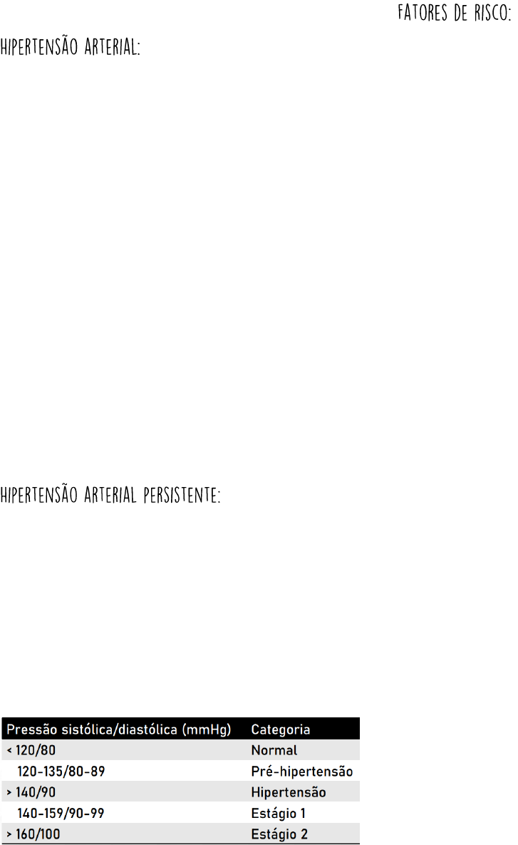 Farmacologia cardiovascular: Principal fator e risco: A hipertensão resulta do aumento do tônus do músculo liso arteriolar vascular periférico, que leva ao aumento da resistência arteriolar e à redução da capacitância do sistema venoso. - Trata-se de uma doença vitalícia, que provoca poucos sintomas até alcançar um estágio avançado. Para o tratamento efetivo, é necessário o consumo diário de medicamentos, por vezes de alto custo e com efeitos colaterais. - Assim, o médico deve estabelecer com certeza se a hipertensão é persistente e exige tratamento, e também precisa excluir as causas secundárias de hipertensão que poderiam ser tratadas por meio de procedimentos cirúrgicos definitivos. A persistência da hipertensão, particularmente em indivíduos com leve elevação da pressão arterial, deve ser estabelecida pelo achado de pressão arterial elevada em pelo menos três consultas diferentes. > Lesão nos vasos sanguíneos, lesão nos rins, lesão no coração, lesão no cérebro, insuficiência renal, insuficiência cardíaca, acidente vascular encefálico, demência. Diagnóstico: Medidas repetidas e reproduzíveis de elevação da pressão arterial. O diagnostico serve, basicamente, para prever as consequências do distúrbio para o paciente; raramente inclui um relato sobre a causa da hipertensão. tabagismo, síndrome metabólica, obesidade, dislipidemia, diabetes, histórico familiar de doença cardiovascular, estresse, sedentarismo, dieta rica em sódio. - Uma vez estabelecida a presença de hipertensão, deve-se considerar a questão da necessidade ou não de tratamento, bem como da escolha dos fármacos a serem usados. O nível de pressão arterial, a idade do paciente, a gravidade da lesão orgânica (quando presente), em consequência da pressão arterial elevada e a presença de fatores de risco cardiovasculares devem ser todos considerados. A avaliação da função renal e a presença de proteinúria são úteis na seleção dos agentes anti-hipertensivos. 𝑃𝐴 = 𝐷𝐶 𝑋 𝑅𝑉 PA: pressão arterial. DC: débito cardíaco. RVP: resistência vascular periférica. Tanto em indivíduos normais como nos hipertensos, a pressão arterial é mantida pela regulação contínua do débito cardíaco e da resistência vascular periférica. - A pressão arterial é regulada dentro de uma faixa estreita para prover perfusão adequada aos tecidos sem causar lesões ao sistema vascular. Ela é diretamente proporcional ao débito cardíaco e à resistência vascular periférica. O débito cardíaco e a resistência periférica são controlados principalmente por dois mecanismos sobrepostos de controle: os barorreflexos e o sistema renina-angiotensina- aldosterona. - A maioria dos anti-hipertensivos diminui a pressão arterial, reduzindo o débito cardíaco e/ou diminuindo a resistência periférica. - No controle do volume sanguíneo, o rim é o principal responsável pelo controle em longo prazo da pressão arterial. A redução da pressão de perfusão renal determina a redistribuição intrarrenal do fluxo sanguíneo e provoca aumento da reabsorção de sal e de água. Além disso, tanto a diminuição da pressão nas arteríolas renais como a redução da atividade neural simpática (por meio dos receptores β-adrenérgicos) estimulam a produção de renina, que aumenta a produção de angiotensina II. Síndrome metabólica: um conjunto de condições que aumentam o risco de doença cardíaca, AVC e diabetes. Hipertensão arterial, nível elevado de açúcar no sangue, excesso de gordura corporal em torno da cintura e níveis de colesterol anormais (dislipidemia). Constrição direta dos vasos de resistência. Estimulação da síntese de aldosterona no córtex suprarrenal. Aumento da absorção renal de sódio e o volume sanguíneo intravascular. > Aldosterona: Aumento da concentração de sódio no sangue chamado de hipernatremia; diminuição de potássio (hipocalemia); aumento da pressão arterial e da volemia (volume de sangue circulante); aumento de reabsorção de água. Fármacos anti-hipertensivos: Diuréticos, Simpatolíticos: α-Bloqueadores e β-Bloqueadores, Inibidores da Enzima de Conversão da Angiotensina II, Bloqueadores Canais de Cálcio, Antagonistas dos receptores da Angiotensina II. Os diuréticos reduzem a pressão arterial sobretudo ao produzirem depleção das reservas corporais de sódio. Acredita-se que o sódio possa contribuir para a resistência vascular por meio de aumento da rigidez dos vasos. Esses efeitos são revertidos pelos diuréticos ou pela restrição dietética de sódio. O mecanismo de ação inicial dos diuréticos é baseado na redução do volume, o que leva à diminuição da pressão arterial. Molécula de sal: Intestino: o cloreto de sódio (NaCl) é absorvido pelo intestino. Sua molécula então é quebrada formando um íon de cloro (Cl-) e outro de sódio (Na+). Após esse rápido processo, o sal parte direto para a corrente sanguínea. Sangue: como o sal tende a “sugar” a água do organismo (osmose), nosso corpo, na tentativa de manter o equilíbrio e normalizar a falta de água, eleva a pressão arterial para aumentar o fluxo de sangue circulando. Coração: o resultado disso é que o coração precisa trabalhar muito mais para bombear sangue e irrigar as células. Se isso se tornar frequente, o problema da hipertensão pode se tornar crônico. Pressão arterial: com o coração trabalhando além do normal, os vasos se contraem para conter o excesso de sangue. Utilizados isoladamente proporcionam um tratamento adequado para a hipertensão essencial leve ou moderada. Na hipertensão mais grave, é associado a outros agentes anti-hipertensivos. Reduzem a pressão arterial por meio da depleção do sódio corporal, diminuição do volume sanguíneo e, outros mecanismos. - Aumentar a excreção de sódio e água. Isso causa uma redução do volume extracelular, resultando em diminuição do débito