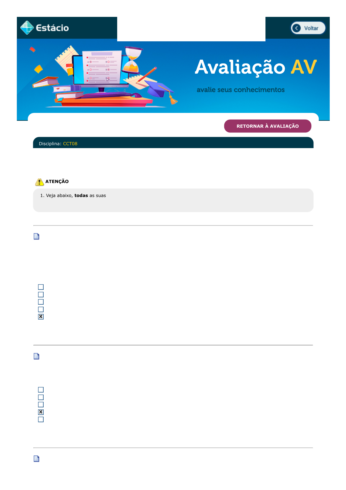 18/11/2021 19:33 EPS https://simulado.estacio.br/alunos/ 1/4 NEILA TEIXEIRA LOPES Avaliação AV 202001023267 POLO JOÃO UCHÔA - RIO DE JANEIRO - RJ avalie seus conhecimentos RETORNAR À AVALIAÇÃO Disciplina: CCT0854 - BIG DATA Período: 2021.3 EAD (GT) / AV Aluno: NEILA TEIXEIRA LOPES Matrícula: 202001023267 Data: 18/11/2021 19:33:08 Turma: 9001 ATENÇÃO 1. Veja abaixo, todas as suas respostas gravadas no nosso banco de dados. 2. Caso você queira voltar à prova clique no botão "Retornar à Avaliação". 1a Questão (Ref.: 202006201025) (FCC - 2020 AL - AP - Analista Legislativo - Desenvolver de Banco de Dados) Atualmente, diversos dados são coletados pelos sistemas digitais de empresas na internet para constituir Big Data com conteúdo sobre os resultados alcançados por seus produtos e serviços, prestígio da imagem da organização e seus representantes. Porém, parte desses dados pode ser falsa ou manipulada por internautas. O tratamento dos dados, a fim de qualificá-los antes de disponibilizá-los para a tomada de decisão na empresa, segundo o conceito das cinco dimensões "V" de avaliação de um Big Data, se refere: Ao volume. Variedade. Ao valor. À velocidade. À veracidade. 2a Questão (Ref.: 202006209851) Os projetos de Big Data envolvem muitos riscos. Os riscos devem ser gerenciados através de atividades com objetivos identificá-los, analisá-los e respondê-los, eliminando ou minimizando o seu impacto no projeto. Marque a opção que representa estratégias para tratar os riscos. Transformar, amenizar, transferir e aceitar Predizer, mitigar, transferir e aceitar Analisar, mitigar, corrigir e aceitar Prevenir, mitigar, transferir e aceitar Eliminar, mitigar e aceitar 3a Questão (Ref.: 202006219033) (FGV ¿ 2017 ¿ IBGE - Analista de Censitário - Área Análise de Sistemas - Desenvolvimento de Aplicações - Web 18/11/2021 19:33 EPS https://simulado.estacio.br/alunos/ 2/4 Designer) O tipo de Banco de Dados NoSQL, não relacional, que armazena tais informações, utilizando estruturas de vértices e arestas, com propriedades associadas, é o: Chave-valor Documento Tabular Grafo Colunar 4a Questão (Ref.: 202006221931) Os projetos de Big Data têm a característica de aumentar exponencialmente da quantidade de dados. Prever, adquirir e manter a infraestrutura necessária o funcionando do Big Data com um bom desempenho ao longo do tempo torna-se um fator determinante para o sucesso do projeto. A computação em nuvem tem se mostrado uma boa alternativa por apresentar inúmeros benefícios, exceto: Uso da internet para acesso aos seus recursos. Estimar os recursos necessários desde o início do projeto de Big Data de forma precisa e segura. Flexibilidade para alocação de recursos sob demanda. Uma vez identificada a necessidade de maior ou menor capacidade de processamento, esse requisito pode ser atendido. Contratação de serviço de um provedor para atender as suas necessidades. 5a Questão (Ref.: 202006213328) Assinale a opção que NÃO representa uma estratégia para lidar com dados incompletos. Empregar algoritmos de AM que lidam internamente com valores ausentes. Substituir os valores ausentes por alguma constante. Atribuir um peso maior para balancear esses dados. Realizar cálculos para completar os valores ausentes. Eliminar os objetos com valores ausentes. 6a Questão (Ref.: 202006221935) O volume e variedade dos dados de Big Data trouxe uma maior complexidade para o processo de compreensão dos dados analisados, tornando a visualização uma abordagem cada vez mais essencial em um projeto de Big Data. Assinale a opção que melhor representa a importância da visualização dos dados. Facilitar a apresentação dos resultados obtidos nas análises. Ganhar credibilidade para realização de novas análises. Manter o projeto de Big Data em constante mudança. Identificar pontos de melhoria no processo. Prover uma interface bonita para apresentar os dados. 7a Questão (Ref.: 202006221940) (ANAC 2016 ¿ Analista Administrativo ¿ Análise de Sistemas) Para o processamento de grandes massas de dados, no contexto de Big Data, é muito utilizada uma plataforma de software em Java, de computação distribuída, voltada para clusters, inspirada no MapReduce e no GoogleFS. Esta plataforma é o(a) 18/11/2021 19:33 EPS https://simulado.estacio.br/alunos/ 3/4 EMRx Yam Common MapFix GoogleCrush Hadoop 8a Questão (Ref.: 202006219046) O sistema Apache Hive acessa diretamente os arquivos armazenados no HDFS e os consulta através de uma interface semelhante ao SQL. Isso tem possibilitado aos desenvolvedores fluentes em SQL tirar proveito dos benefícios do Hadoop sem exigir que eles aprendam Java ou conheçam a API nativa do MapReduce. O nome dessa interface é: Simple Hive Language Hive Query Language Hive Analise Language Complex Query Language Hive Manipulation Language 9a Questão (Ref.: 202006216388) Qual dos comandos abaixo permite a inclusão de um arquivo no sistema HDFS? hadoop fs -rmdir; hadoop fs -cp. hadoop fs - copyToLocal; hadoop fs -copyFromLocal; hadoop fs -rm; 10a Questão (Ref.: 202006219056) A biblioteca MLlib oferece: Utilitários de persistência, recursos para preparação de dados e manipulação de dados estruturados; Recursos para preparação de dados, vários tipos de algoritmos de aprendizado de máquina e utilitários de persistência; Algoritmos de aprendizado de máquina e para processamento em tempo real; Exclusivamente recursos para extração, transformação e carga de dados Algoritmos de aprendizado de máquina e recursos de processamento de grafo; Autenticação para a Prova On-line Caso queira FINALIZAR a avaliação, digite o código de 4 carateres impresso abaixo. ATENÇÃO: Caso finalize esta avaliação você não poderá mais modificar as suas respostas. 6KRE Cód.: FINALIZAR Obs.: Os caracteres da imagem ajudam a Instituição a evitar fraudes, que dificultam a gravação das respostas. 18/11/2021 19:33 EPS https://simulad
