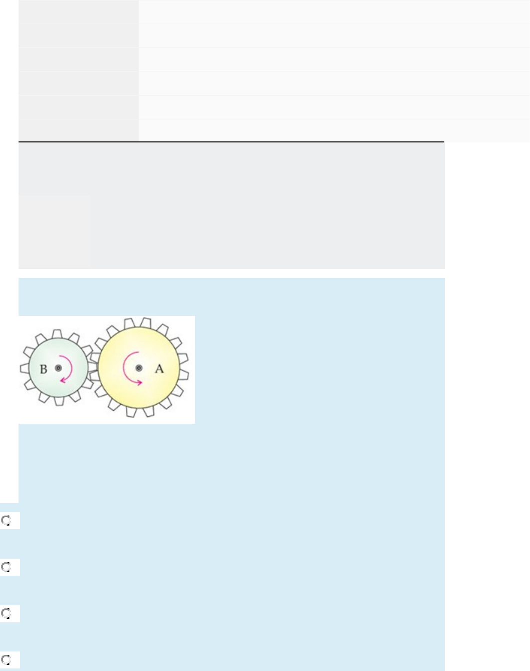 U3S1 - Atividade de Aprendizagem Iniciado em quinta, 19 mai 2022, 13:58 Estado Finalizada Concluída em quinta, 19 mai 2022, 14:01 Tempo empregado 3 minutos 9 segundos Notas 3,00/3,00 Avaliar 10,00 de um máximo de 10,00(100%) Parte superior do formulário Questão 1 Correto Atingiu 1,00 de 1,00 Marcar questão Texto da questão Determine a relação de engrenamento das engrenagens da figura seguinte. Sabe-se que a engrenagem motora A tem diâmetro de 35 cm e rotação de 200 RPM, enquanto a engrenagem movida B tem rotação de 100 RPM. Assinale a alternativa que corresponde ao verdadeiro valor da relação de engrenamento entre as engrenagens. Escolha uma: a. 5. b. 1,5. c. 0,5. d. 1. e. 2. Questão 2 Correto Atingiu 1,00 de 1,00 Marcar questão Texto da questão Precisa-se calcular o diâmetro de um polia movida. Sabe-se que a polia motora tem diâmetro de 100 cm e rotação de 2000 RPM, a rotação que se deseja na polia movida é de 1000 RPM. Qual o diâmetro da polia movida. Assinale a alternativa que corresponde ao verdadeiro valor do diâmetro da polia movida. Escolha uma: a. 300. b. 400. c. 500. d. 200. e. 100. Questão 3 Correto Atingiu 1,00 de 1,00 Marcar questão Texto da questão Um engenheiro necessita descobrir a relação de redução de um redutor. Sabe-se que o motor elétrico disponibiliza uma rotação de 2500 RPM no eixo de entrada do redutor e que a rotação no eixo de saída do redutor é de 500 RPM. Assinale a alternativa que corresponde ao verdadeiro valor da relação de redução do redutor. Escolha uma: a. 3. b. 1. c. 5. d. 4. e. 2. Parte inferior do formulário