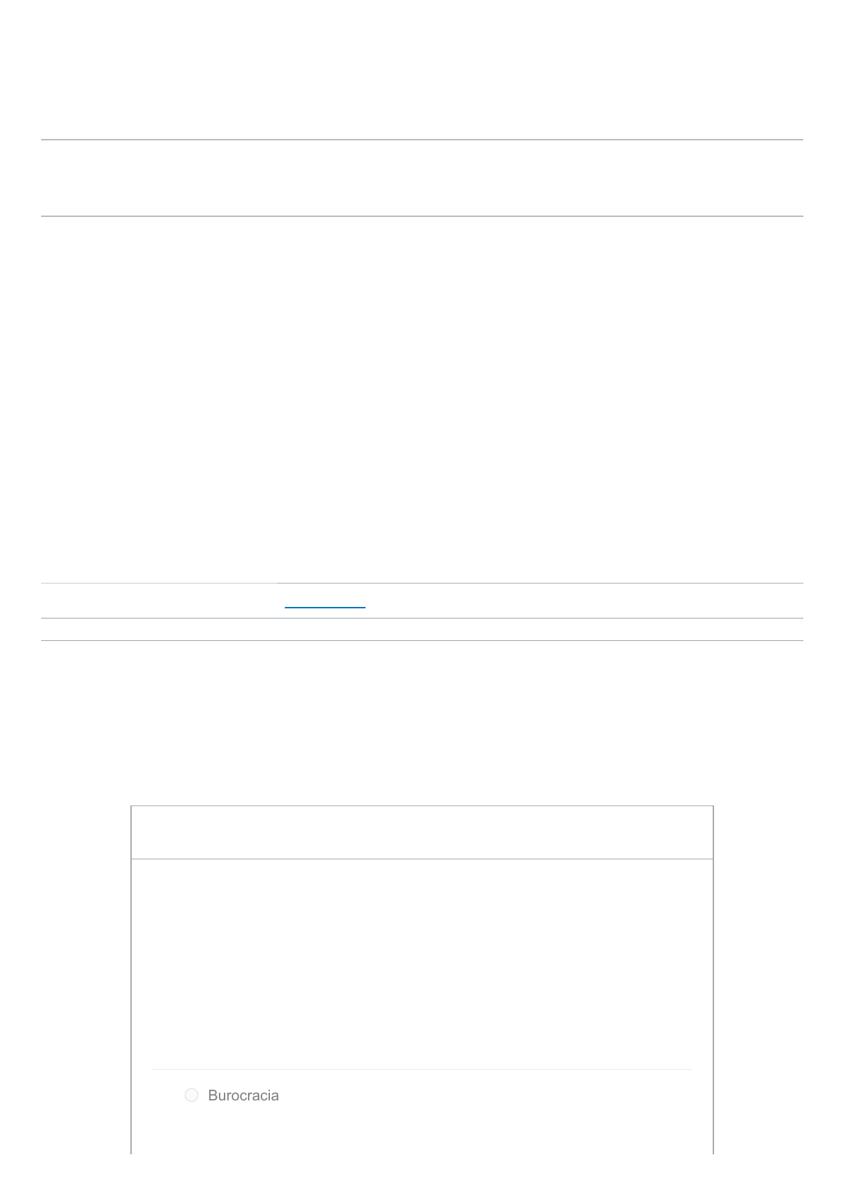 28/03/2022 20:04 Atividade Objetiva - Unidade 3: Melhorar a produtividade e aumentar a lucratividade: Desenvolvimento de Competências Ge… https://pucminas.instructure.com/courses/88182/quizzes/265938 1/4 Atividade Objetiva - Unidade 3: Melhorar a produtividade e aumentar a lucratividade Entrega 28 mar em 23:59 Pontos 10 Perguntas 5 Disponível 21 mar em 0:00 - 28 mar em 23:59 8 dias Limite de tempo Nenhum Instruções Histórico de tentativas Tentativa Tempo Pontuação MAIS RECENTE Tentativa 1 47 minutos 10 de 10 As respostas corretas estarão disponíveis em 29 mar em 0:00. Pontuação deste teste: 10 de 10 Enviado 28 mar em 20:04 Esta tentativa levou 47 minutos. Prezados(as) Alunos(as), Antes de realizar esta atividade vocês deverão ter assistido todas as vídeos aulas, consultado o livro-base e estudado as leituras complementares” do Módulo 3: Melhorar a produtividade e aumentar a lucratividade Marcar nas questões corretas: (uma alternativa por questão) 2 / 2 ptsPergunta 1 A estrutura organizacional tem como referência o Modelo de Meta Racional e o Modelo de Processo Interno. O trabalho é dividido em tarefas e atribuído aos funcionários gerando um impacto direto em outras variáveis estruturais, tais como a hierarquia e a padronização. Com estas referências o que os Gerentes devem enfatizar nas organizações: Burocracia https://pucminas.instructure.com/courses/88182/quizzes/265938/history?version=1 28/03/2022 20:04 Atividade Objetiva - Unidade 3: Melhorar a produtividade e aumentar a lucratividade: Desenvolvimento de Competências Ge… https://pucminas.instructure.com/courses/88182/quizzes/265938 2/4 Hierarquia Estrutura matricial Divisão do trabalho e especialização Organização em rede 2 / 2 ptsPergunta 2 Pessoas que são motivadas, capacitadas e comprometidas são mais produtivas e esses são os componentes essenciais das organizações vencedoras. Qual a competência que ajuda a medir a efetividade individual, grupal e organizacional: Relacionamento interpessoal Habilidade de comunicação Delegação Produtividade Administração do tempo 2 / 2 ptsPergunta 3 Apesar da ênfase em lógica e racionalidade, os paradoxos também são evidentes no imperativo de ação Competir. Ao mesmo tempo que as pessoas desejam que o líder forneça uma visão clara para a organização, também são relutantes em aceitar a visão a menos que considera como sua própria. Qual a melhor alternativa para o Gerente: Aceitar conviver com o desalinhamento da visão da organização 28/03/2022 20:04 Atividade Objetiva - Unidade 3: Melhorar a produtividade e aumentar a lucratividade: Desenvolvimento de Competências Ge… https://pucminas.instructure.com/courses/88182/quizzes/265938 3/4 Impor a ideologia da organização Tomar a liderança com todos fatos relevantes e escolher a melhor decisão Demitir as pessoas que não estão alinhadas com a visão Não dar oportunidades de carreira para estas pessoas 2 / 2 ptsPergunta 4 A produtividade nas empresas aumenta quando os processos são facilitados – agilidade – e em um ambiente onde cada colaborador possa focar no que faz, com as ferramentas e estruturas apropriadas e menos burocracia possível. Quais das ações abaixo não corresponde ao conceito de produtividade: Use a tecnologia para aprimorar seus processos Capacite seus colaboradores Revise os processos Burocratize as tarefas Valorize a gestão do tempo Use ferramentas de comunicação 2 / 2 ptsPergunta 5 Ter um foco claro ajuda a identificar o que a organização deveria estar fazendo, bem como o que a organização não deveria fazer. O Gerente deveria atuar com a metáfora do “porteiro”, porque ele abre as portas 28/03/2022 20:04 Atividade Objetiva - Unidade 3: Melhorar a produtividade e aumentar a lucratividade: Desenvolvimento de Competências Ge… https://pucminas.instructure.com/courses/88182/quizzes/265938 4/4 para o futuro, ajudando as pessoas a ver o que está à frente e o que precisa ser feito. Também deveria aplicar a metáfora dos “quebra cabeças”, pois é muito mais fácil montar um “quebra-cabeças” se você puder ver a figura na tampa da caixa. Para os colaboradores envolvidos na formação de uma visão o que elas esperam do Gerente: Reforçar a descrição detalhada das funções e responsabilidades Apresentar todo o panorama, propósito e a visão geral da organização Ficar focado somente em alcançar as metas Esquecer a ideologia da organização e seguir em frente com sua equipe Considerar que não é importante que as pessoas reconheçam a visão Pontuação do teste: 10 de 10