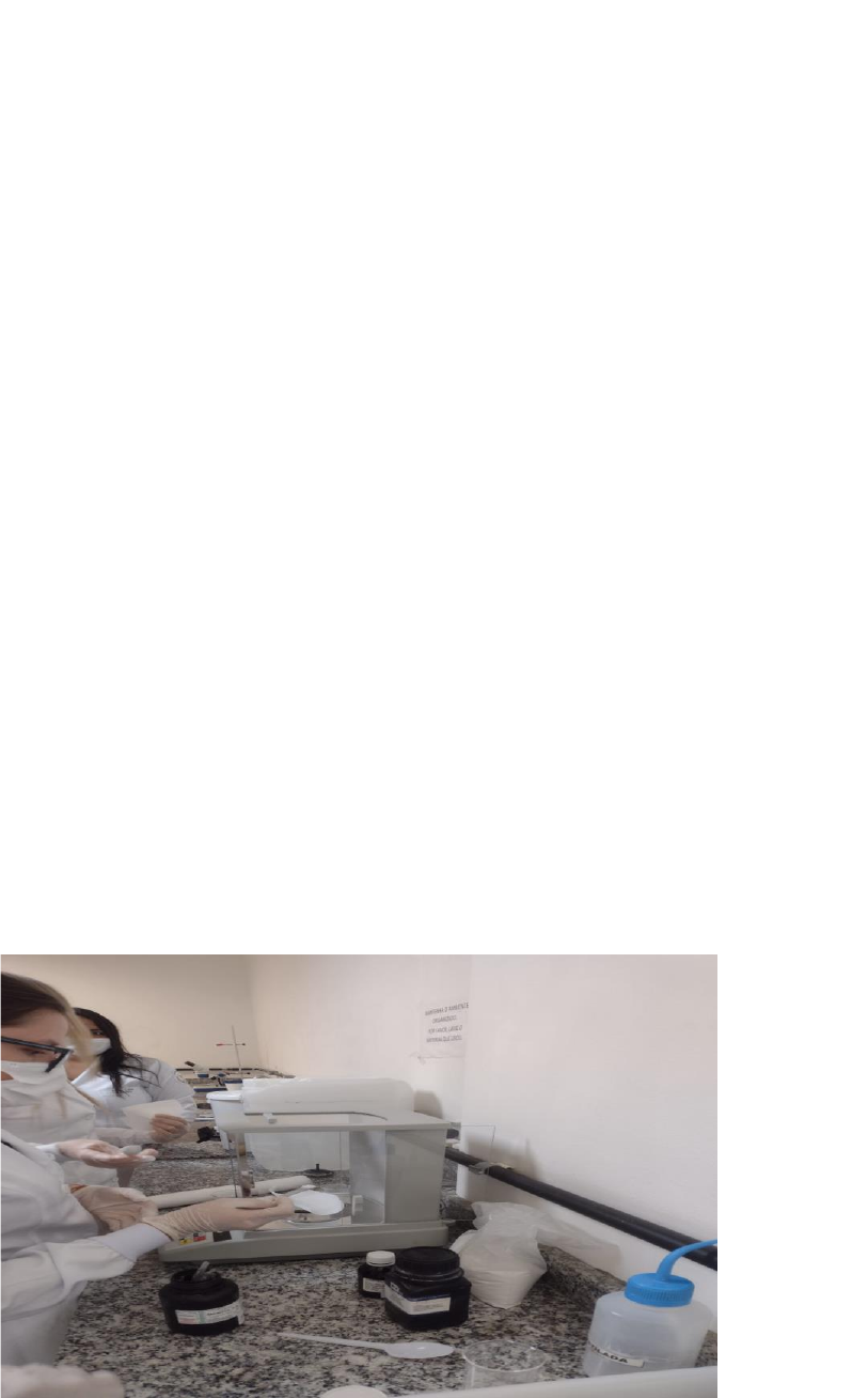 1.1-INTRODUÇÃO O talco antisséptico é ideal para assaduras, brotoejas, pruridos e frieiras. Combate também os odores da transpiração na região dos pés e das axilas. Sua eficácia se dá por causa dos ingredientes da fórmula, que ajudam a prevenir e combater micro-organismos como fungos e bactérias. METODOLOGIA 1.2-VIDRARIA UTILIZADA • Espátula para pesagem • Espátula flexível (pão duro) • Gral e pistilo • Etiquetas • Recipiente plástico 1.3- EQUIPAMENTOS •Balança analítica 1.4-PROCEDIMENTO 1°passo: Foi pesado separadamente todos os ingredientes, nas seguintes quantidades: Irgasan =1% Mentol= 0,1% Essência de hortelã em pó= qs Talco = qsp 50g 2°passo: Em gral e pistilo, reproduzir todos os componentes sólidos da formulação a pó fino e misturá-los até que forme um semi sólido esbranquiçado em textura pó. Fig2. Processo de trituração dos componentes sólidos. 3°passo: Adicionar em um recipiente adequado e rotular. 2-RESULTADOS Obtivemos como resultado, um semi sólido esbranquiçado, com textura em pó. 3-CONCLUSÃO Por meio do experimento apresentado, concluímos que o talco antisséptico é rápido e prático de se fabricar, sendo eficaz no combate a assaduras e brotoejas. 4-REFERENCIAS https://www.farmaponte.com.br/antisseptico-granado-100g/p https://www.farmaponte.com.br/antisseptico-granado-100g/p
