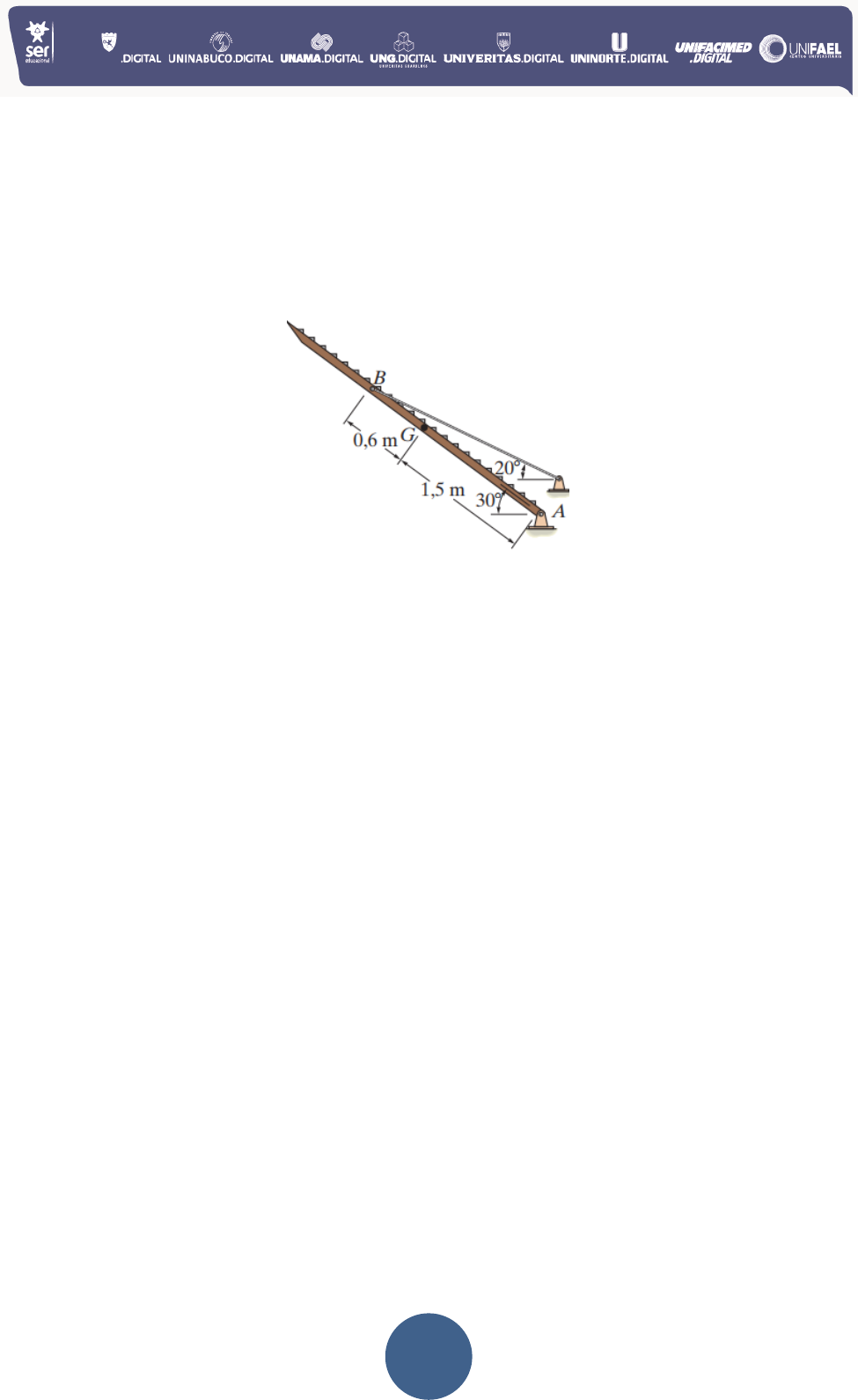 1 Lista de Exercícios de Mecânica de Sólidos – Unidade 3 1) A rampa uniforme do caminhão mostrada na figura abaixo possui peso de 3500 N e está conectada por pinos à carroceria do caminhão em cada lado e mantida na posição mostrada pelos dois cabos laterais. Qual o valor da tração nos cabos? a) 2678 N. b) 3450 N. c) 3856 N. d) 4547 N. e) 7123 N. 2) Na resolução de problemas de equilíbrio tanto bidimensionais (2D) quanto tridimensionais (3D), o primeiro passo é desenhar o diagrama de corpo livre. Para que esse passo inicial seja executado com sucesso é importante compreender, de acordo com o vínculo utilizado, as forças e os momentos de binário atuantes, ou seja, um número de incógnitas envolvidas. Considerando essas informações e todo o conteúdo estudado sobre os vínculos, analise os elencados a seguir e associe-os corretamente com os respectivos número de incógnitas envolvidas: I – Rolete; II – Mancal simples; III – Engastamento; IV – Articulação. ( ) Cinco incógnitas. As reações são três componentes de força e duas componentes de momento binário. ( ) Quatro incógnitas. As reações são duas componentes de força e duas componentes de momento binário. ( ) Uma incógnita. A reação é uma força que age perpendicularmente à superfície no ponto de contato. ( ) Seis incógnitas. As reações são três componentes de força e três componentes de momento binário. 2 a) III – I – IV – II. b) IV – II – I – III. c) I – II – IV – III. d) II – I – IV – III. e) I – II – III – IV. 3) Na figura abaixo observamos uma montagem com uma junta esférica em A, um mancal simples em B e um rolete em C. Determine as componentes que cada um dos vínculos exercem sobre essa montagem. 4) Uma haste é utilizada para sustentar um vaso de 40 kg (vide figura abaixo). Determine a tração nos cabos AB e BC.
