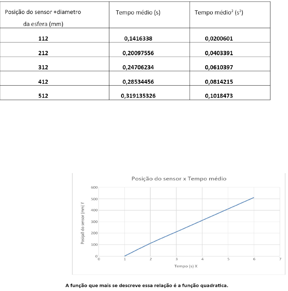 AVALIAÇÃO DOS RESULTADOS ENSAIANDO A PRIMEIRA ESFERA 1. Construa o gráfico “Posição do sensor x Tempo médio” e observe a relação entre as variáveis posição e tempo. Qual função melhor descreveria esta relação? Exemplos: função linear, quadrática, cúbica etc. 1. Construa o gráfico “Posição do sensor x Tempo médio ao quadrado” e observe a relação entre as variáveis posição e tempo. Qual função melhor descreveria esta relação? Exemplos: função linear, quadrática, cúbica etc. A função que melhor descreveria esta relação é a função linear. 1. Compare os gráficos construídos anteriormente. Você observou alguma diferença entre eles? Se sim, qual o motivo desta diferença? 1. Utilize a equação (5) do resumo teórico para calcular o valor da aceleração da gravidade em cada ponto e complete a tabela que você fez anteriormente. Em seguida compare os valores encontrados. 1. Em seguida compare os valores encontrados. Houve diferença nos valores encontrados? Se sim, o que você acha que proporcionou essa diferença? 1. Utilize a equação (4) do resumo teórico para calcular o valor da velocidade instantânea em cada ponto e complete a tabela. 1. res encontrados para a aceleraçaõ são proximos entre si. E proximos 1. do valor real da gravidade que é g= 9,8 m/s 2 . O que deve ter dado a 1. diferença de valores é que o posicionamento do sensor é feito de forma 1. manoal o que leva a menor precisão. Alem disso nada foi mensionado em 1. haver vácuo no ambiente, o que tambem al 7. Construa o gráfico da “Velocidade x Tempo”. Qual o comportamento da velocidade? ENSAIANDO A SEGUNDA ESFERA 1. Compare os valores obtidos para a aceleração da gravidade. Houve diferença nos valores encontrados? Explique-a. 1. Compare os gráficos de “Velocidade x Tempo” obtidos com as duas esferas. A velocidade varia igualmente para as duas esferas? 1. Sim, há diferença entre os dois grá'cos construídos. No primeiro , observa -se que confo rme a esfera 2. vai descendo pelo plano inclinado ela vai ganhando velocidade, e consequentemente o t empo de 3. passagem entre o s intervalos vai diminuindo, o que constrói um grá'co com leve curvatura. Por 4. outro lado, o segundo grá'co dá a entender que conforme a esfera desce pelo plano o tempo que 5. ela leva entre os intervalos das marcações é o mesmo, mantendo a velocidade teoricamente 6. constante, desenhando um grá'co em linha reta. Isso foi possível porque ao u!lizar a variável 7. tempo ao quadrado ocorre a linearização do grá'co 8. Sim, há diferença entre os dois grá'cos construídos. No primeiro , observa -se que confo rme a esfera 9. vai descendo pelo plano inclinado ela vai ganhando velocidade, e consequentemente o t empo de 10. passagem entre o s intervalos vai diminuindo, o que constrói um grá'co com leve curvatura. Por 11. outro lado, o segundo grá'co dá a entender que conforme a esfera desce pelo plano o tempo que 12. ela leva entre os intervalos das marcações é o mesmo, mantendo a velocidade teoricamente 13. constante, desenhando um grá'co em linha reta. Isso foi possível porque ao u!lizar a variável 14. tempo ao quadrado ocorre a linearização do grá'co Sim, há diferença entre os dois grá'cos construídos. No primeiro , observa -se que confo rme a esfera vai descendo pelo plano inclinado ela vai ganhando velocidade, e consequentemente o t empo de passagem entre o s intervalos vai diminuindo, o que constrói um grá'co com leve curvatura. Por outro lado, o segundo grá'co dá a entender que conforme a esfera desce pelo plano o tempo que ela leva entre os intervalos das marcações é o mesmo, mantendo a velocidade teoricamente constante, desenhando um grá'co em linha reta. Isso foi possível porque ao u!lizar a variável tempo ao quadrado ocorre a linearização do grá'co Sim, há diferença entre os dois grá'cos construídos. No primeiro , observa -se que confo rme a esfera vai descendo pelo plano inclinado ela vai ganhando velocidade, e consequentemente o t empo de passagem entre o s intervalos vai diminuindo, o que constrói um grá'co com leve curvatura. Por outro lado, o segundo grá'co dá a entender que conforme a esfera desce pelo plano o tempo que ela leva entre os intervalos das marcações é o mesmo, mantendo a velocidade teoricamente constante, desenhando um grá'co em linha reta. Isso foi possível porque ao u!lizar a variável tempo ao quadrado ocorre a linearização do grá'co