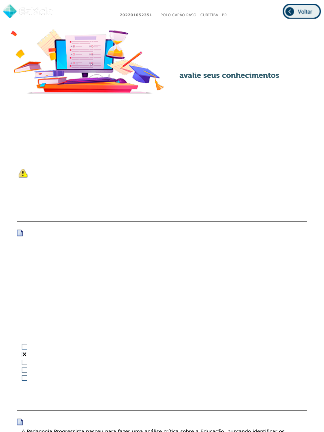 2. Caso você queira voltar à prova clique no botão "Retornar à Avaliação".